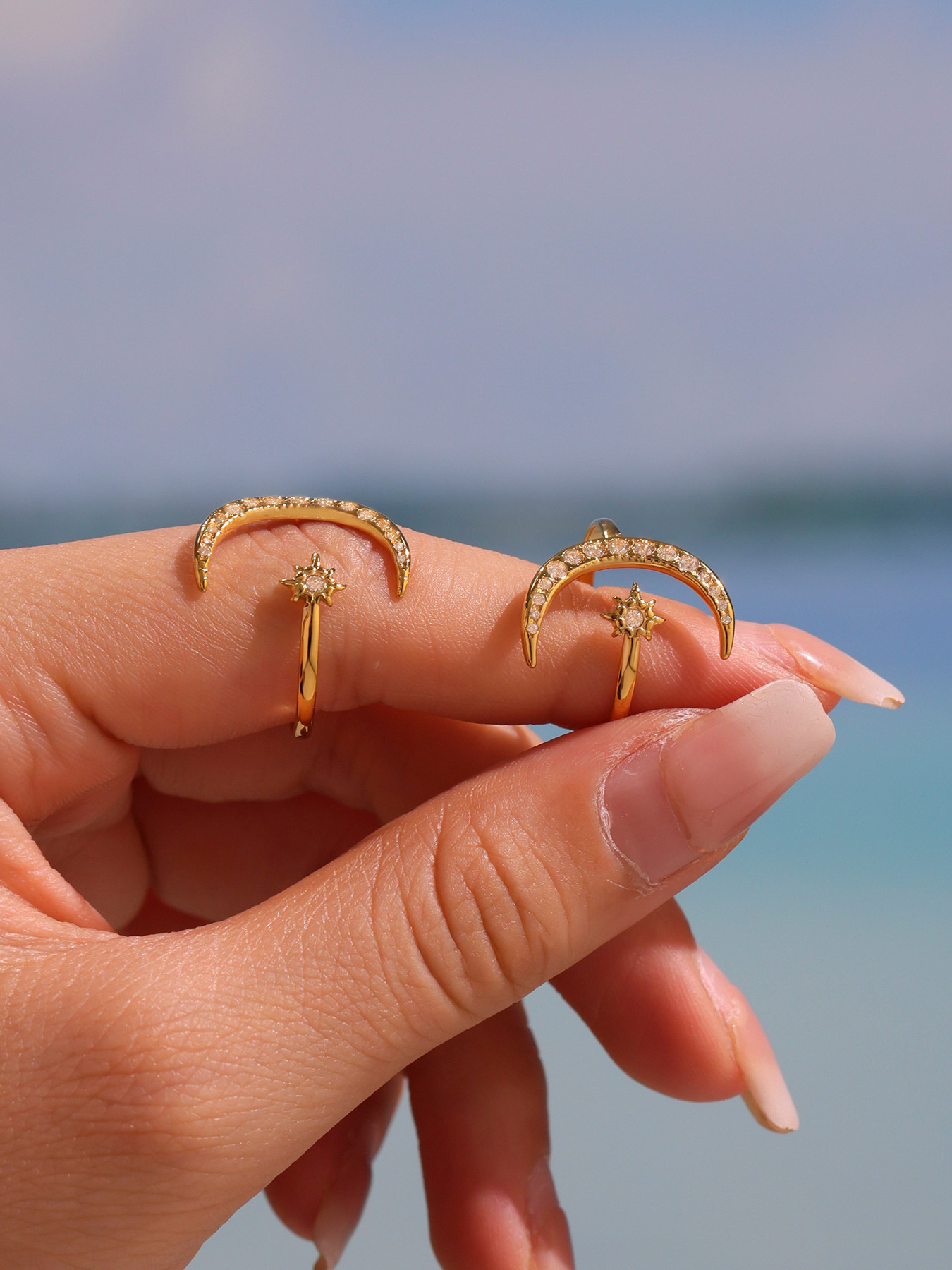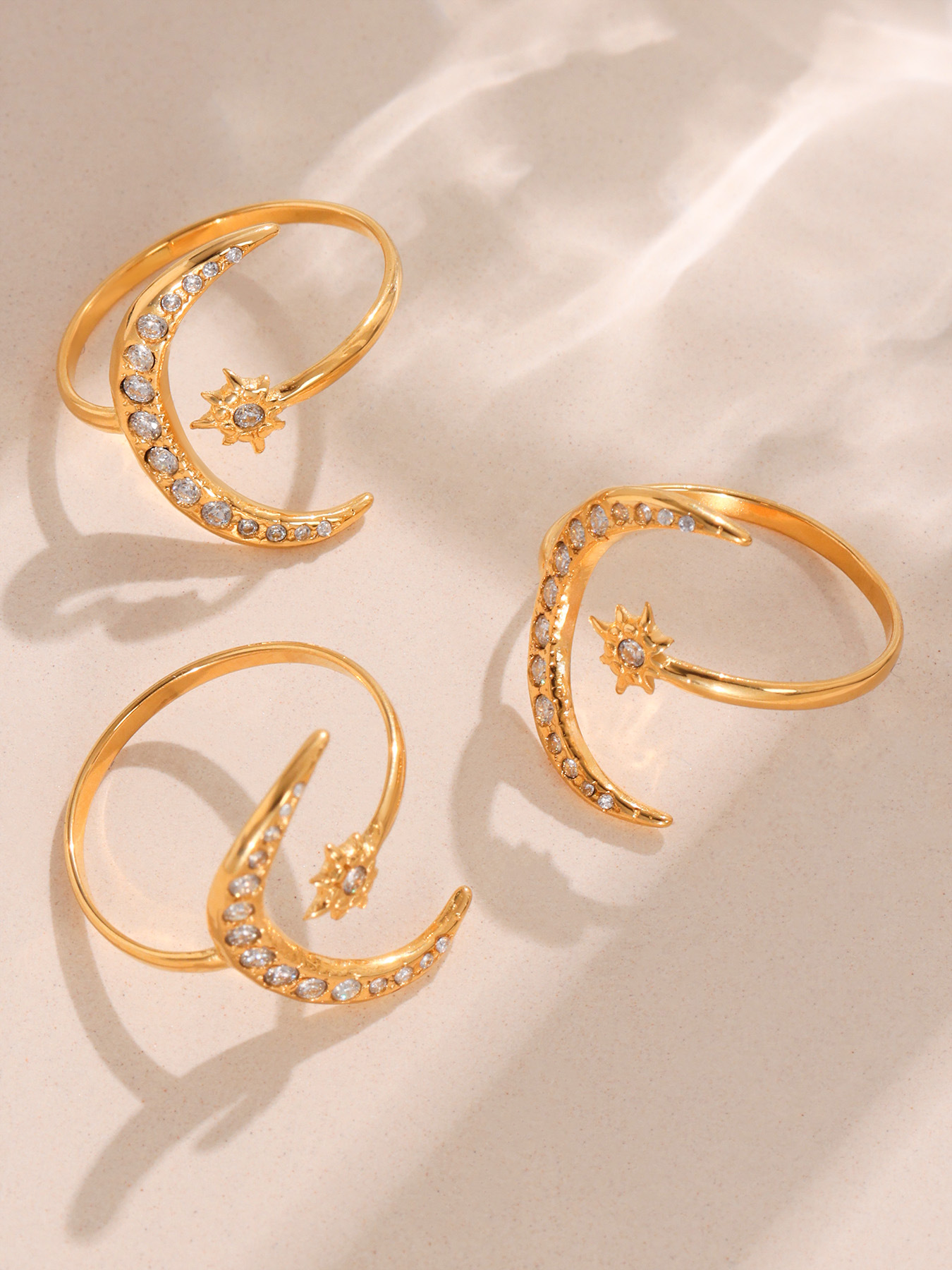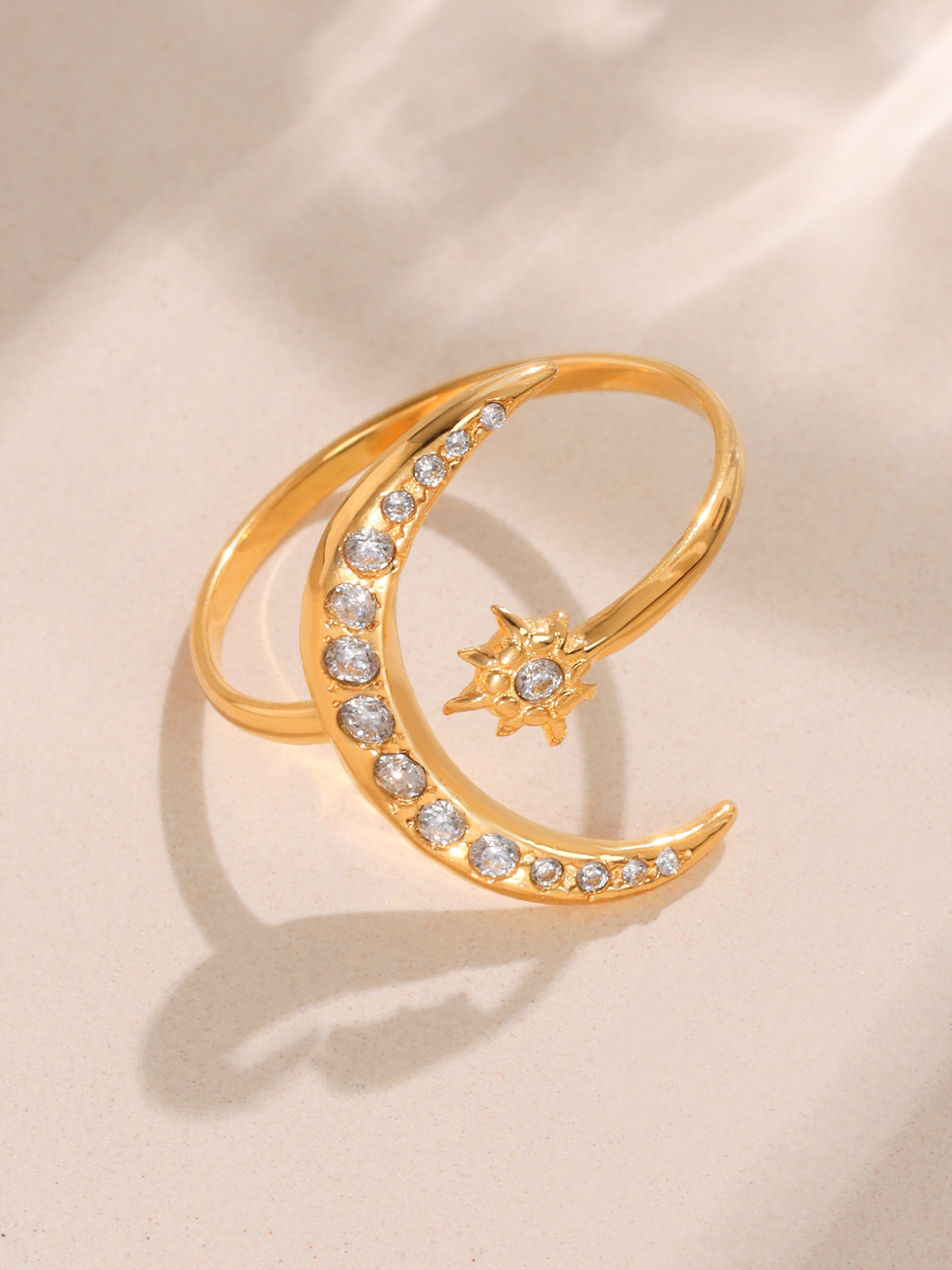 Stainless Steel 5A Zircon Star-Moon Irregular Geometric Ring