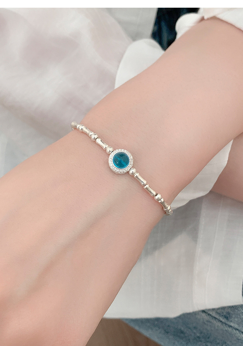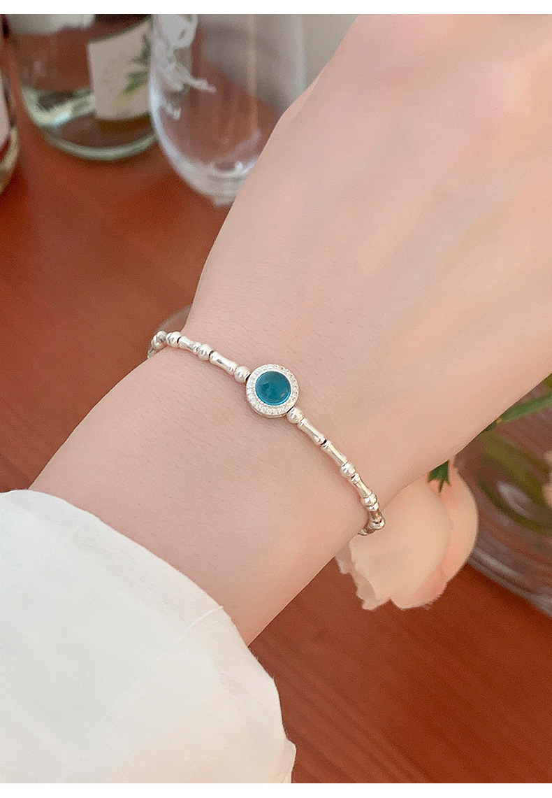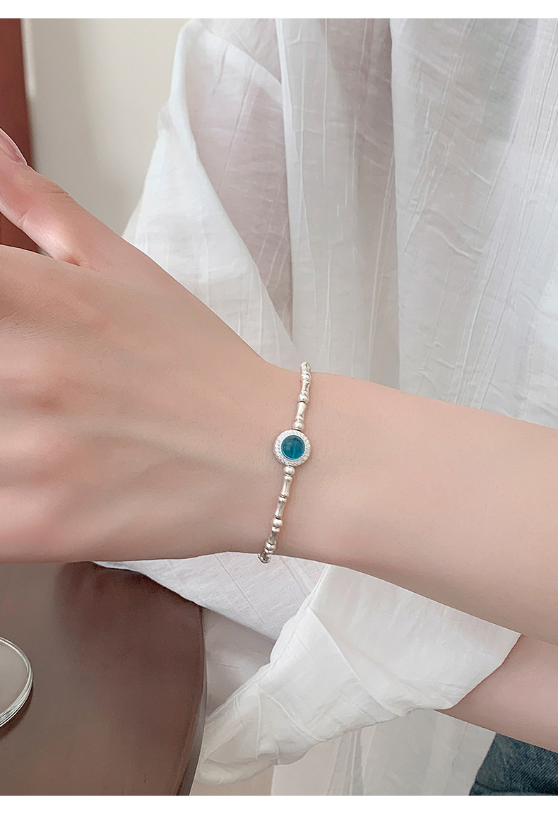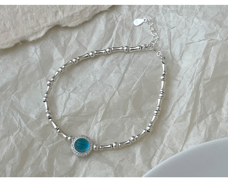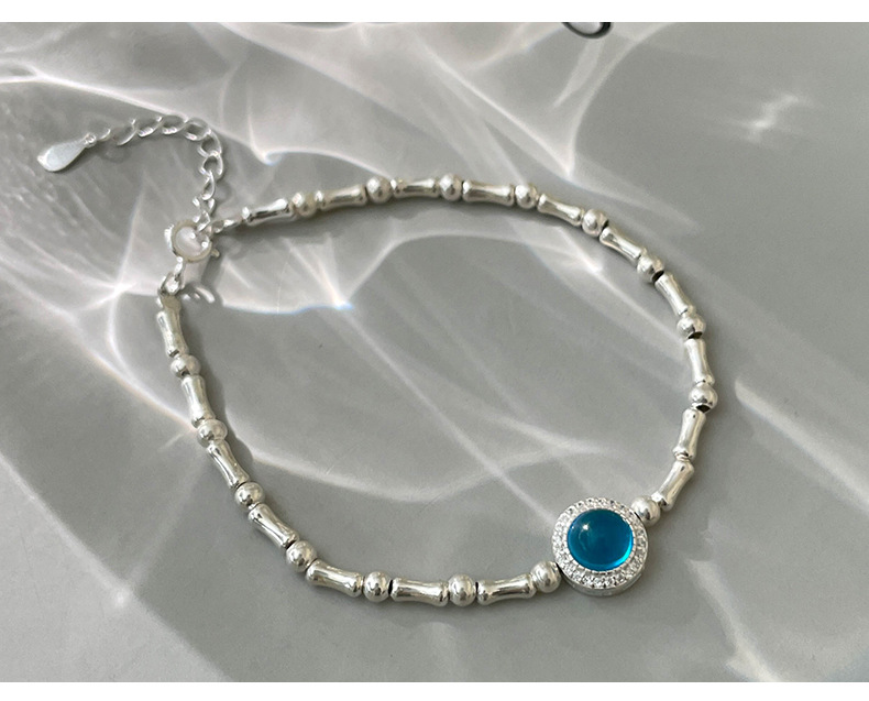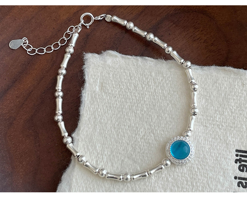 S925 Sterling Silver Aquamarine Bamboo Bracelet
