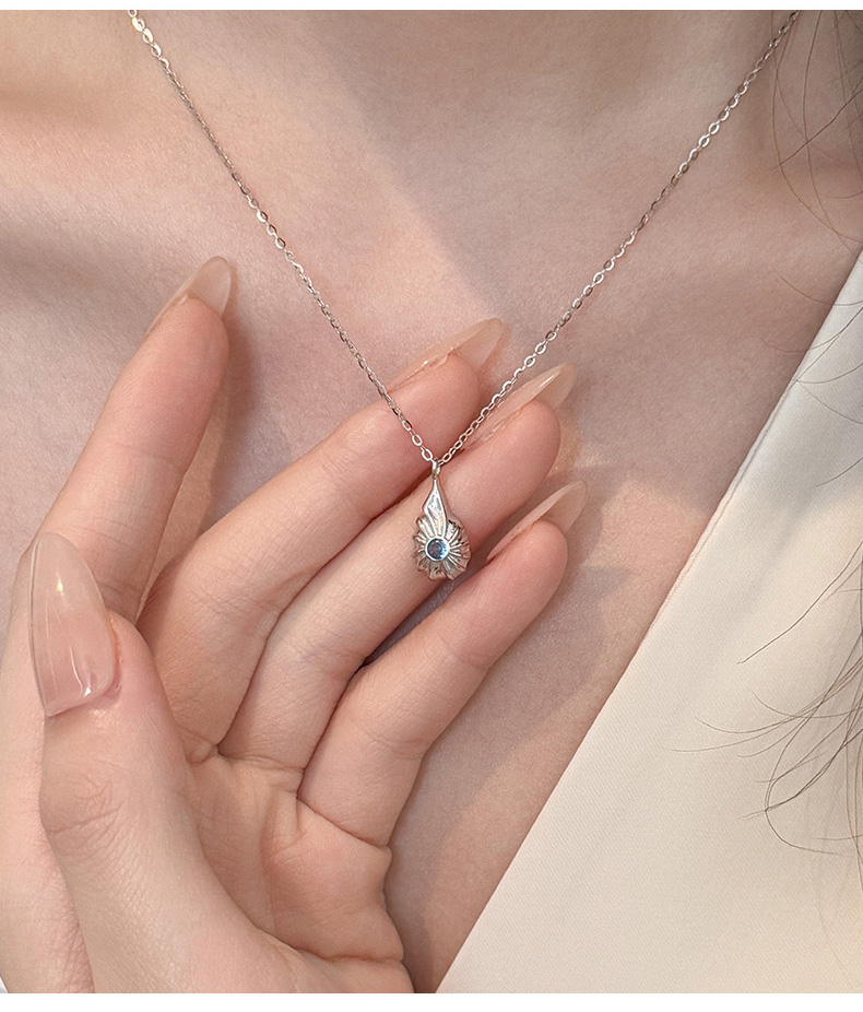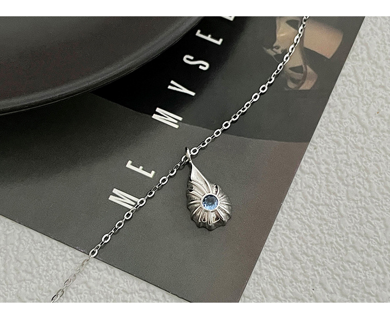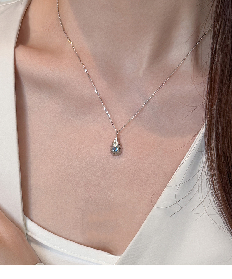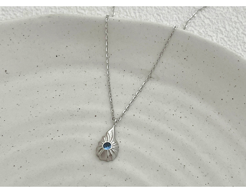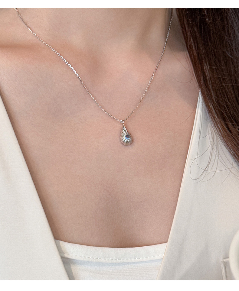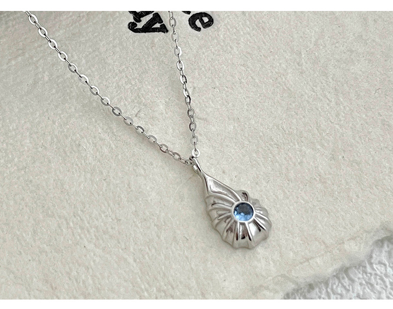 S925 Sterling Silver Blue Diamond Shell Teardrop Necklace