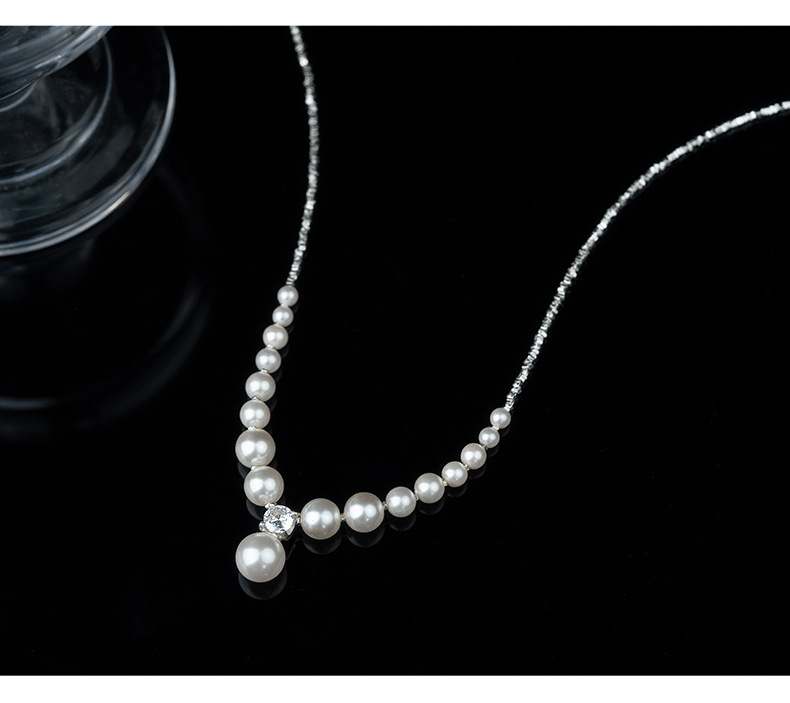 S925 Crushed Silver Bead Perfect Round Shell Pearl Necklace