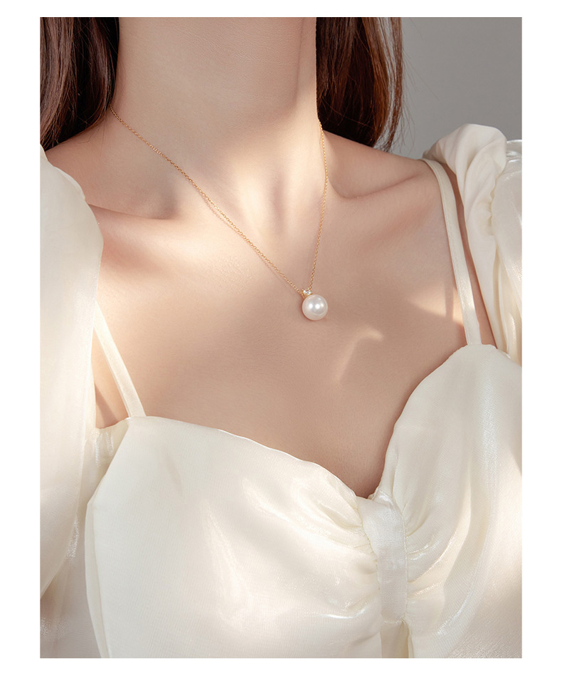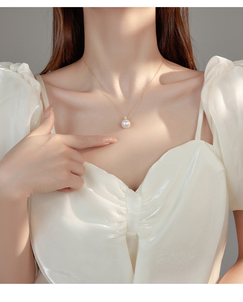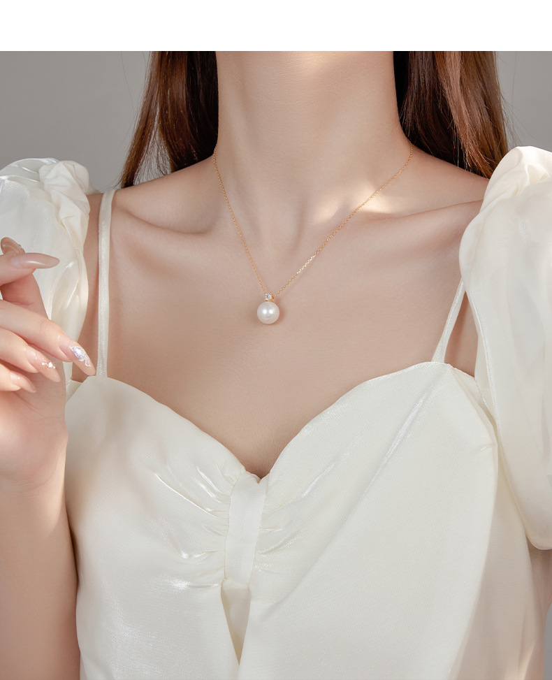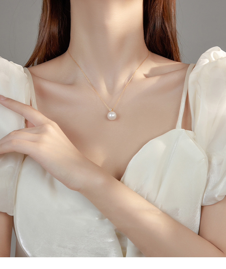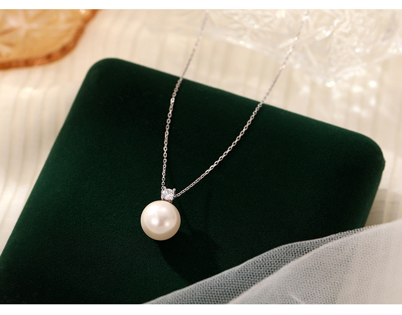 S925 Sterling Silver & Diamond Round Shell Pearl Necklace