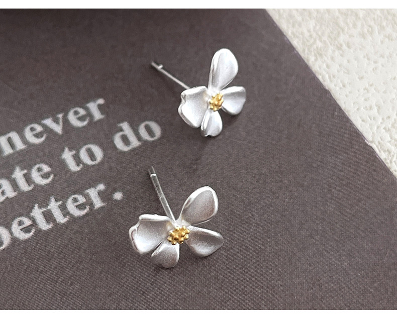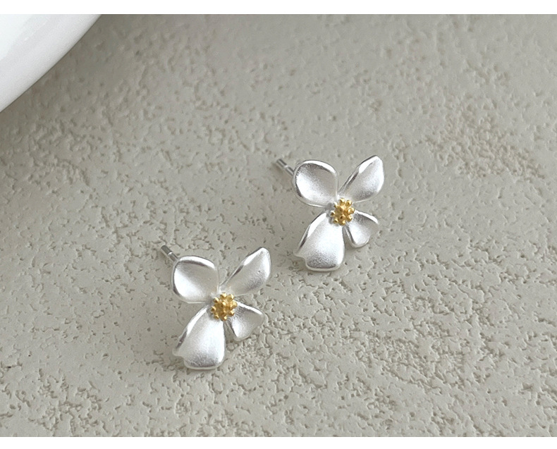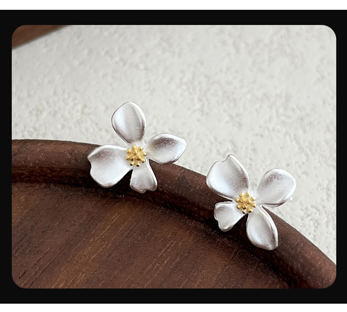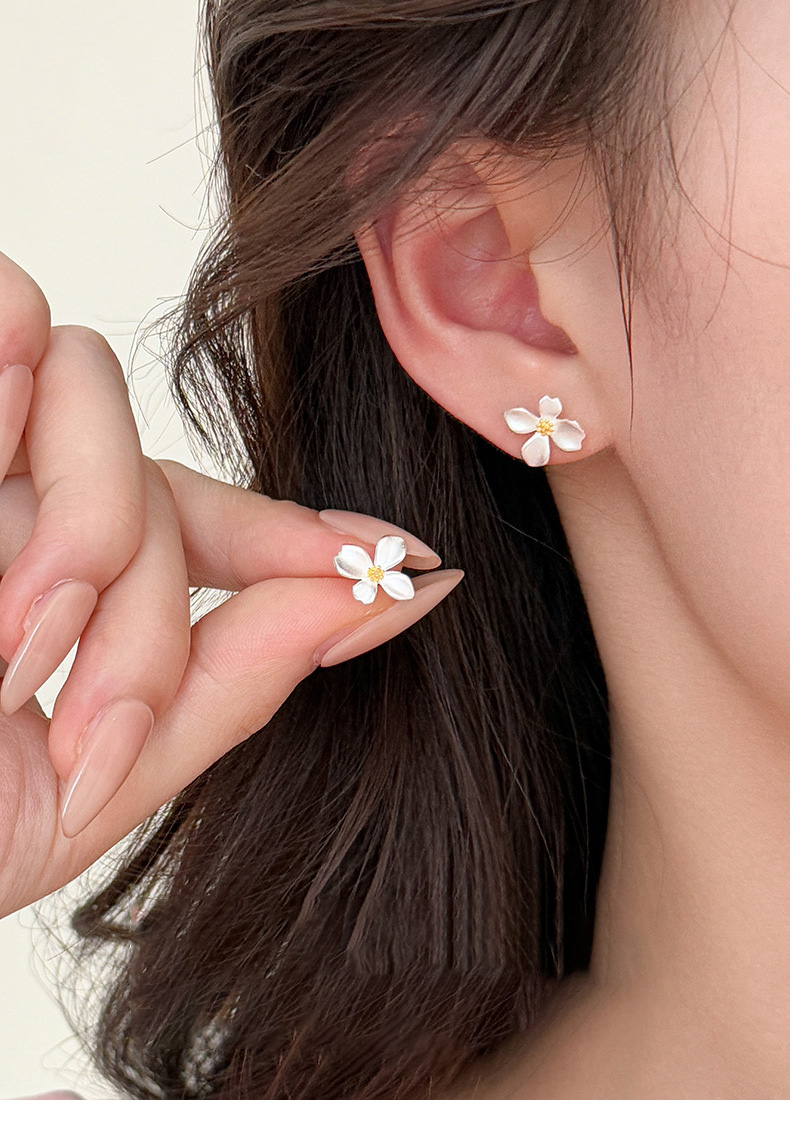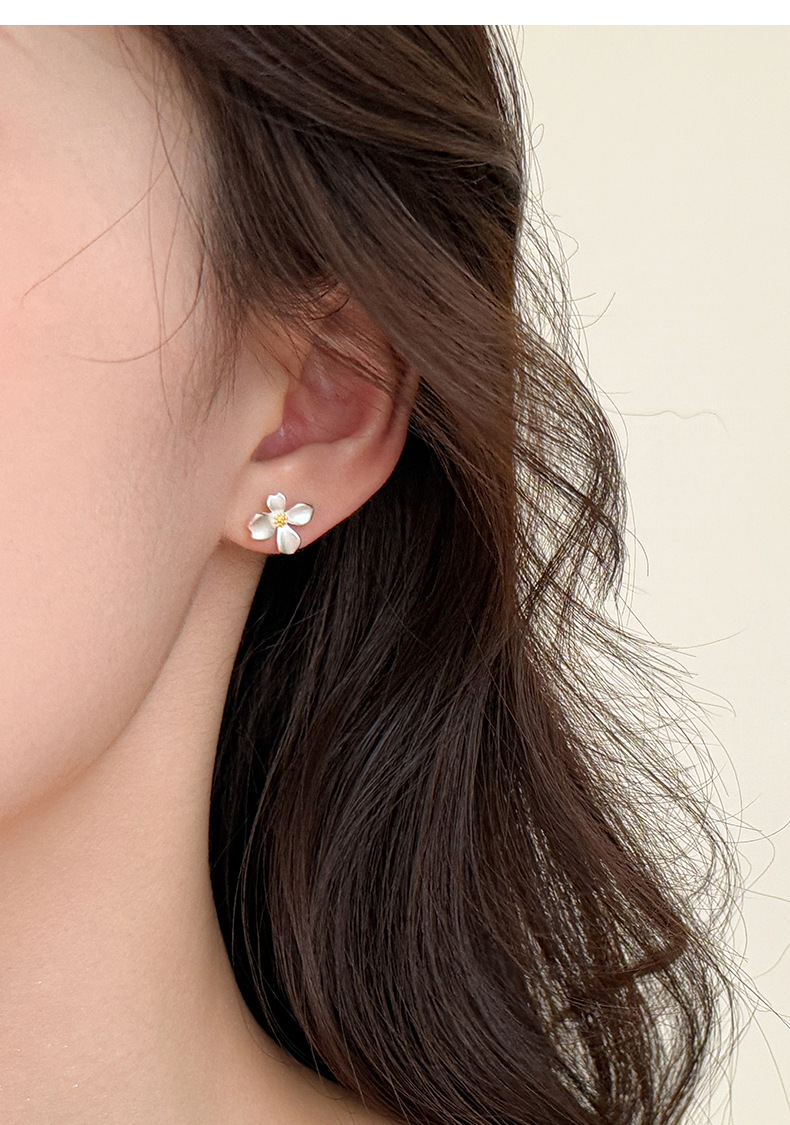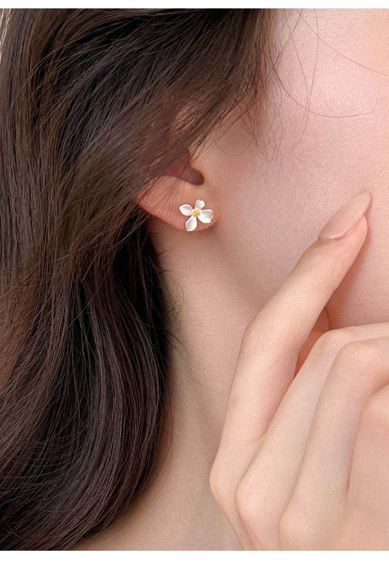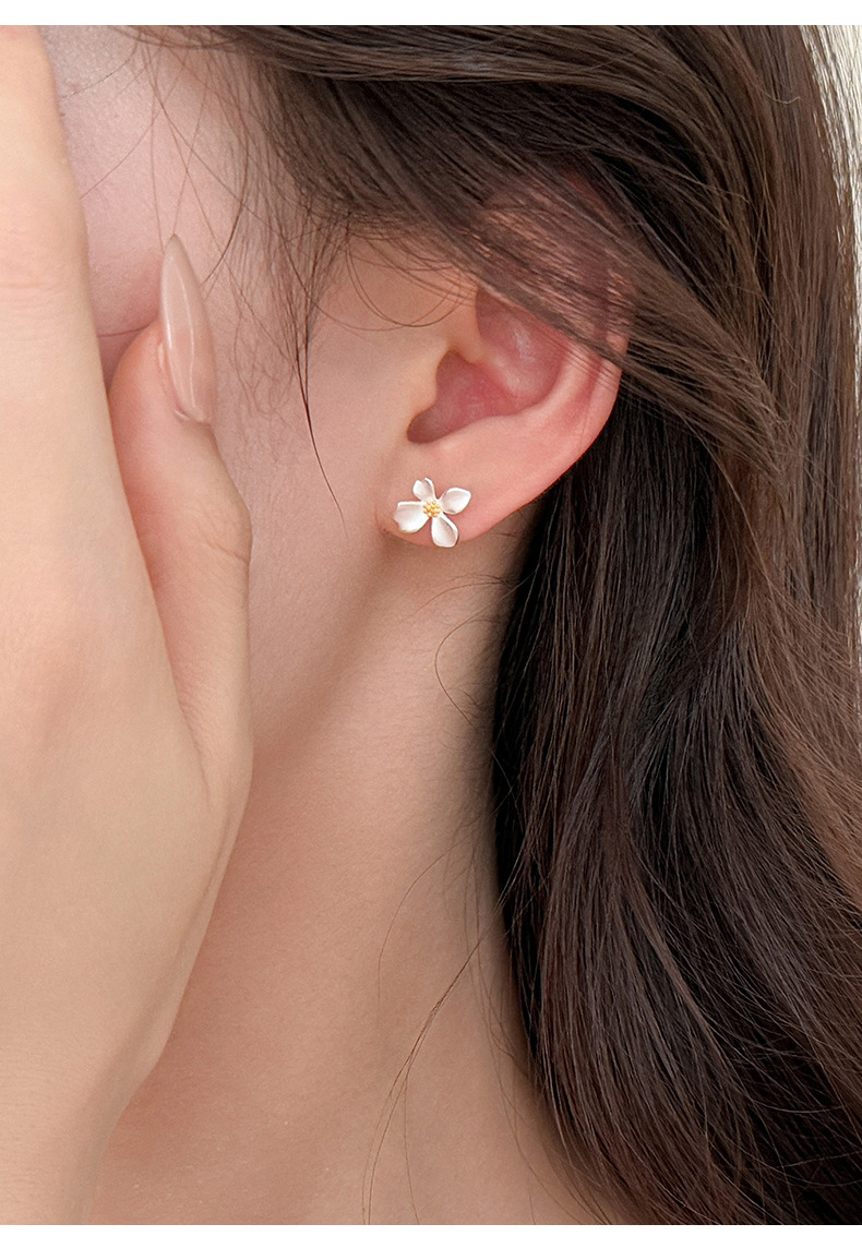 S999 Fine Silver Gardenia Flower Stud Earrings