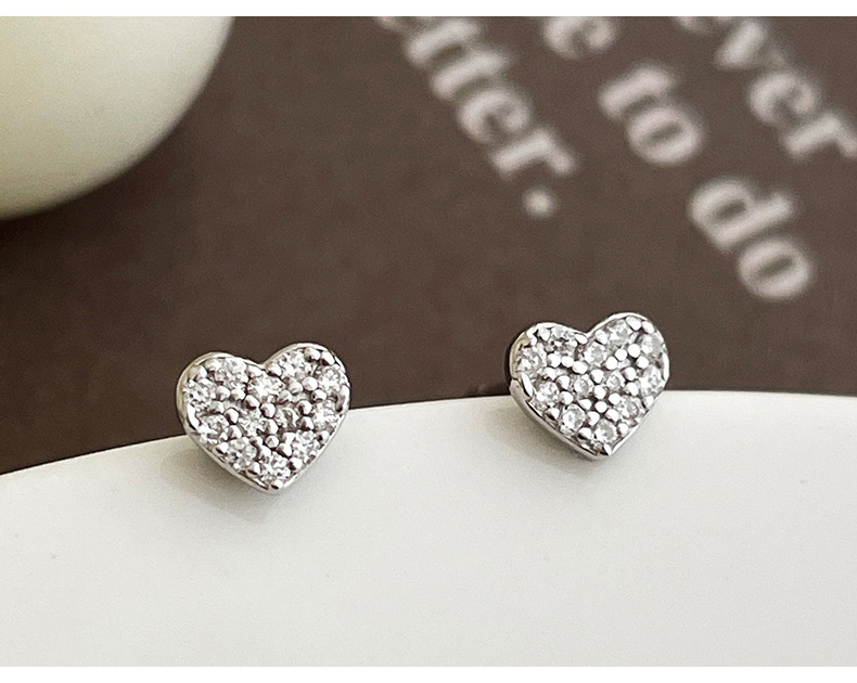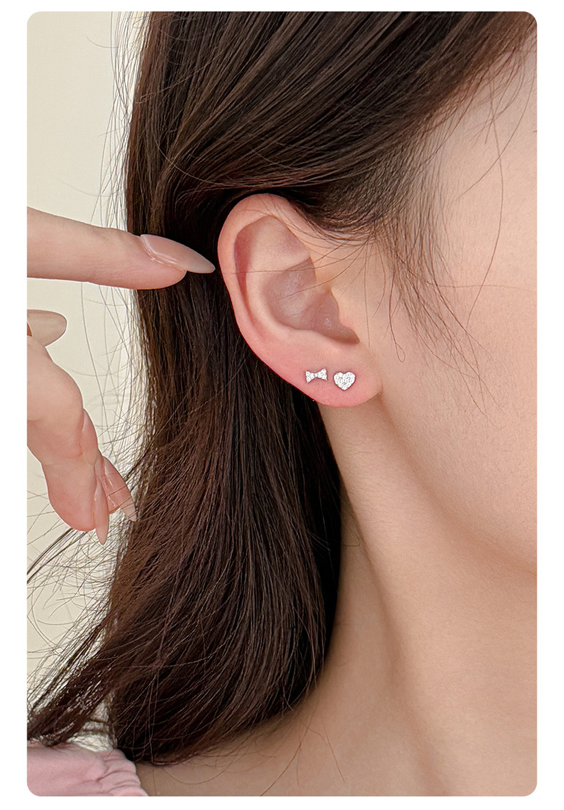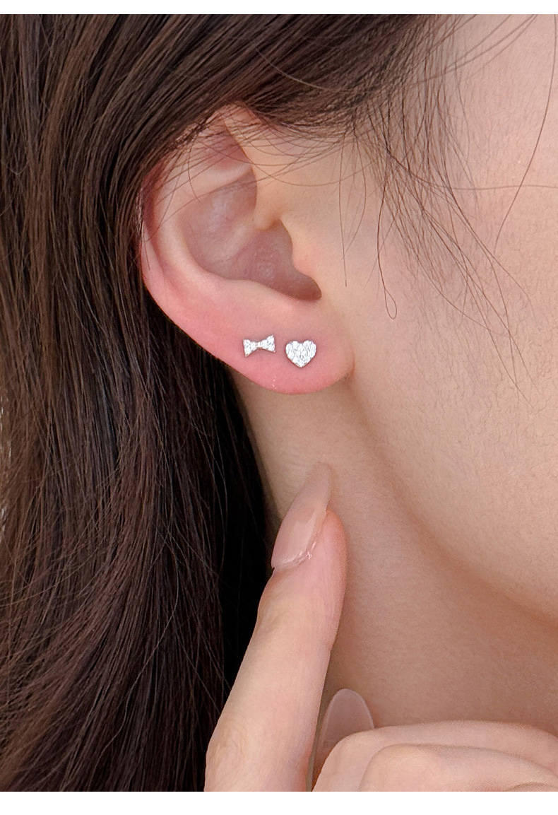 S999 Fine Silver Glittering Heart Bow Stud Earrings