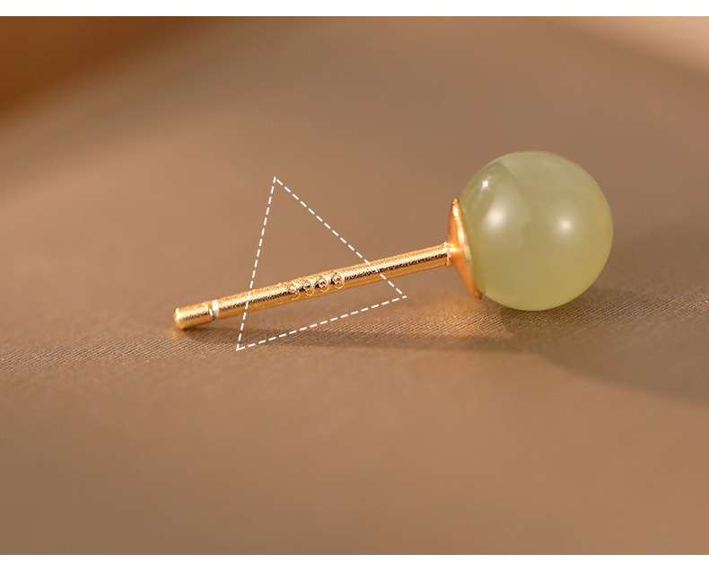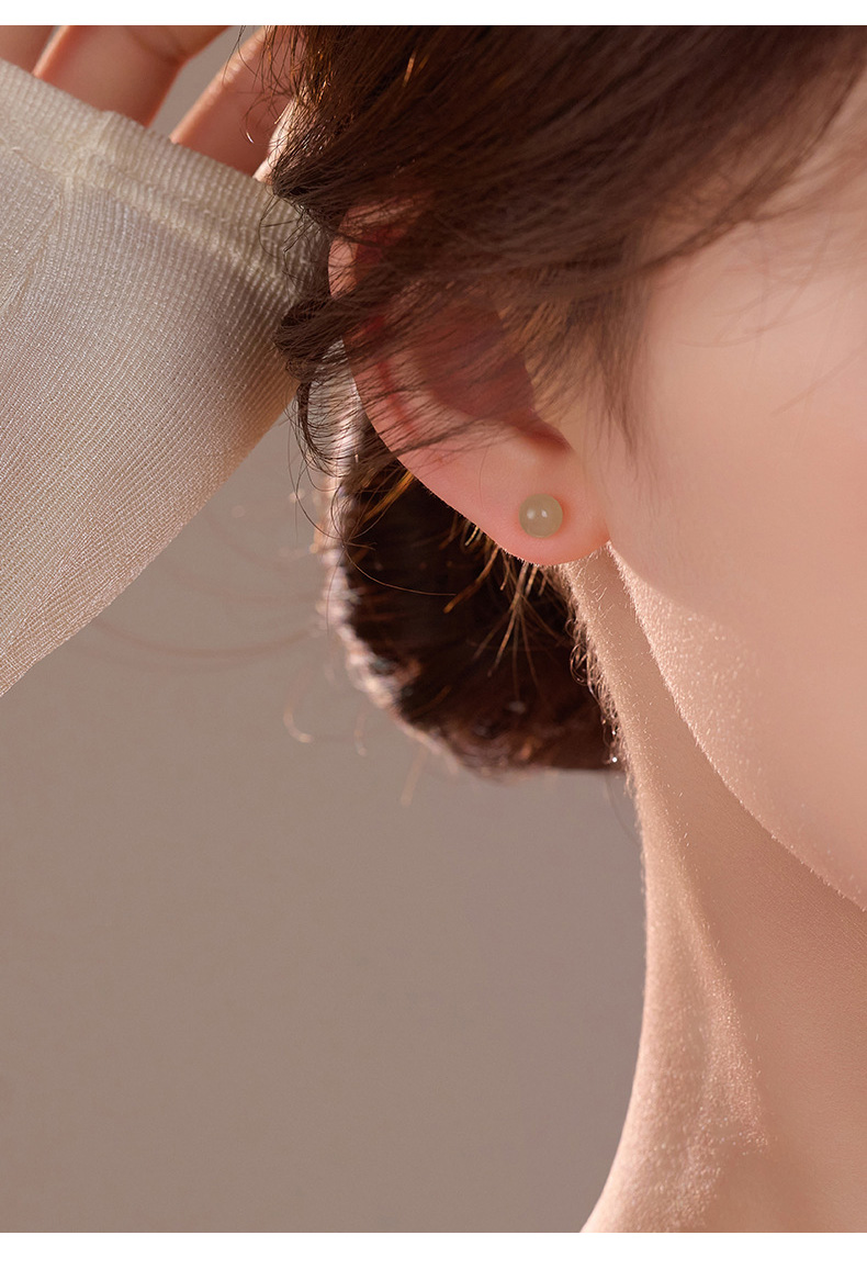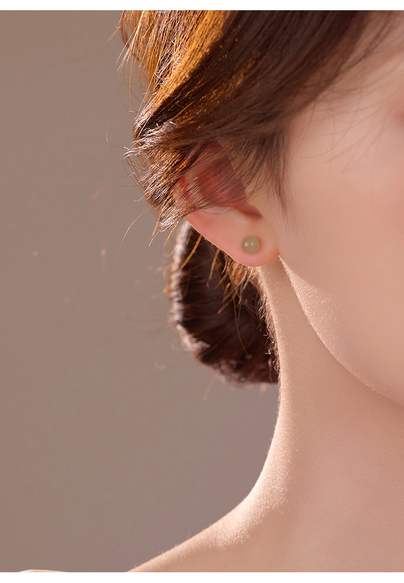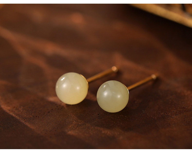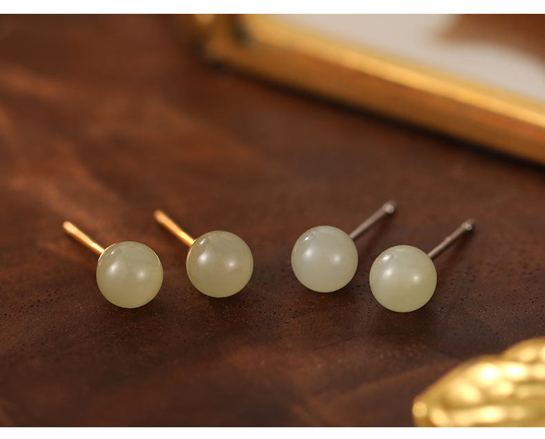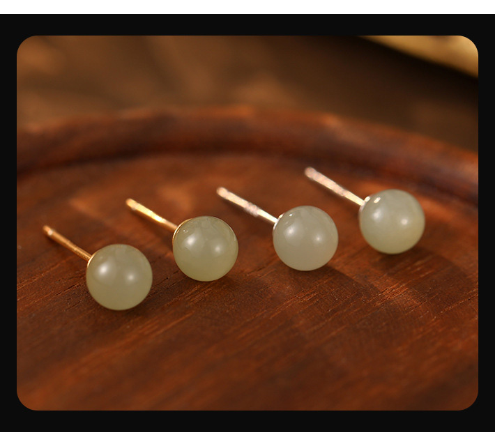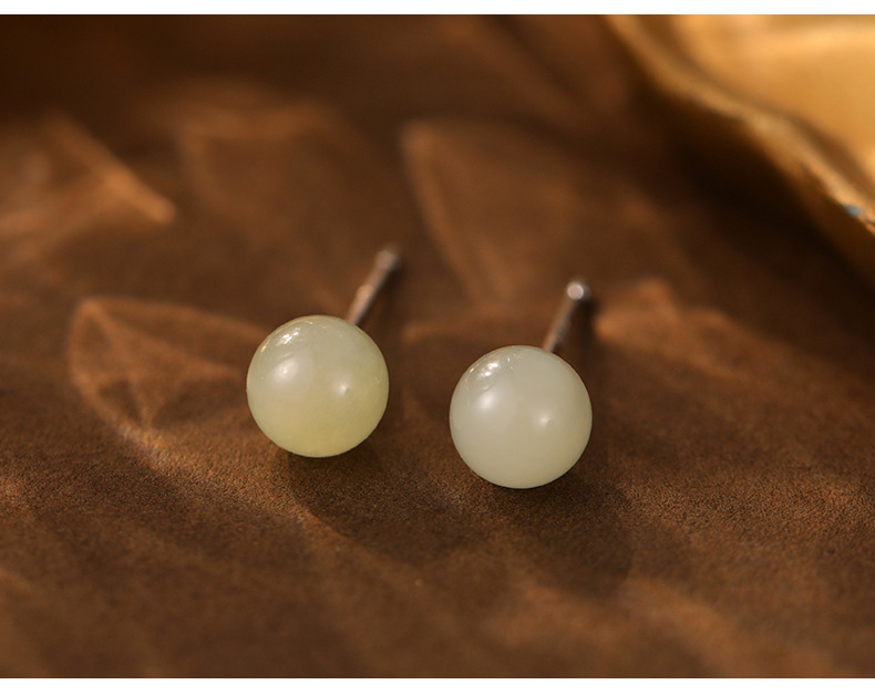 S999 Fine Silver Natural Hotan Jade Stud Earrings