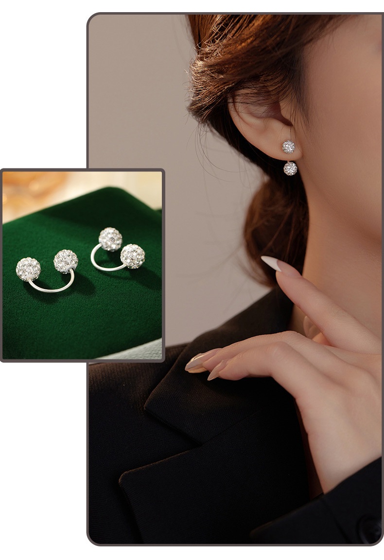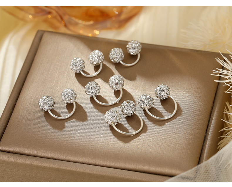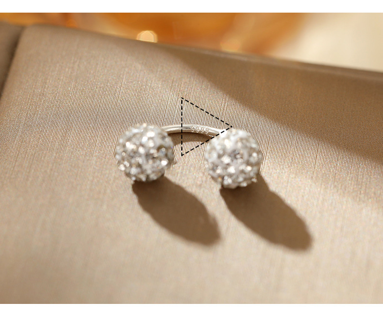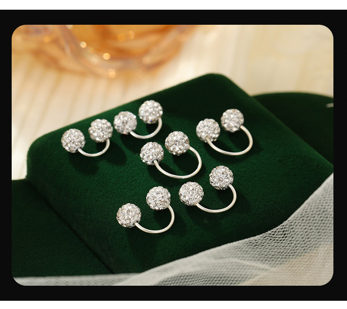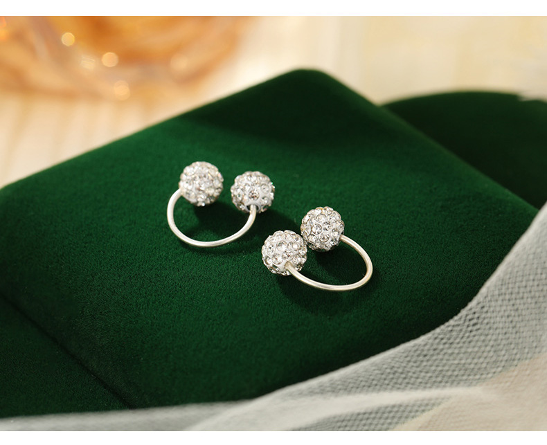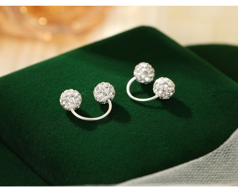 S999 Fine Silver Shamballa U-Shape Twin Diamond Ball Stud Earrings