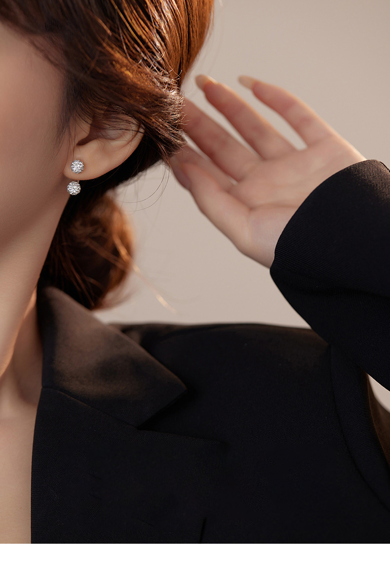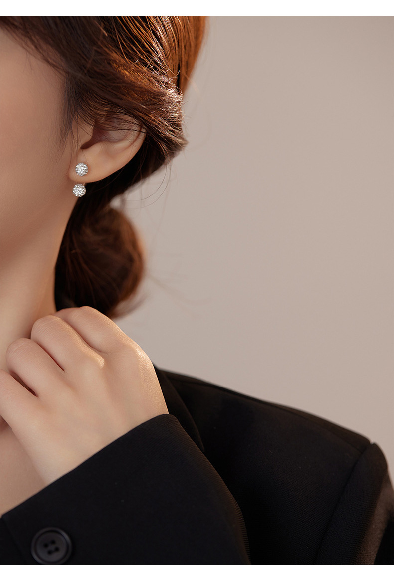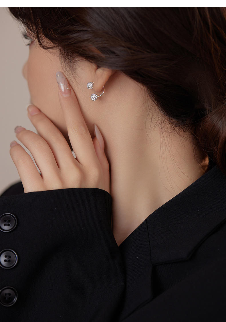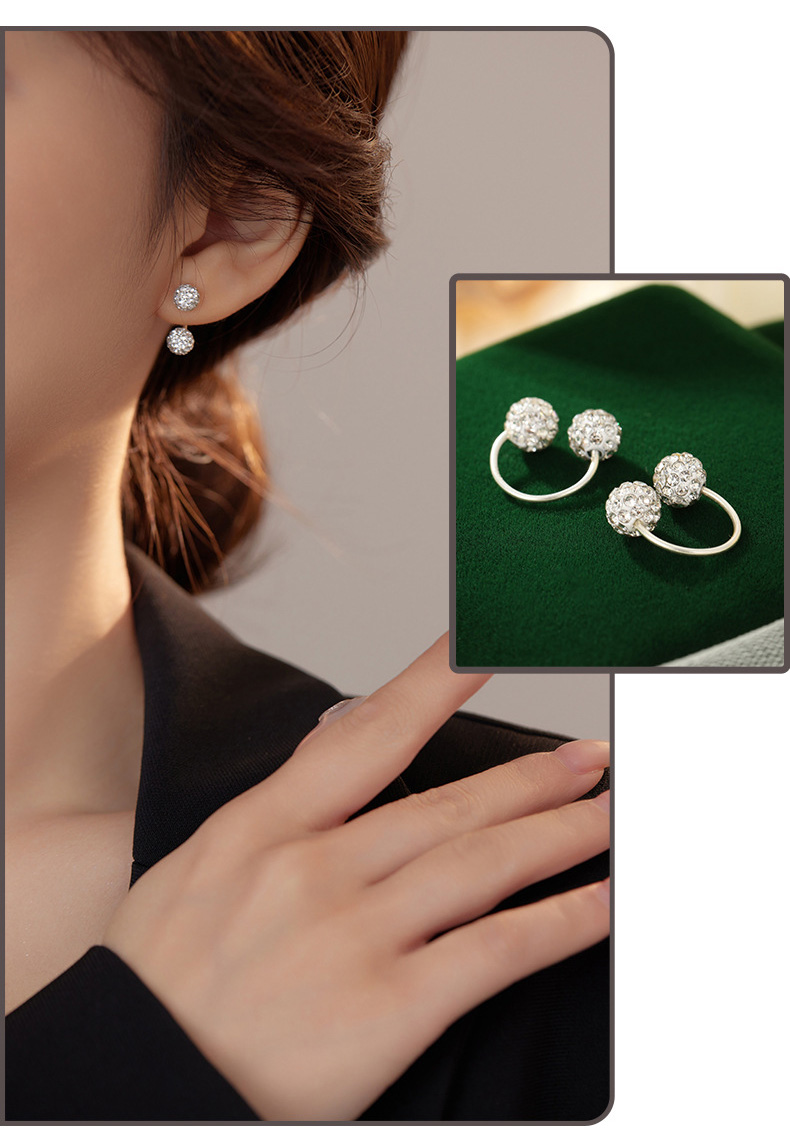 S999 Fine Silver Shamballa U-Shape Twin Diamond Ball Stud Earrings