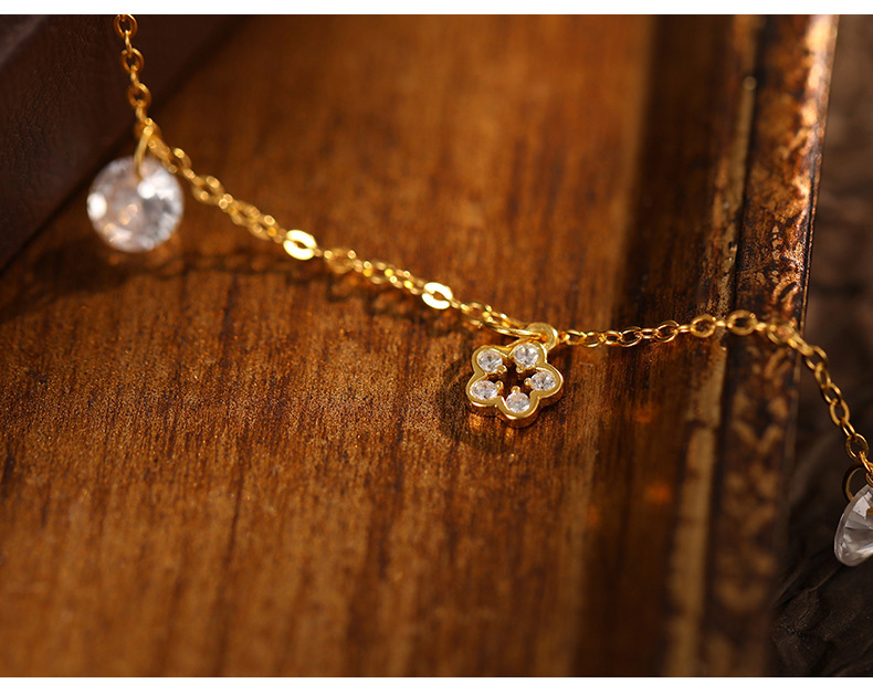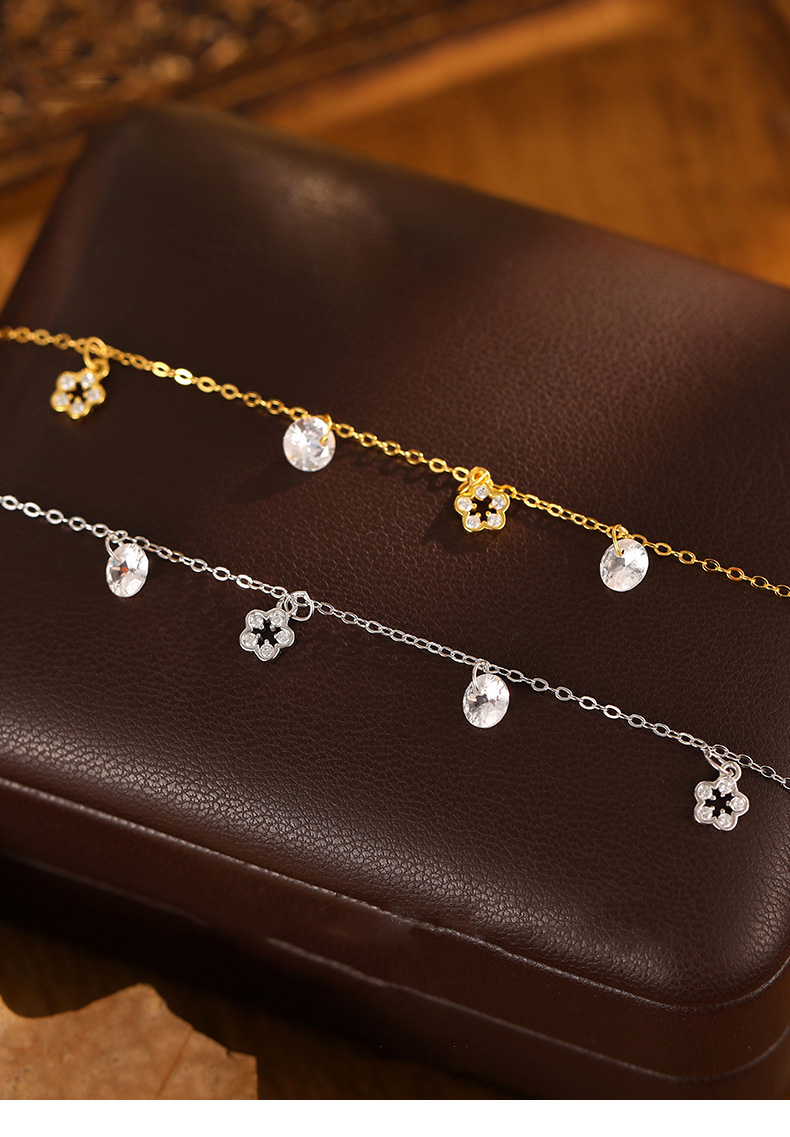 S925 Sterling Silver Floral Zircon Tassel Anklet
