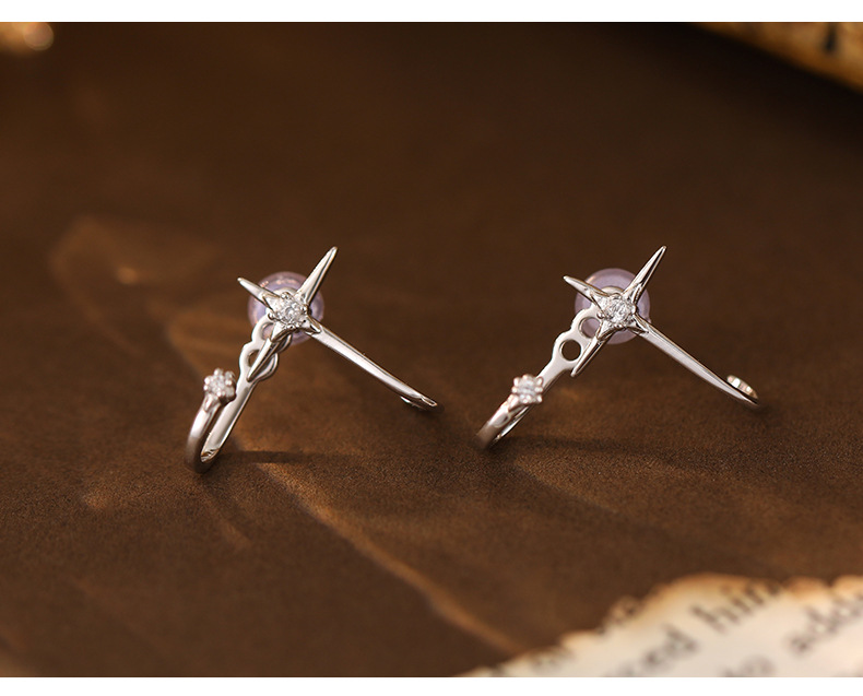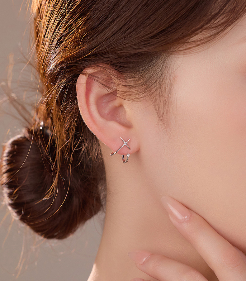 S925 Sterling Silver Four-Point Star Huggie Earrings