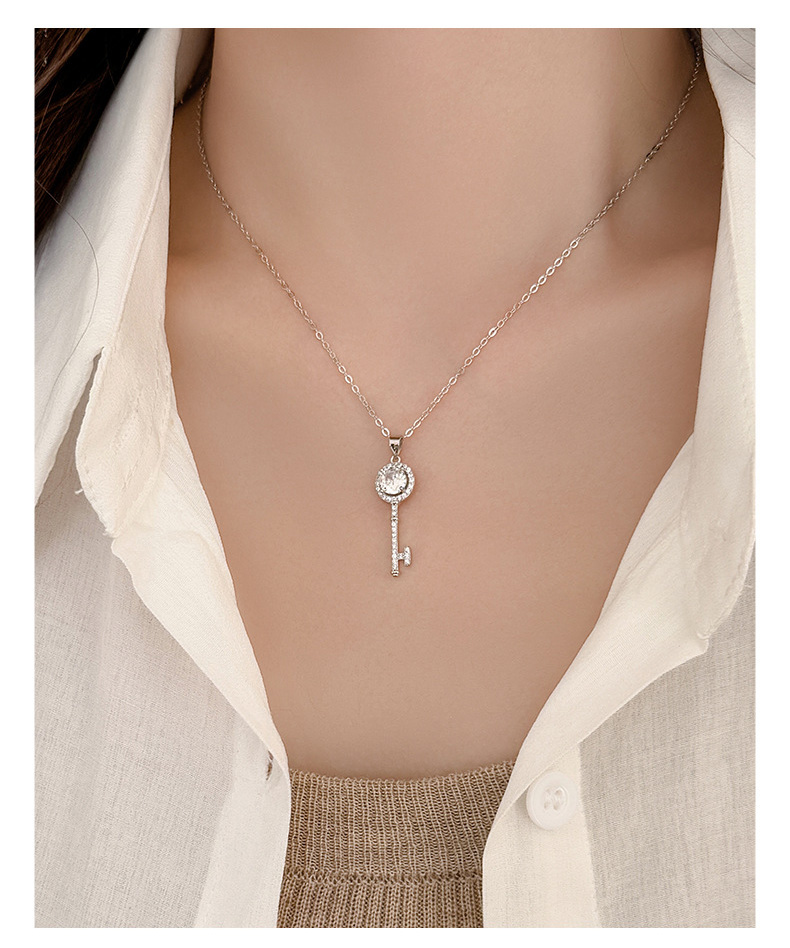 S925 Sterling Silver Full Pavé Key Pendant Necklace