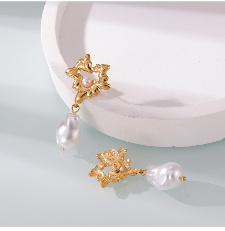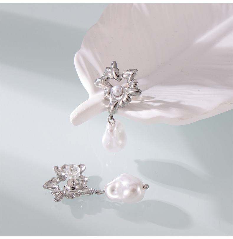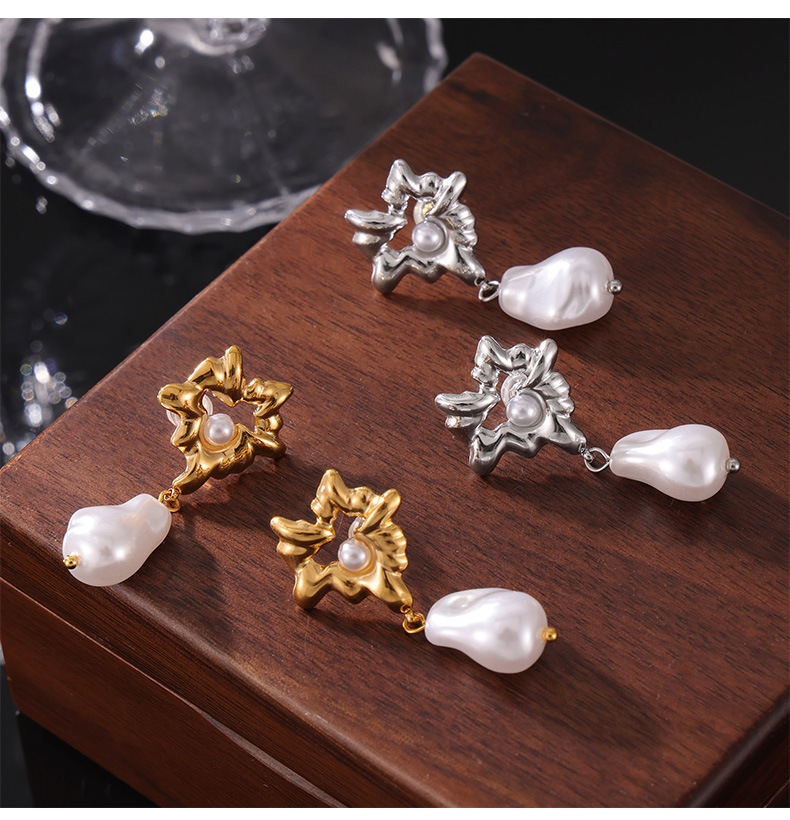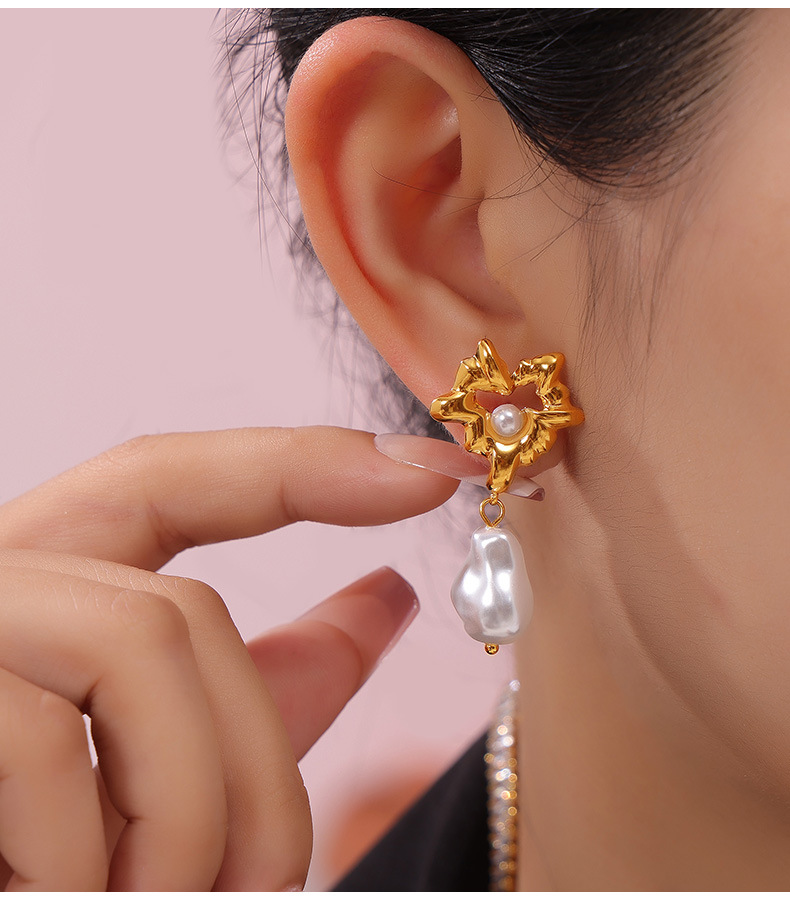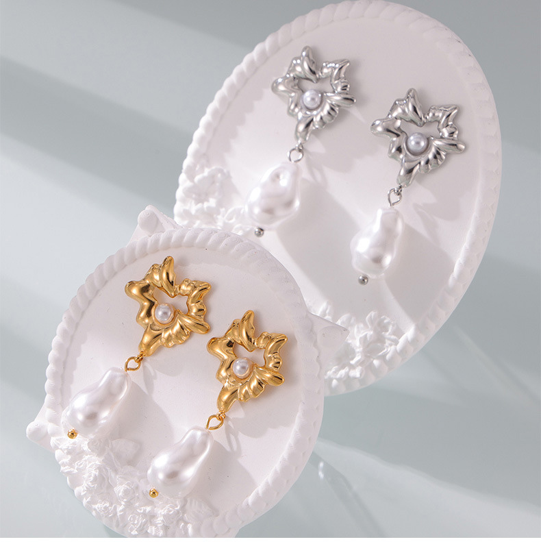 Titanium Steel Heart-Shaped Shell Pearl Pendant Earrings