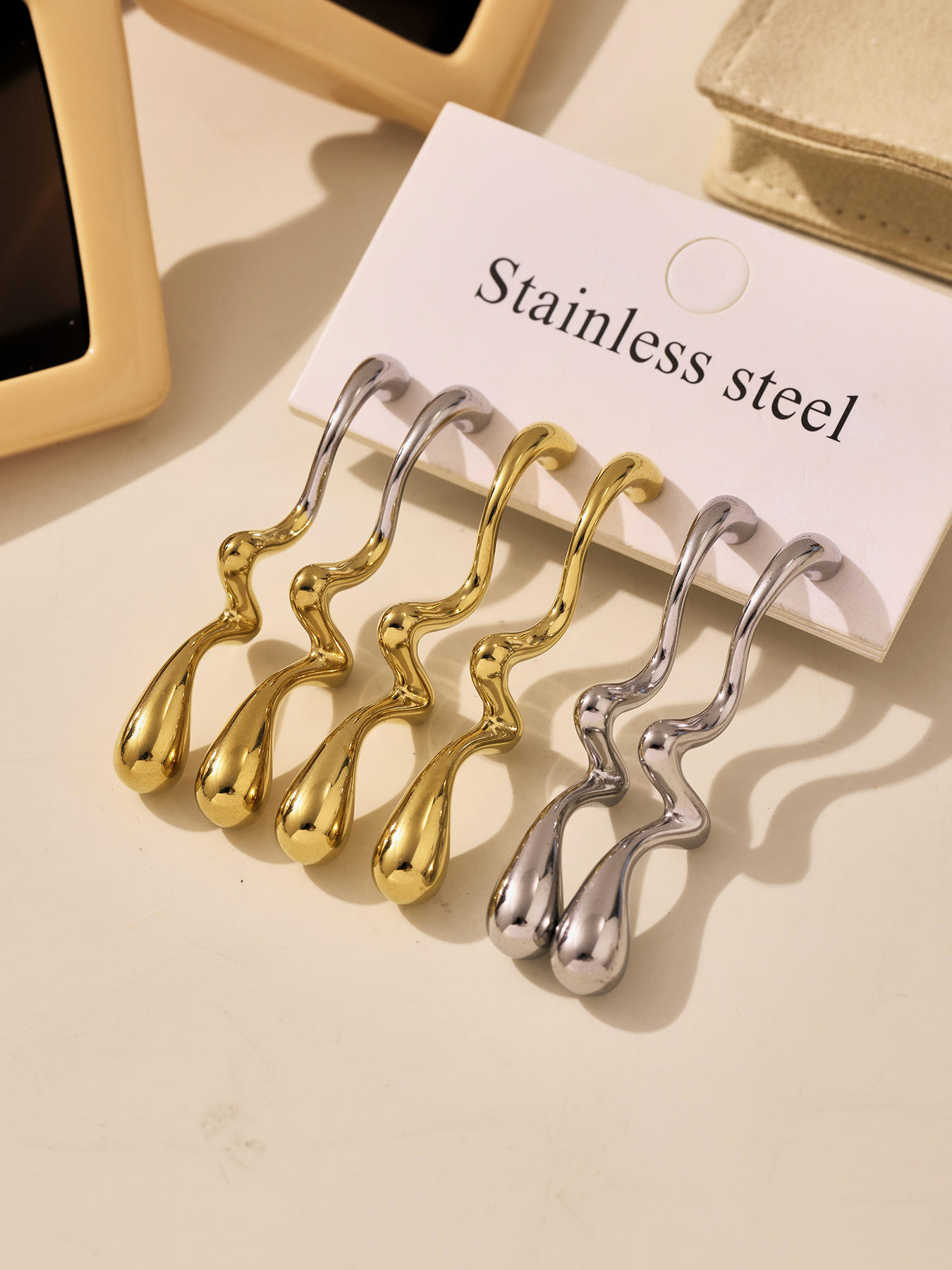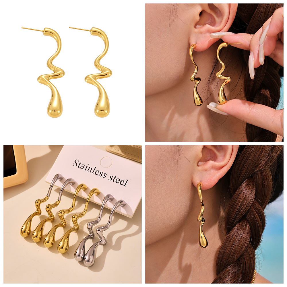 Stainless Steel Irregular Teardrop Color-Block Earrings