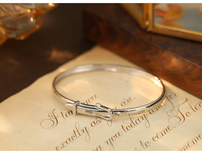 S925 Sterling Silver Leather Strap Buckle Bracelet