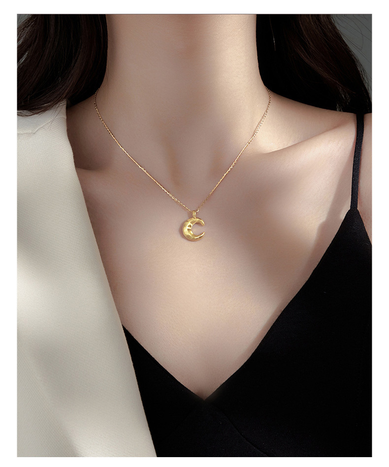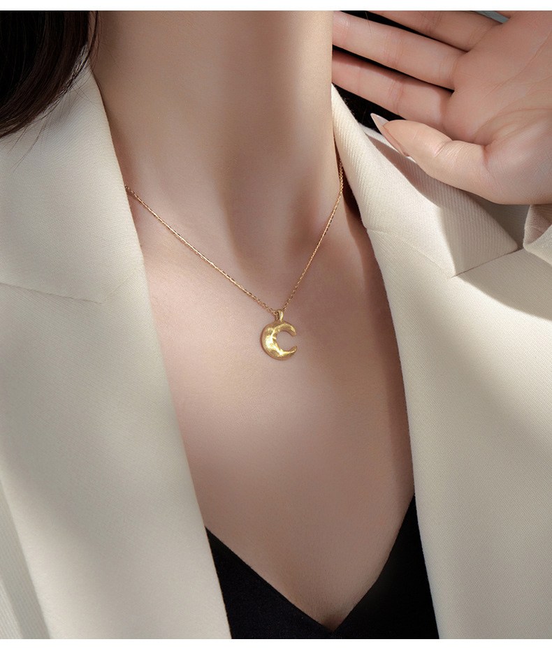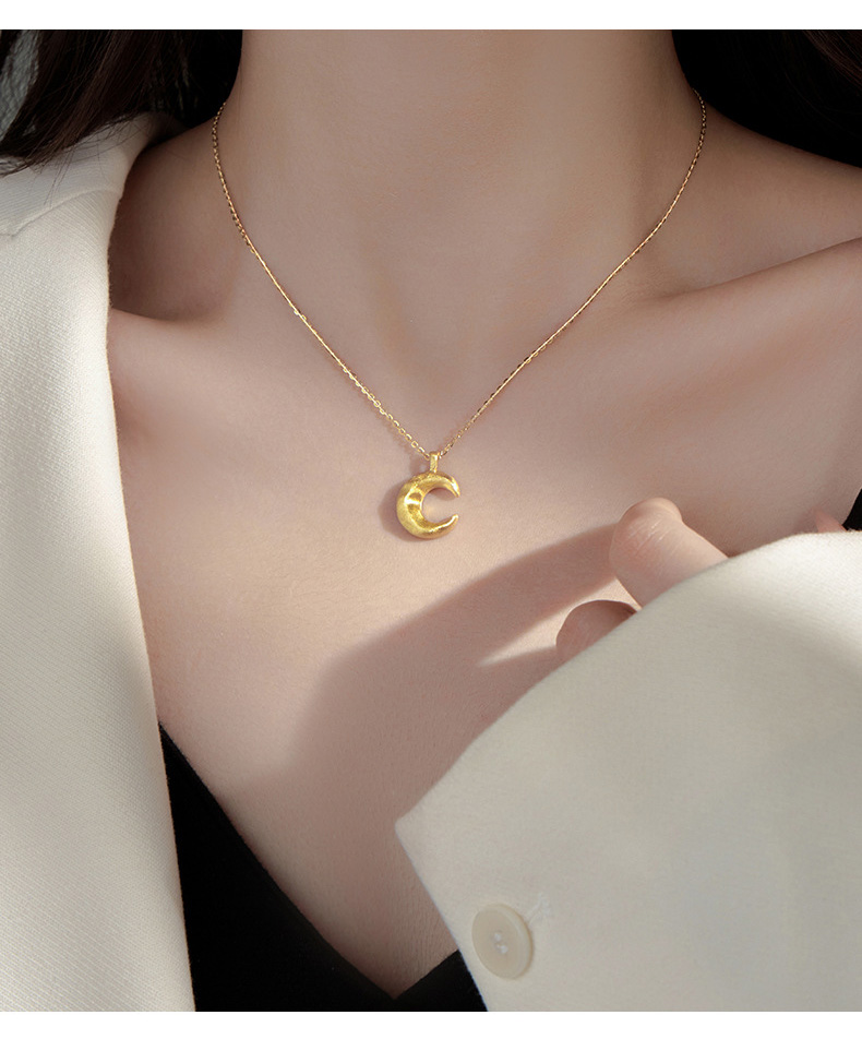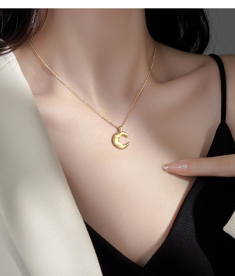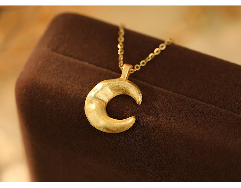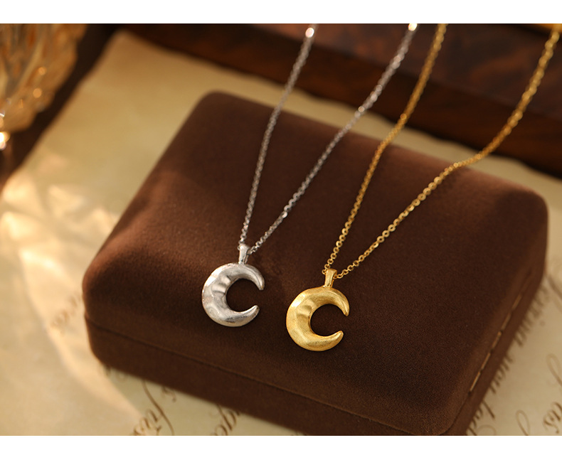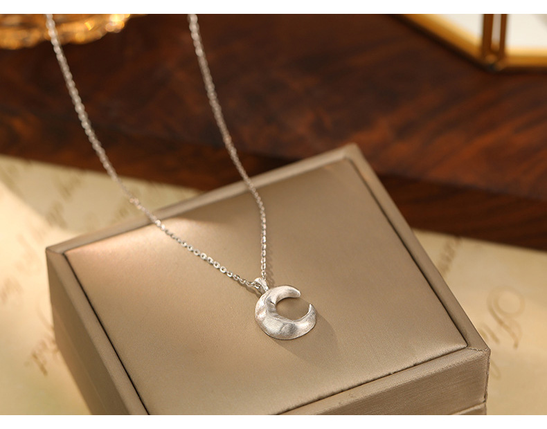 S925 Sterling Silver Matte Moon Pendant Necklace