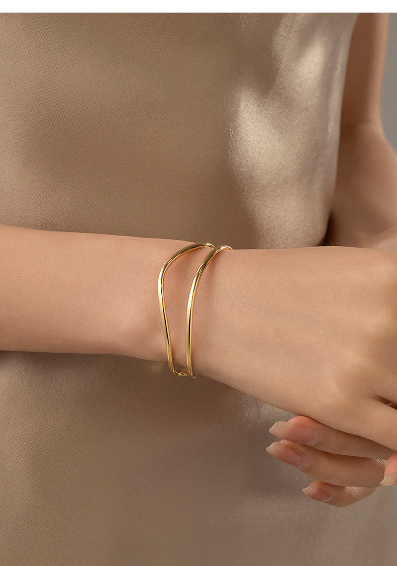 S925 Sterling Silver Minimalist Double Layer Line Bracelet