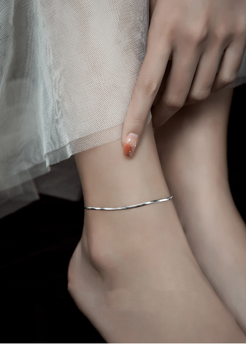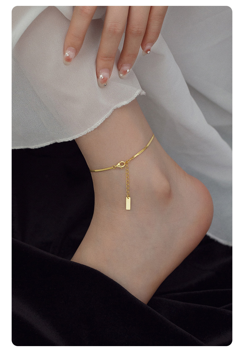 S925 Sterling Silver Minimalist Flat Snake Chain Anklet