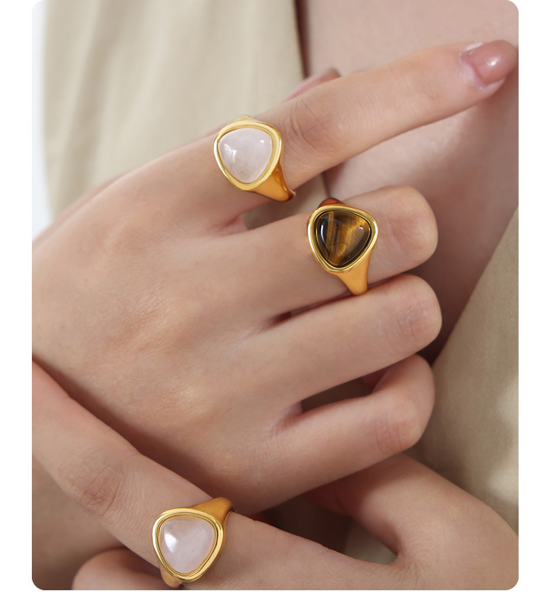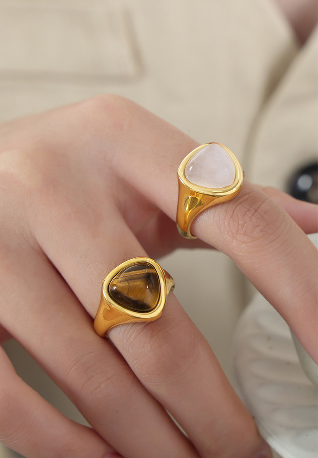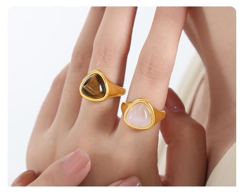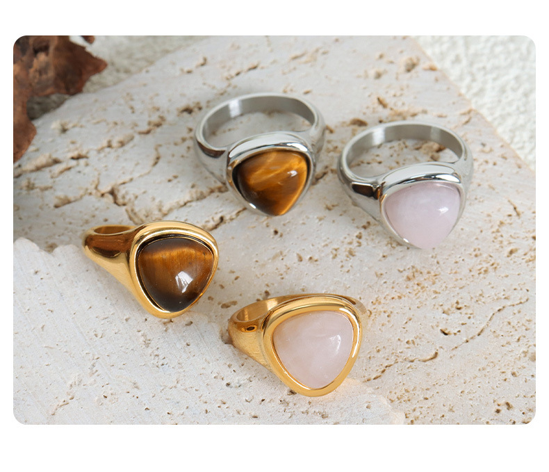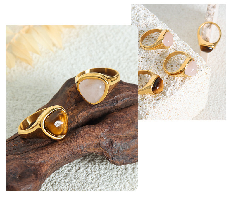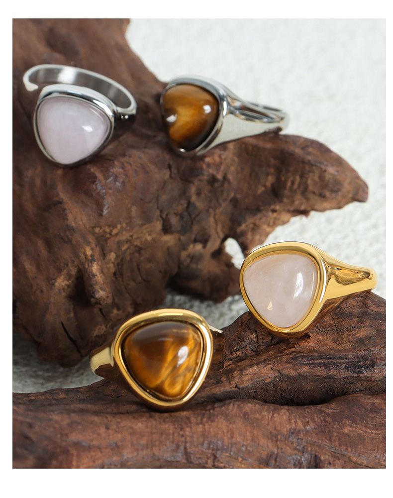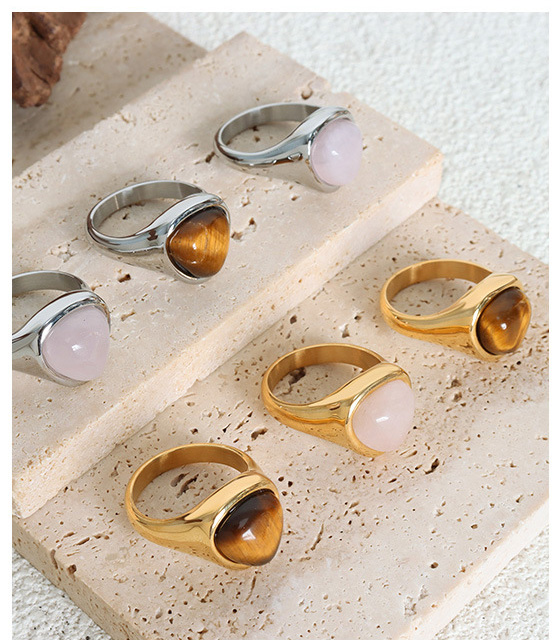 Titanium Steel Natural Rose Quartz and Tiger’s Eye Ring