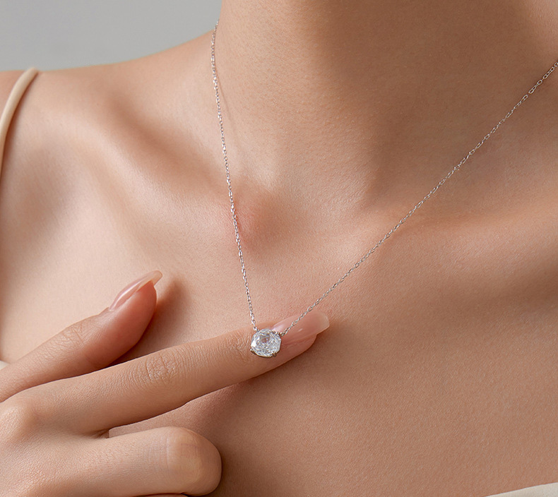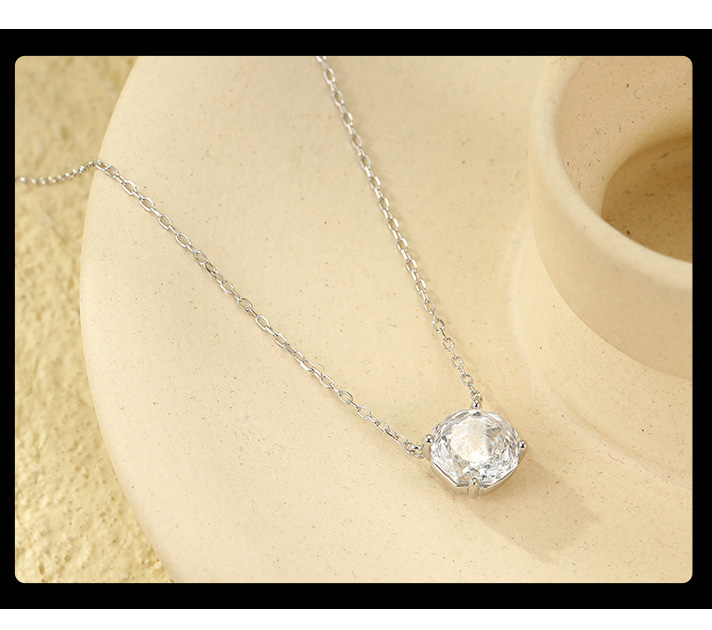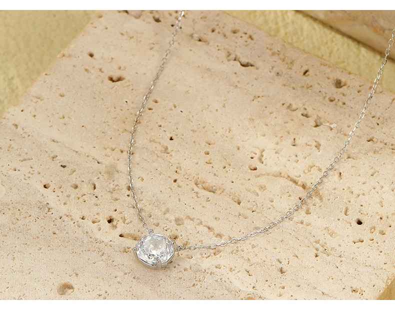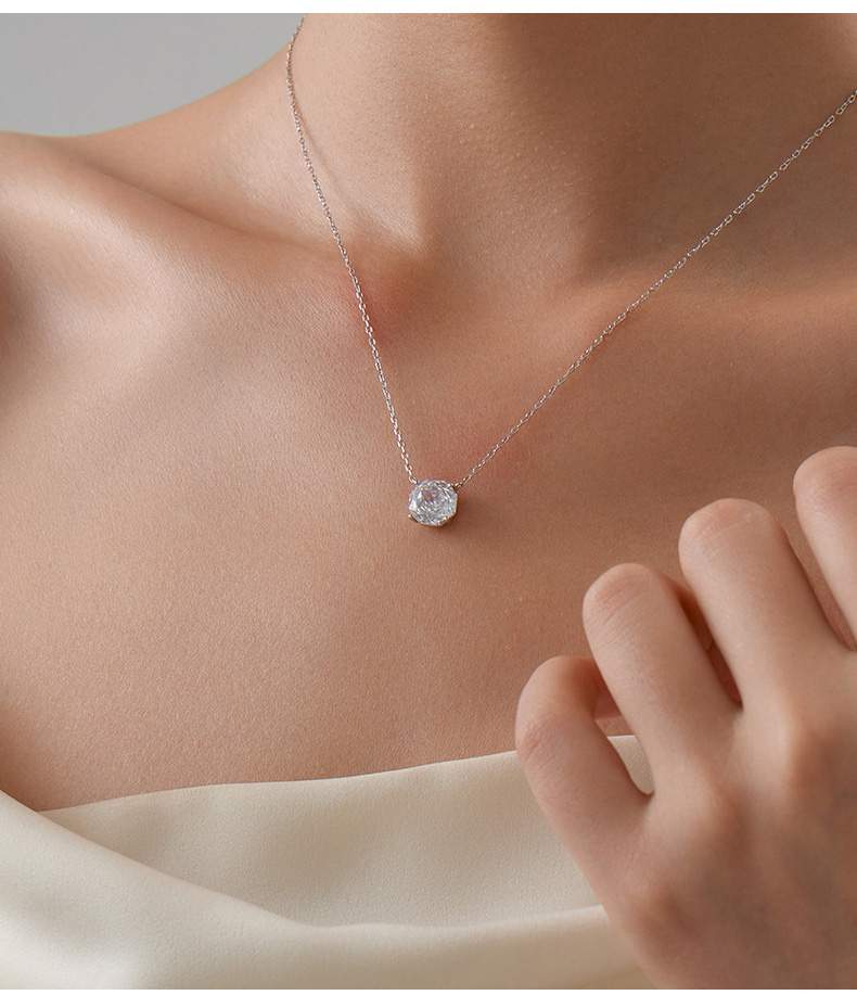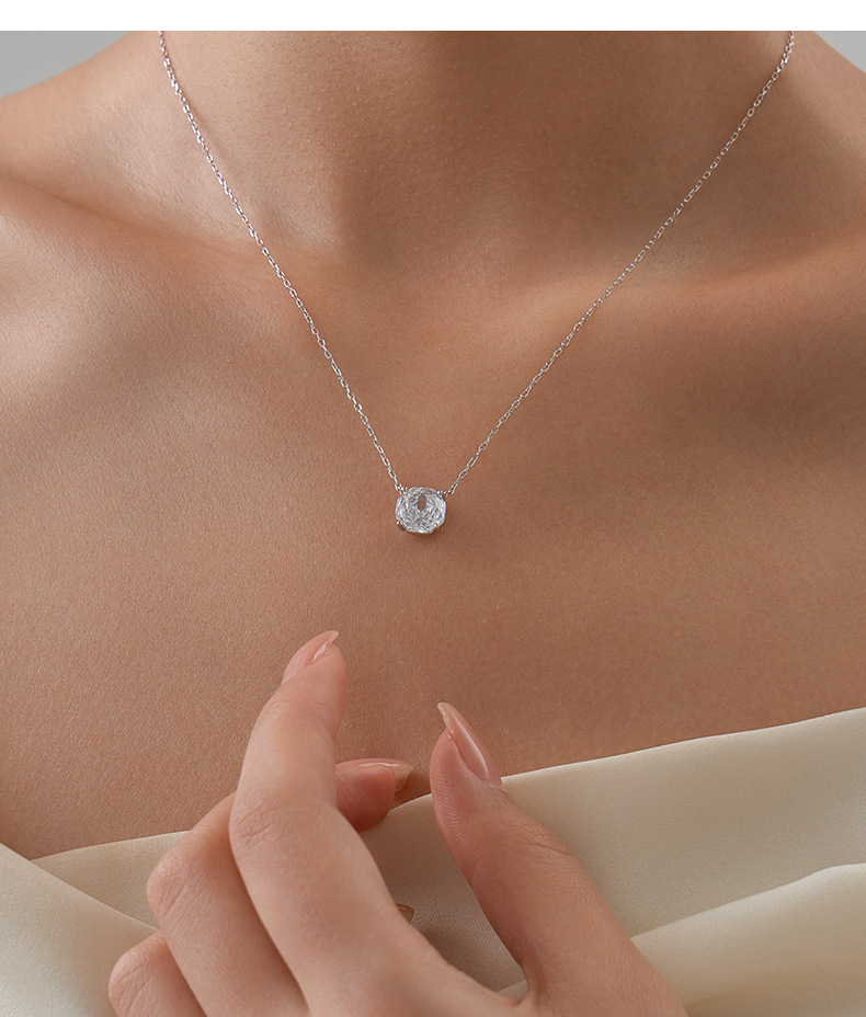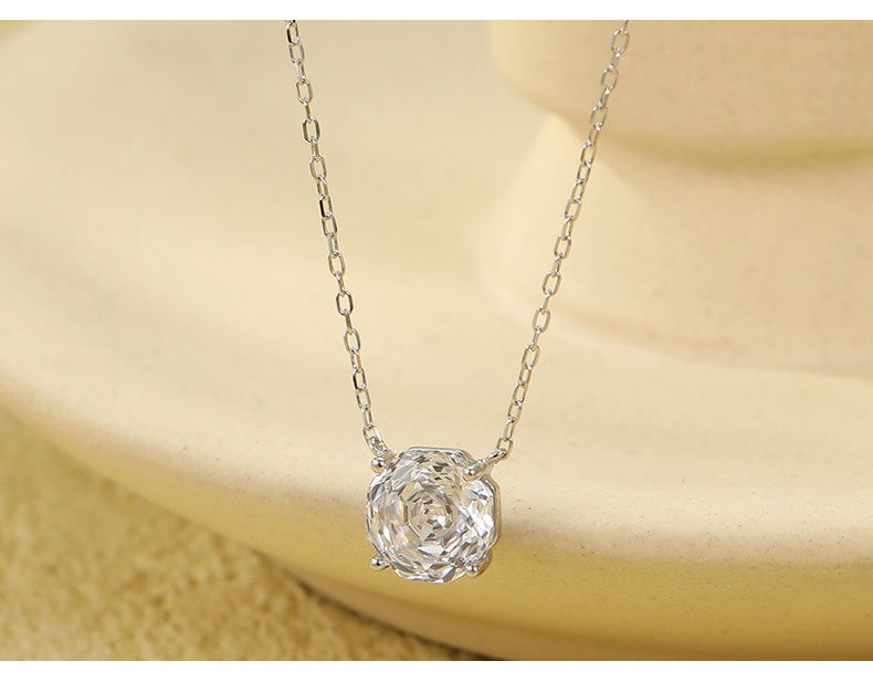 S925 Sterling Silver Rose Zircon Pendant Necklace