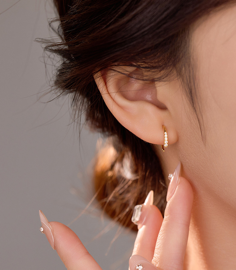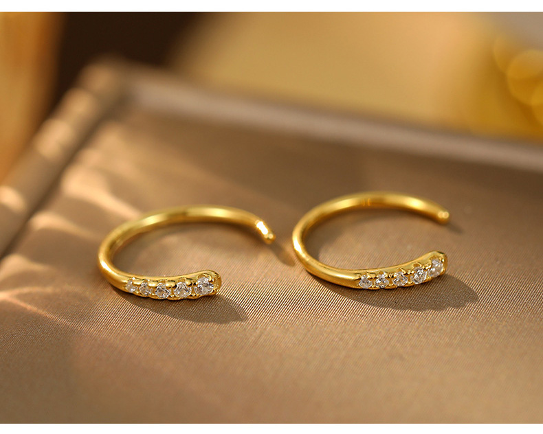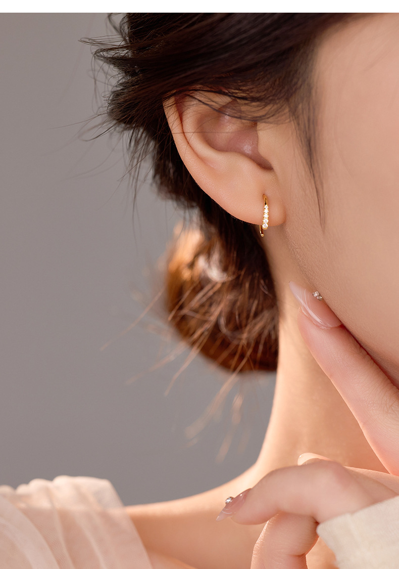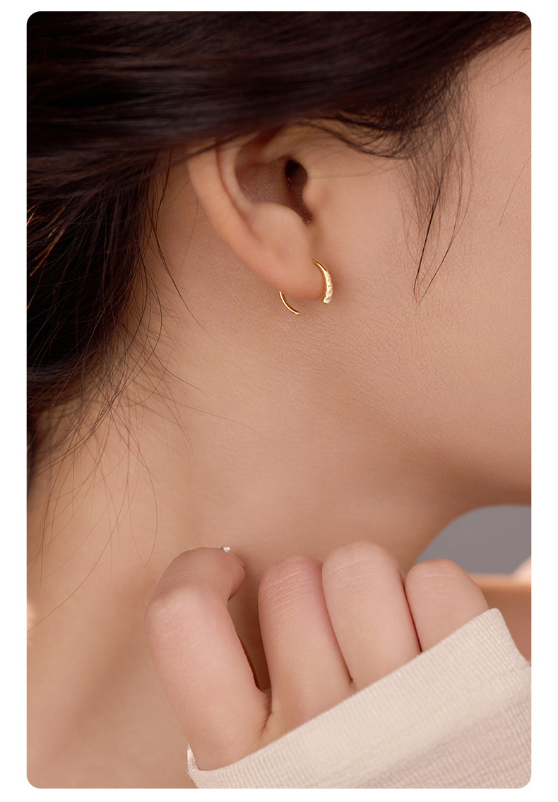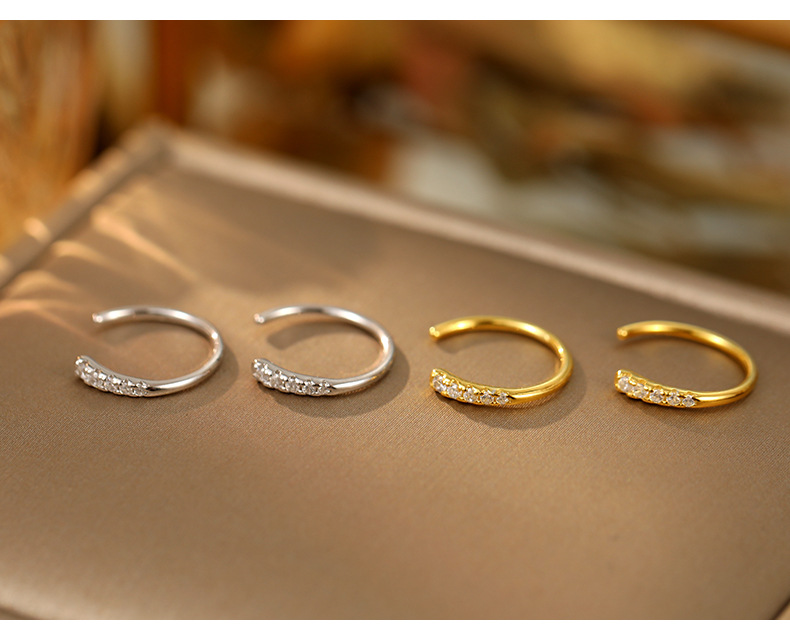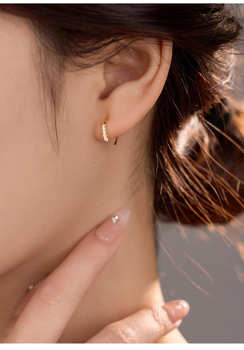 S925 Sterling Silver C-Shaped Circle Earrings with Sparkling Zirconia