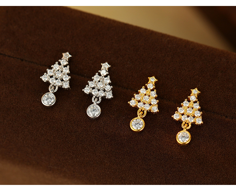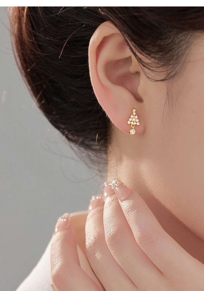 S925 Sterling Silver Christmas Tree Stud Earrings