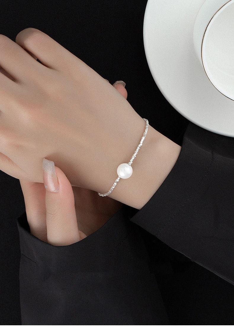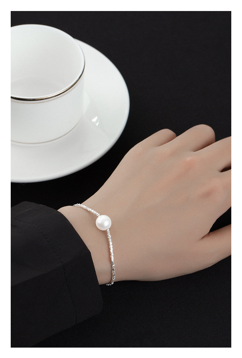 S925 Sterling Silver Crushed Silver Pearl Bracelet
