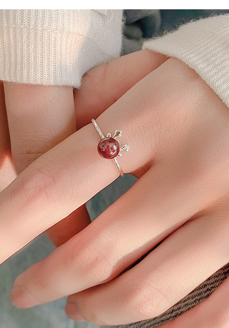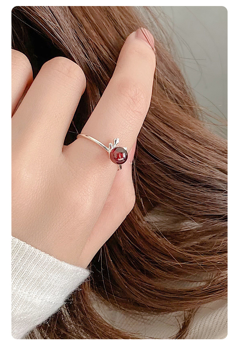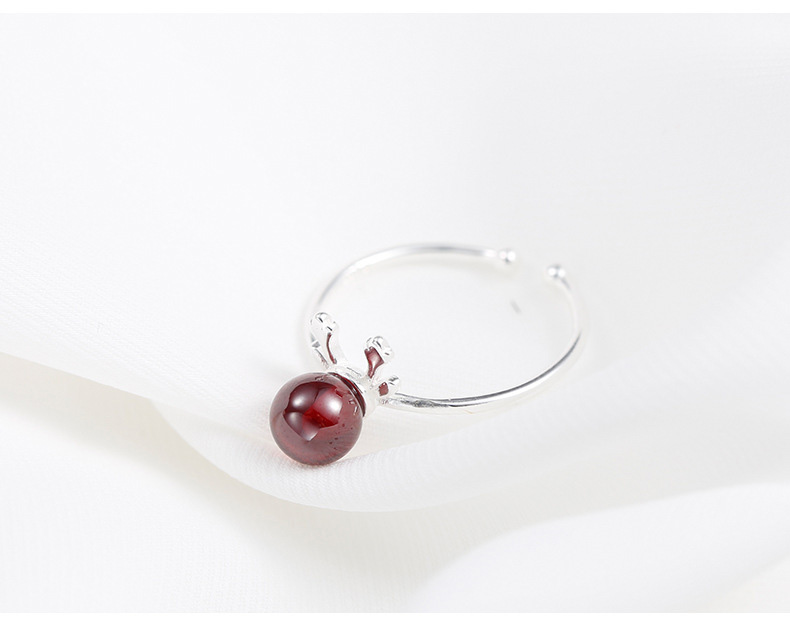 S925 Sterling Silver Deer Antler Garnet Ring