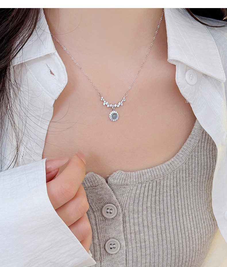 S925 Sterling Silver Diamond-Accented Blue Gemstone Pendant Necklace