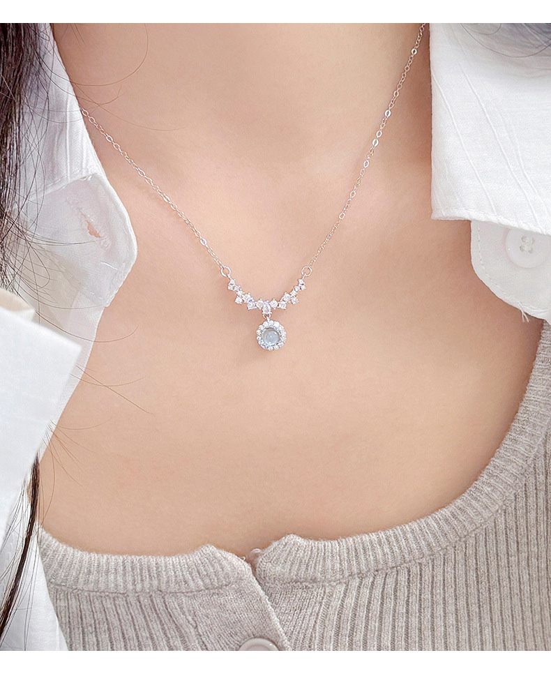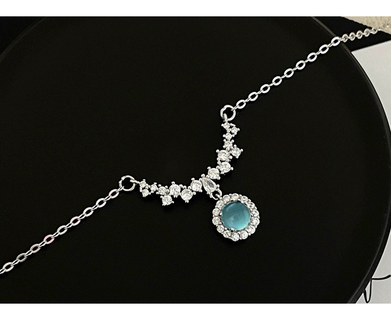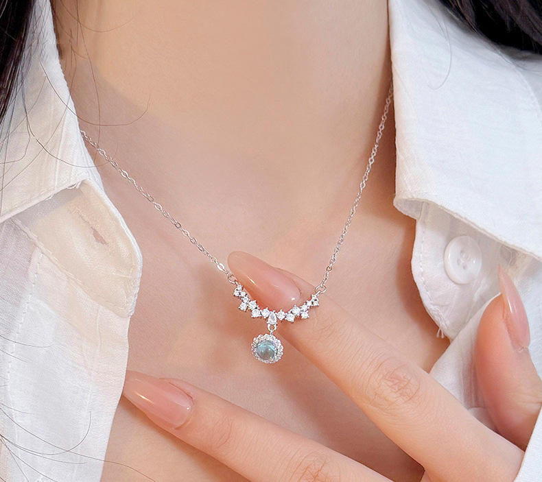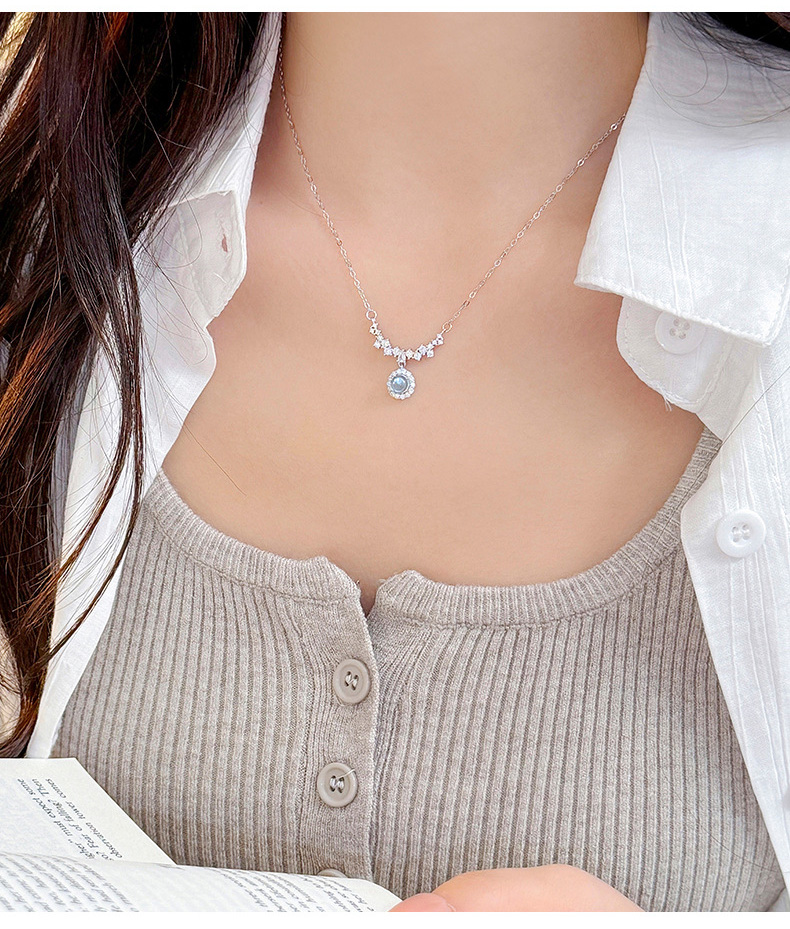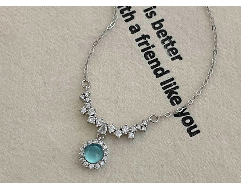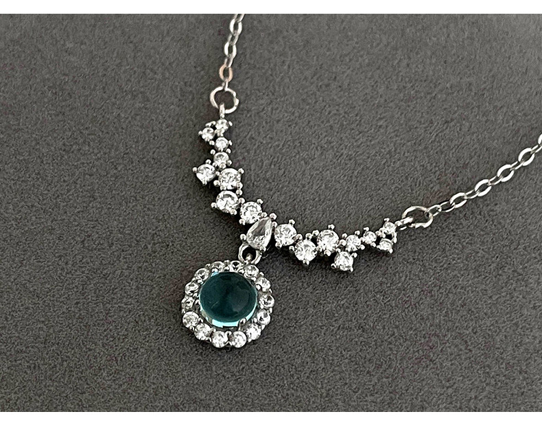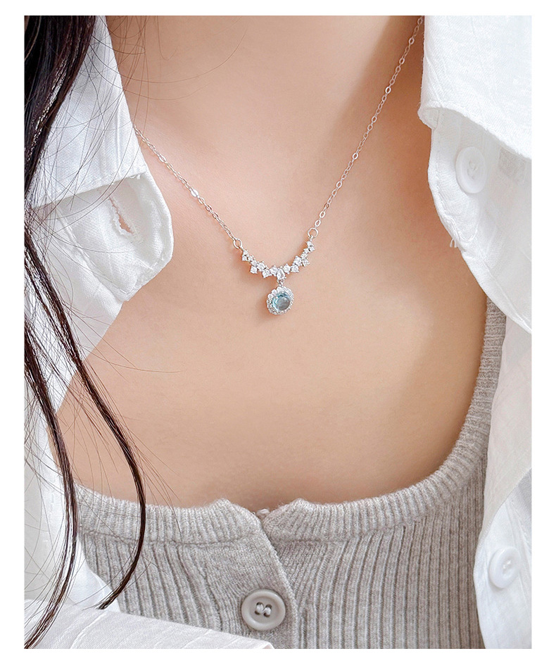 S925 Sterling Silver Diamond-Accented Blue Gemstone Pendant Necklace