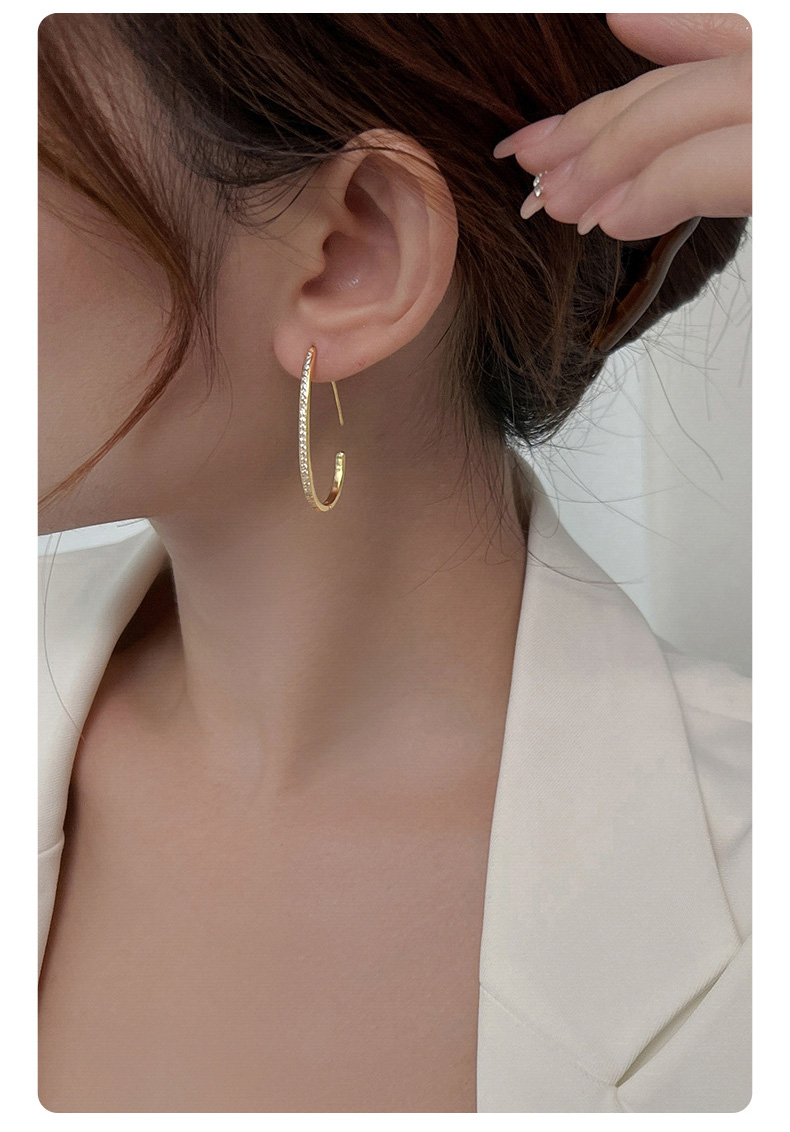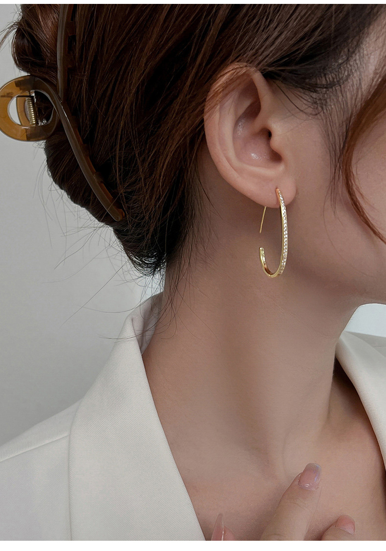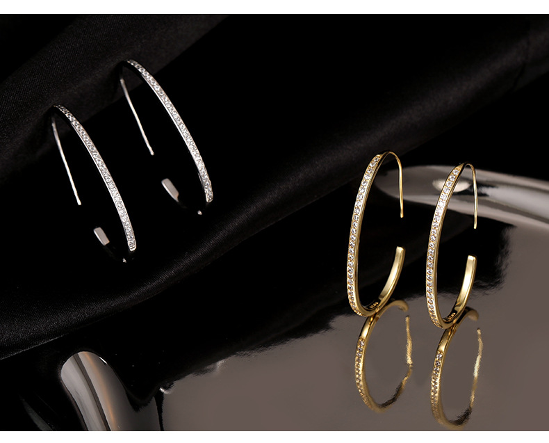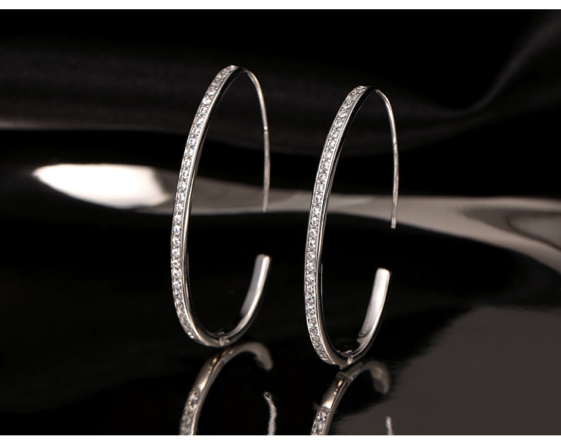 S925 Sterling Silver Diamond-Accented Large Hoop Earrings