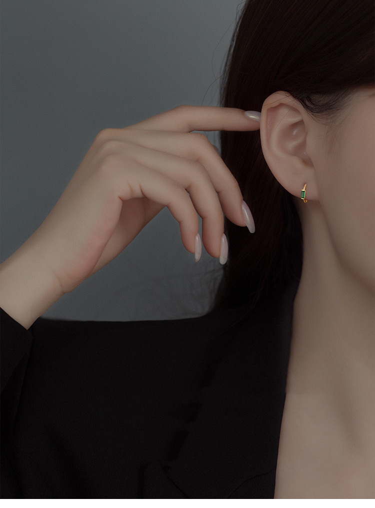 S925 Sterling Silver Geometric Diamond-Accented Circle Ear Threaders