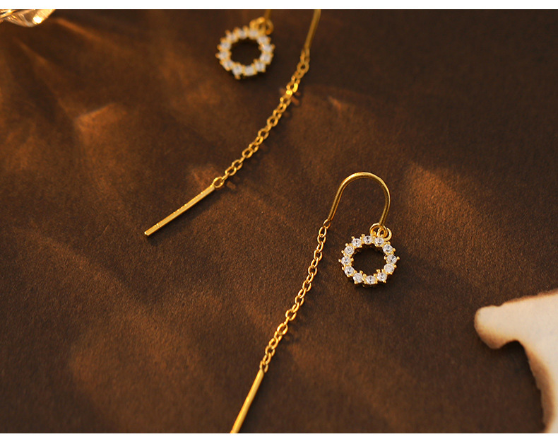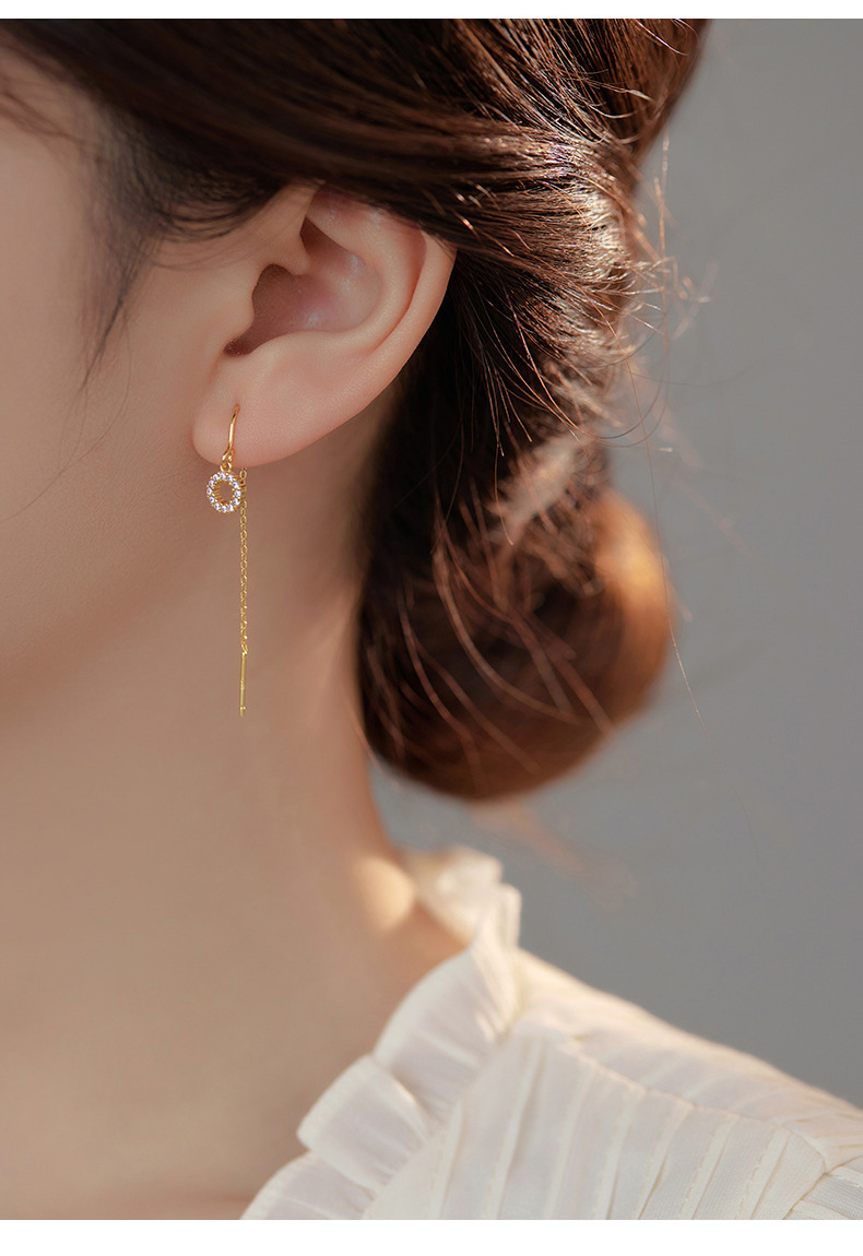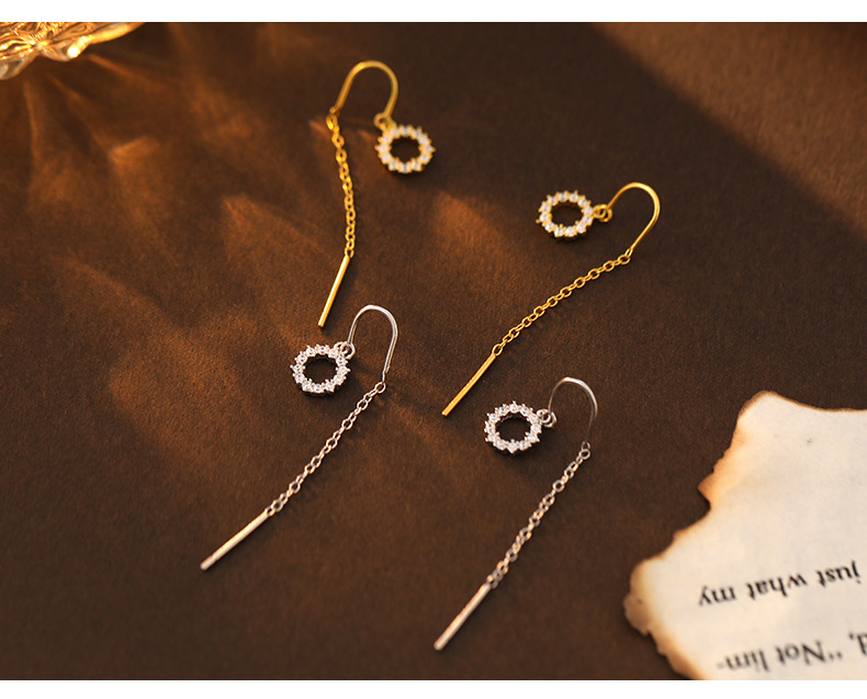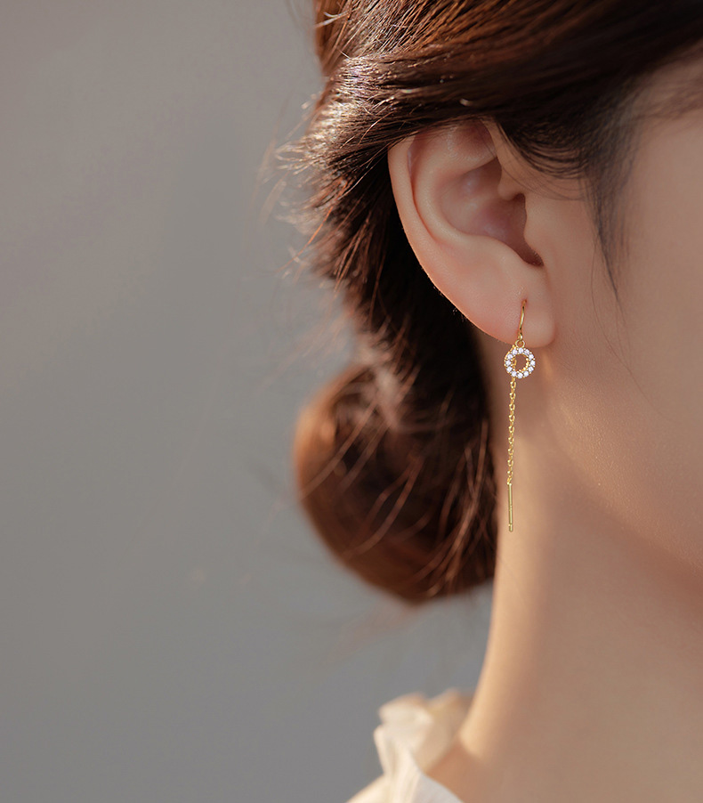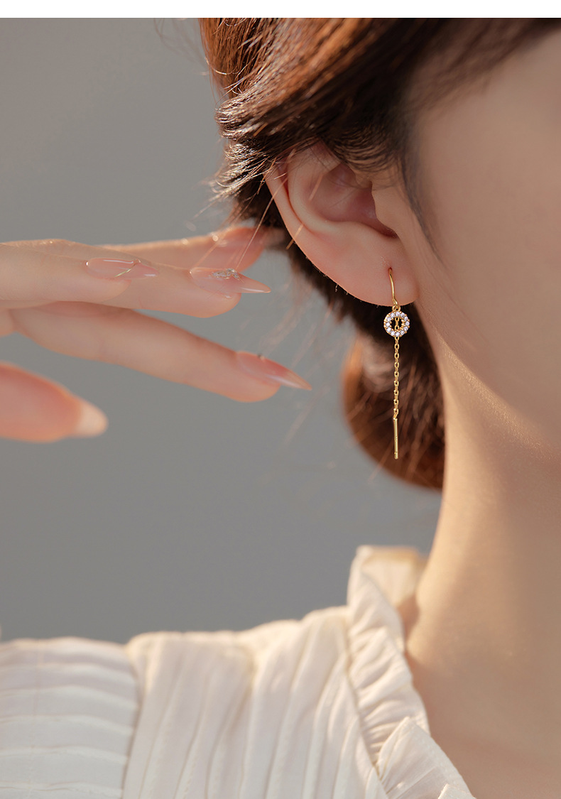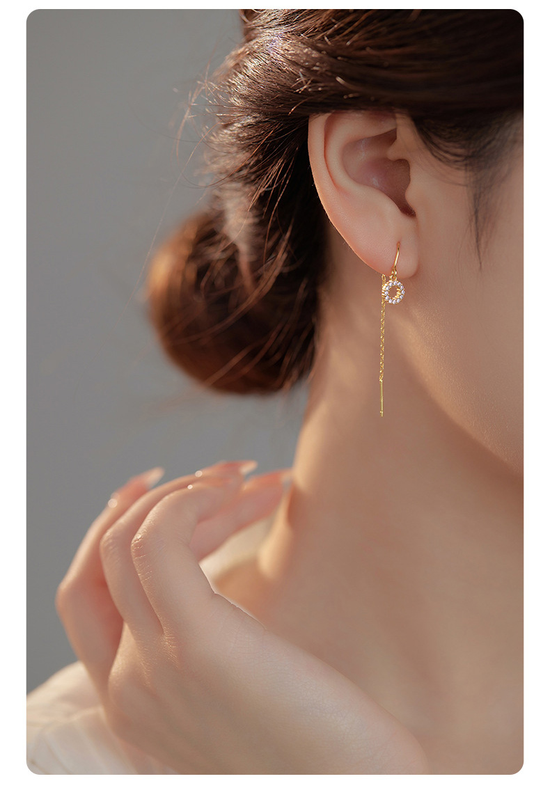 S925 Sterling Silver Geometric Diamond-Accented Circle Ear Threaders
