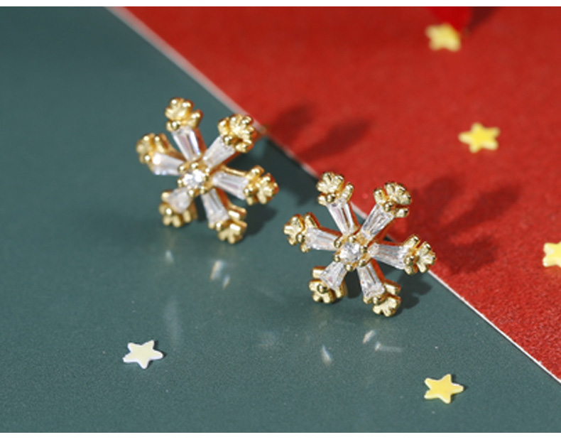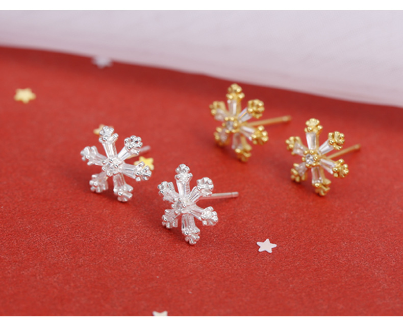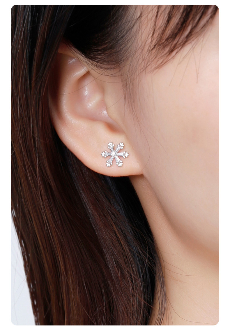 S925 Sterling Silver Ice Crystal Snowflake Stud Earrings