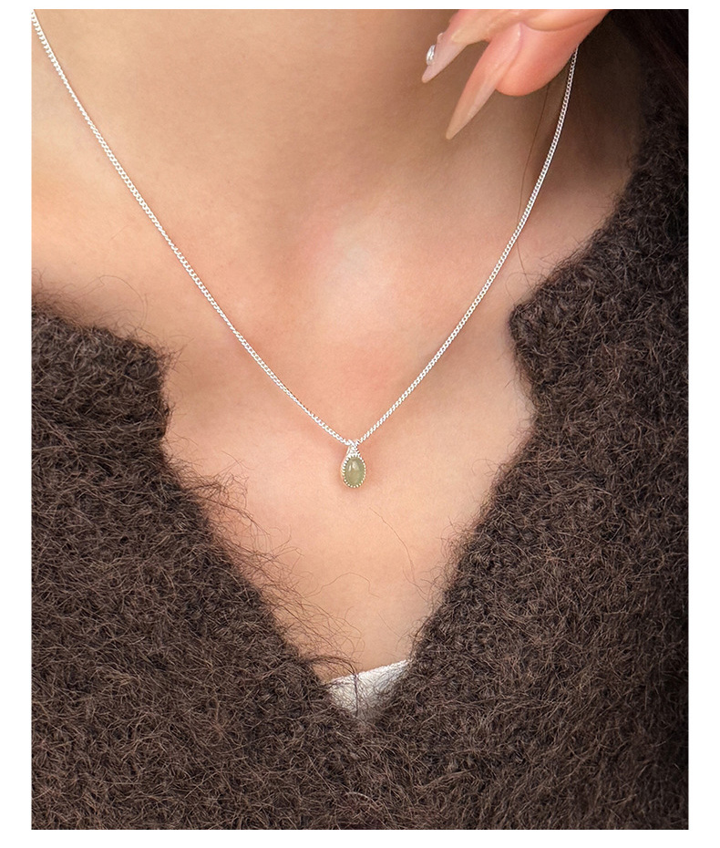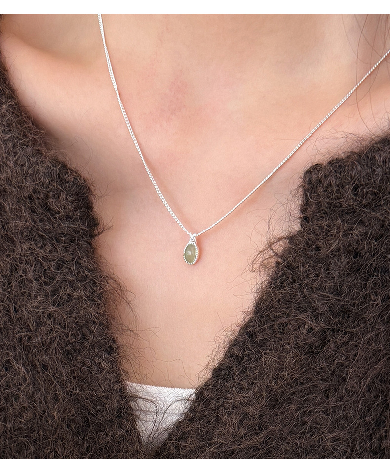 S925 Sterling Silver Jasper Plain Silver Necklace