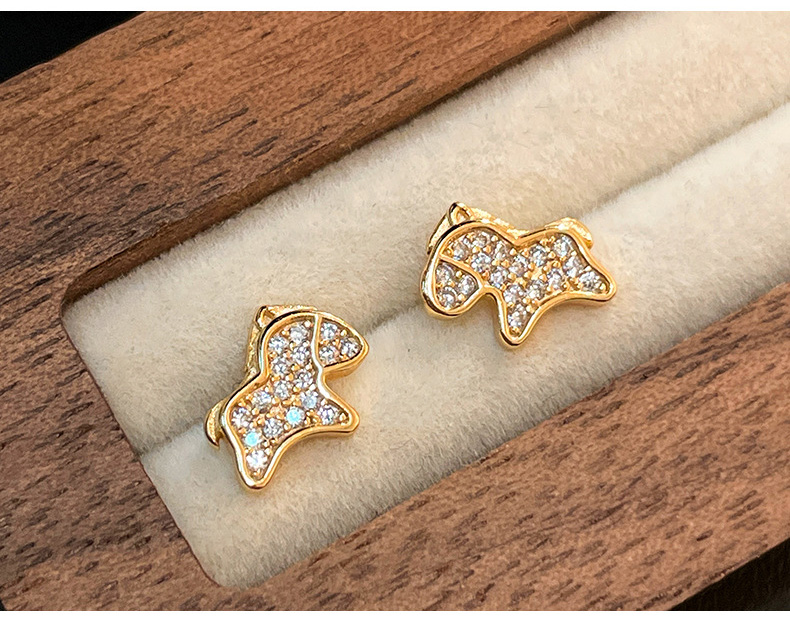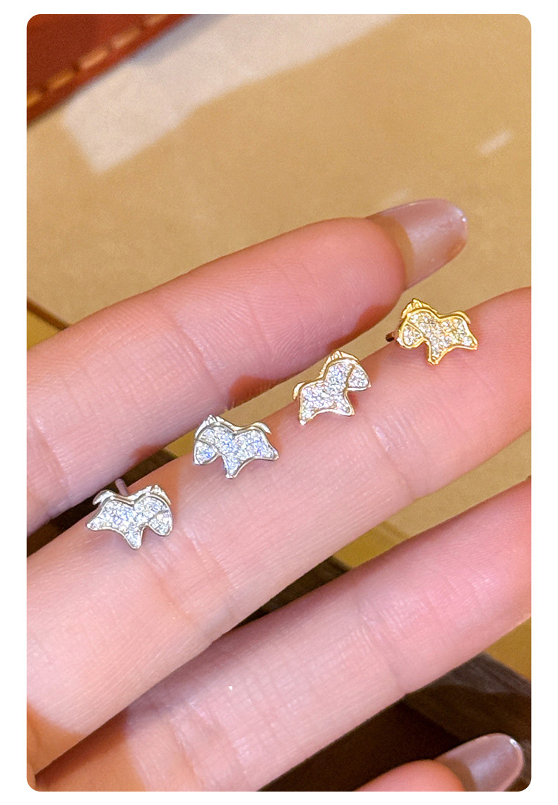 S925 Sterling Silver Lucky Full CZ Pony Stud Earrings