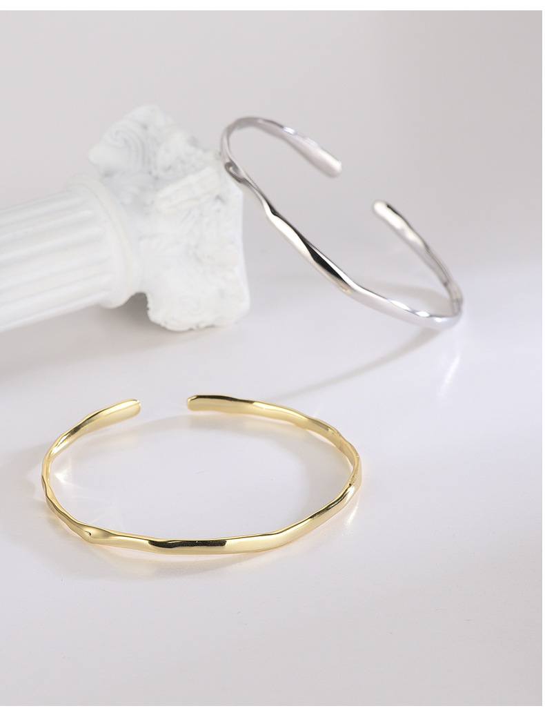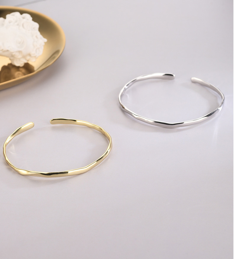 S925 Sterling Silver Minimalist Irregular Slim Bangle