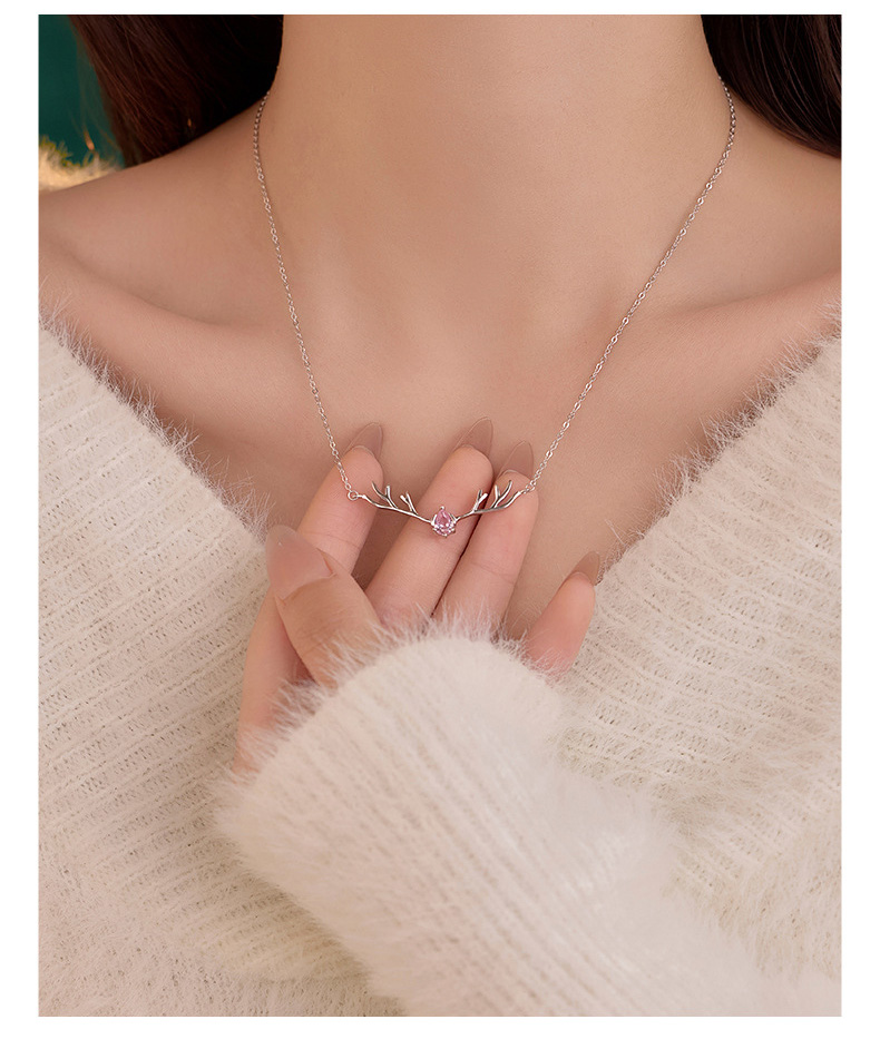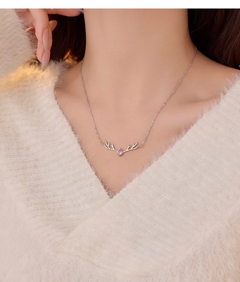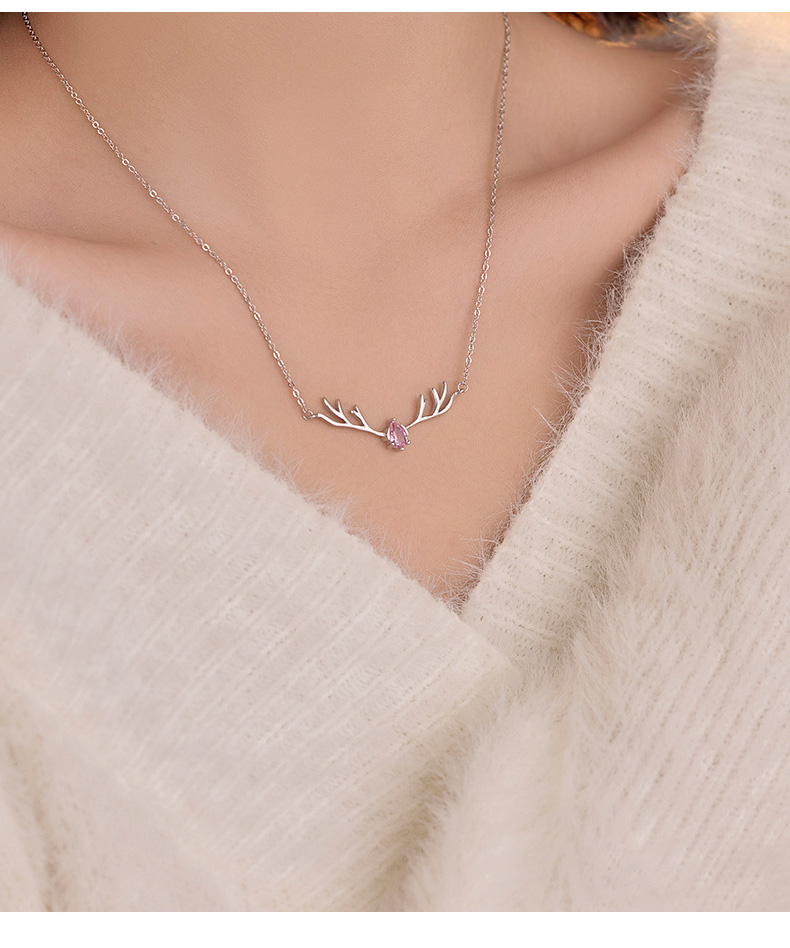 S925 Sterling Silver Reindeer Collarbone Necklace