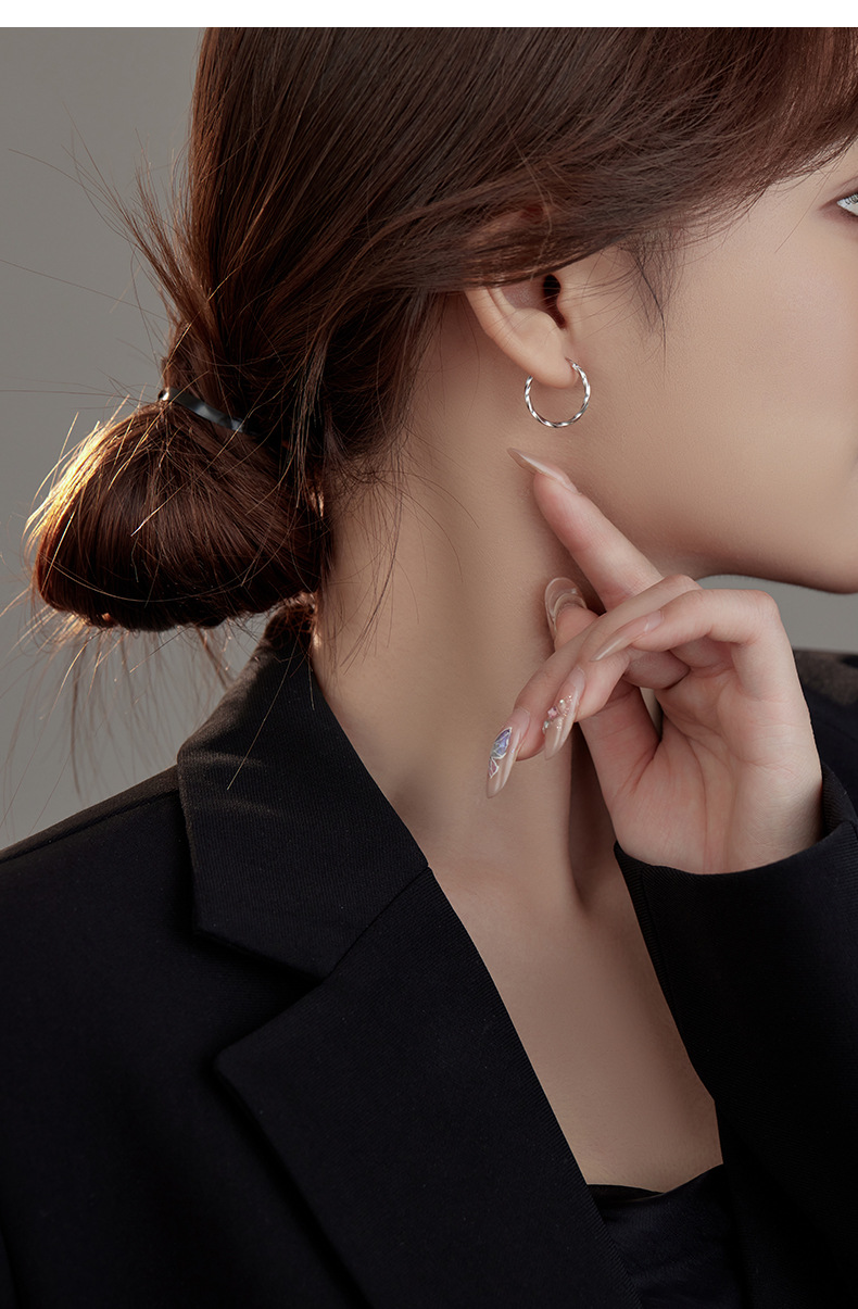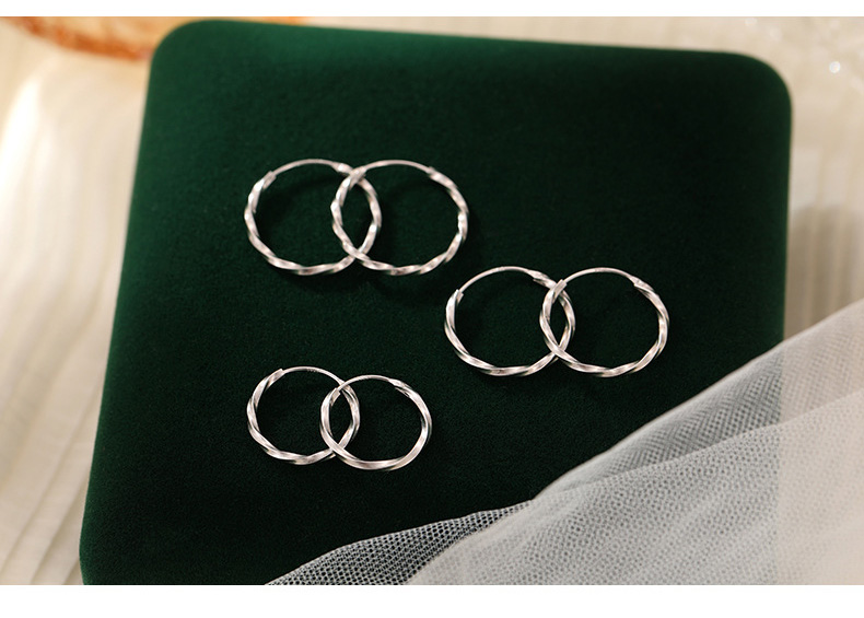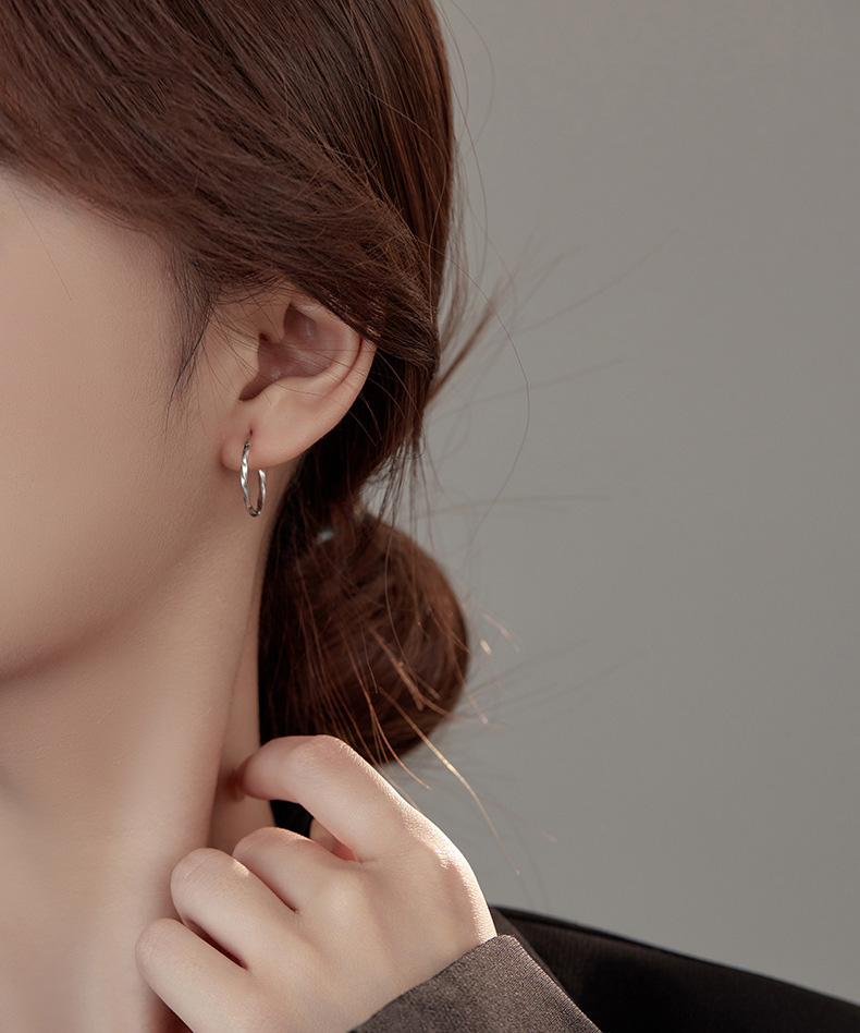 S925 Sterling Silver Ripple Wave Hoop Earrings