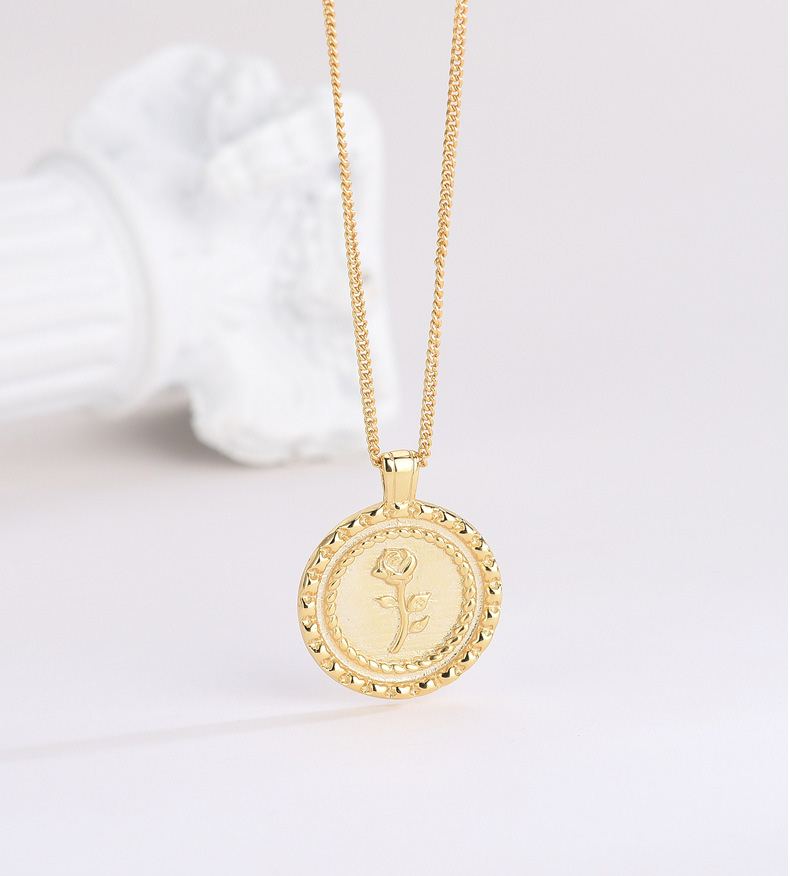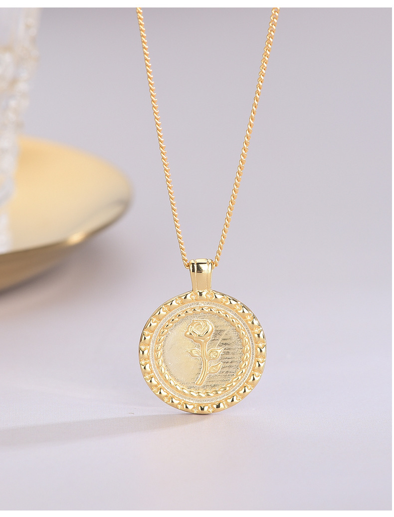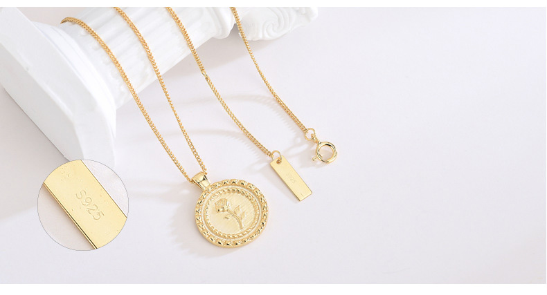 S925 Sterling Silver Round Rose Pendant Necklace