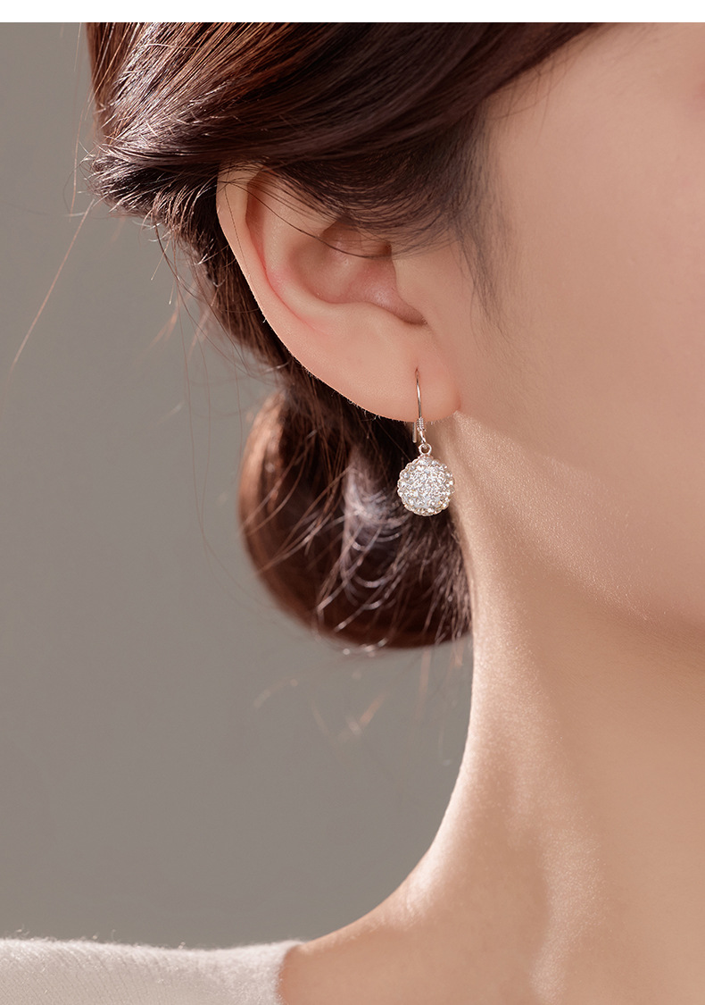 S925 Sterling Silver Shamballa Ball Ear Hooks with Full Cubic Zirconia