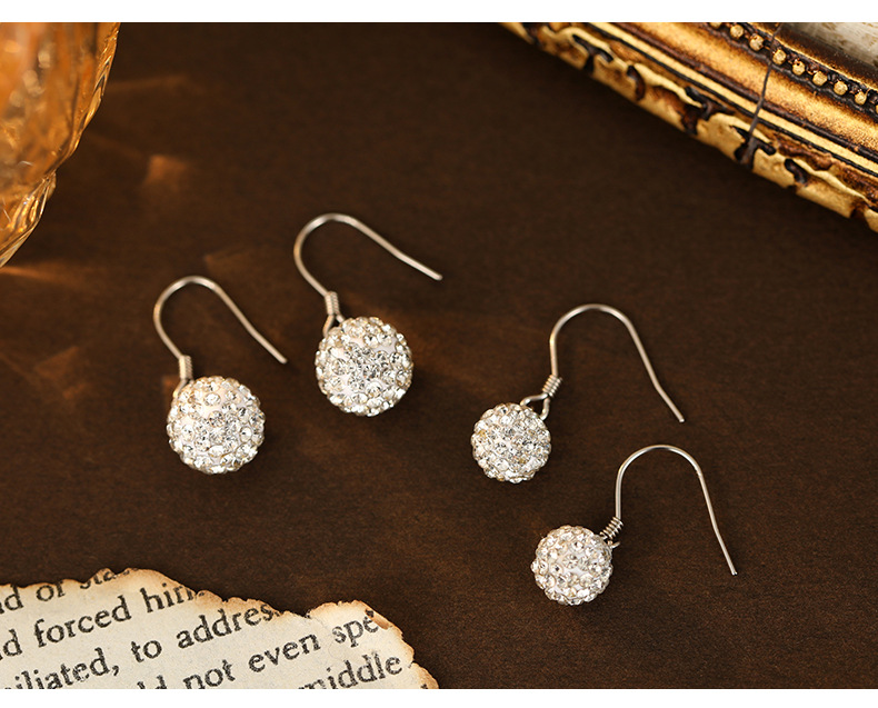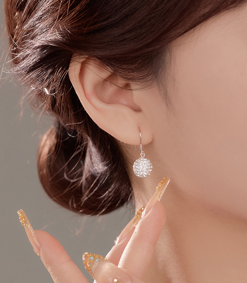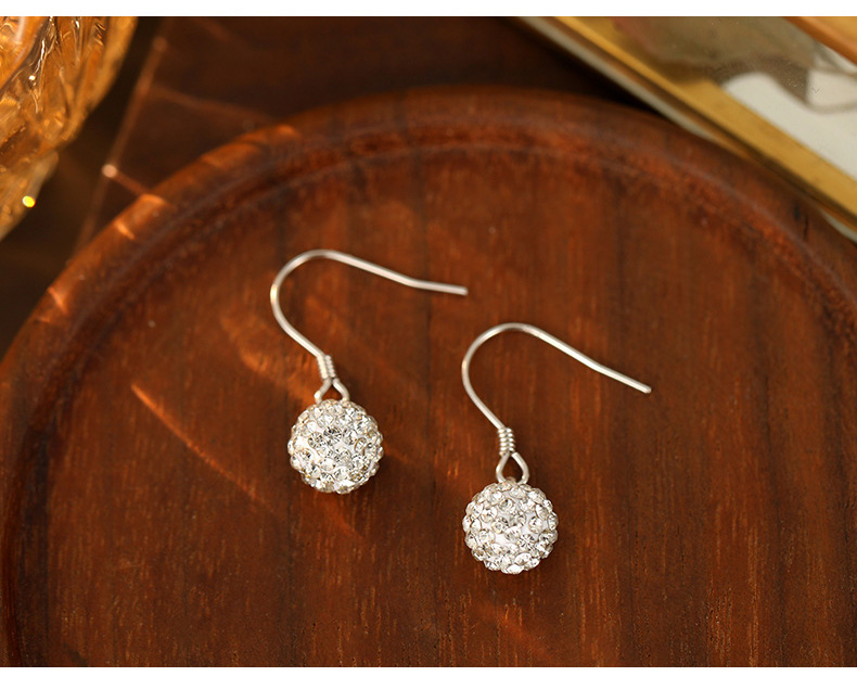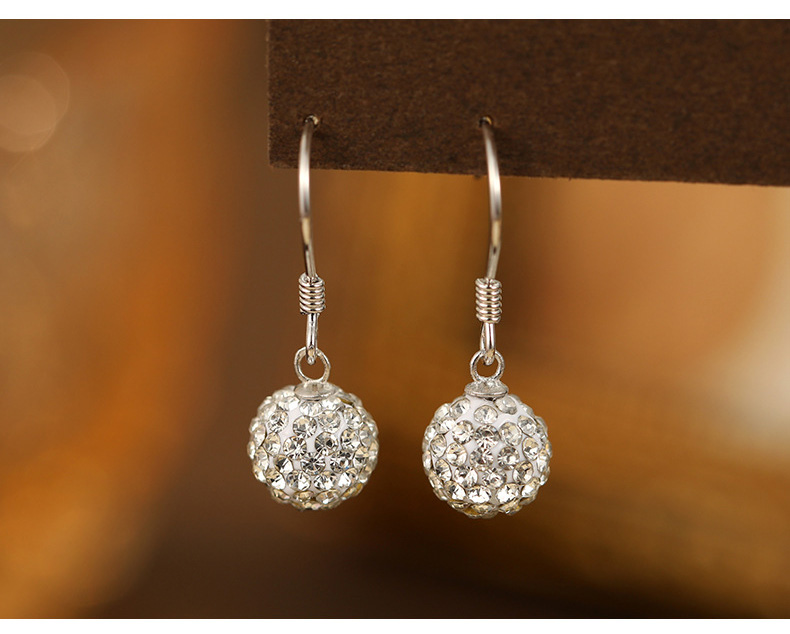S925 Sterling Silver Shamballa Ball Ear Hooks with Full Cubic Zirconia