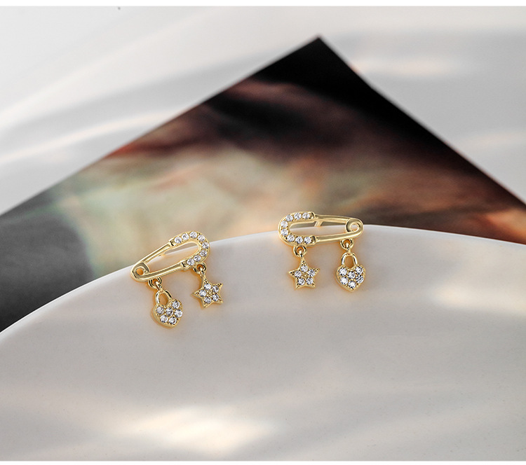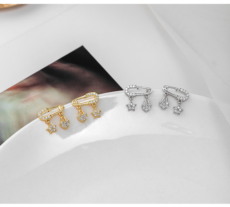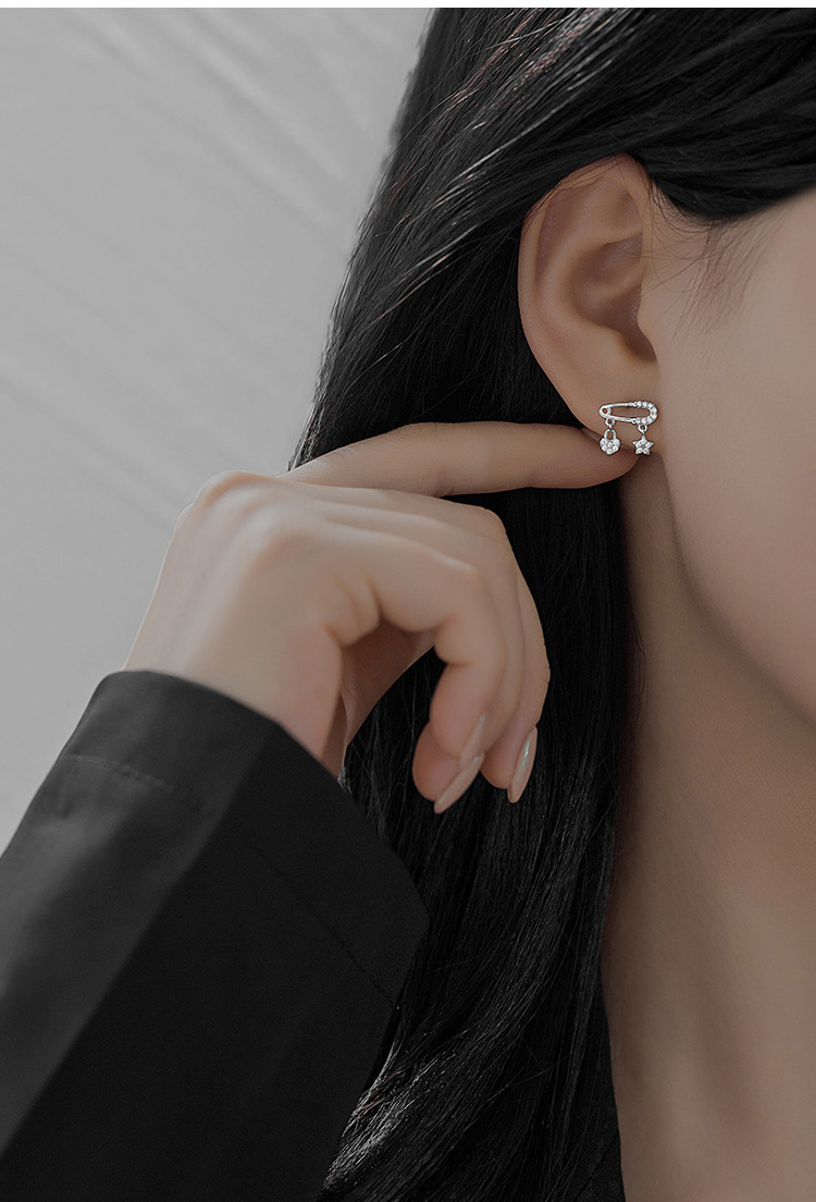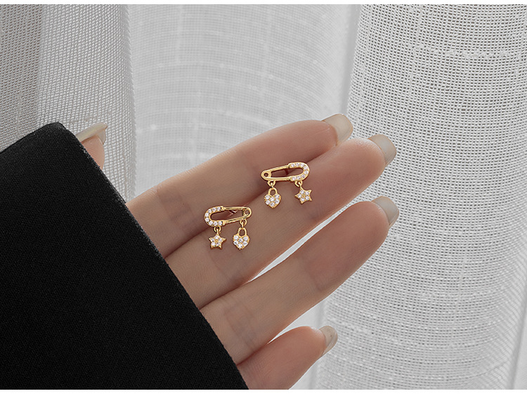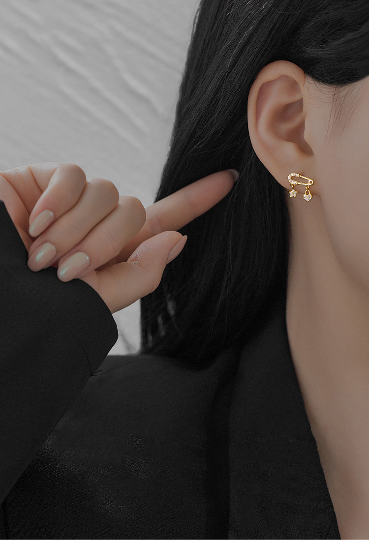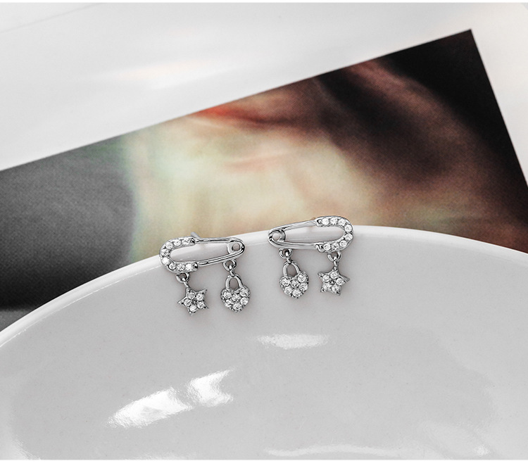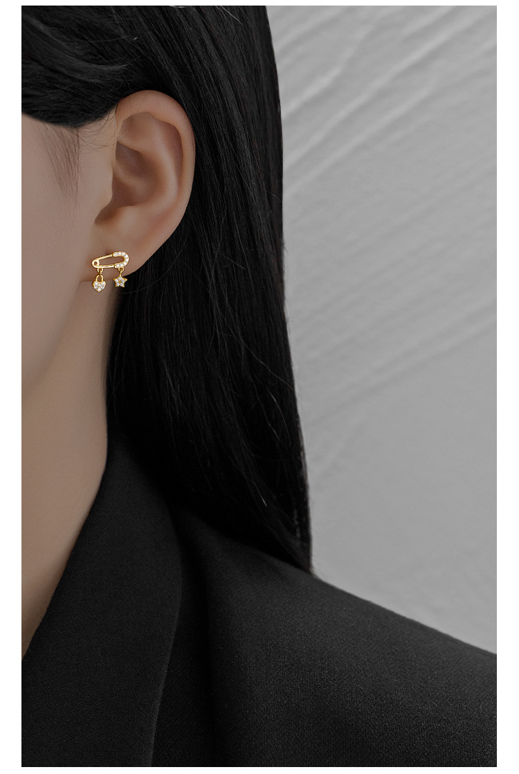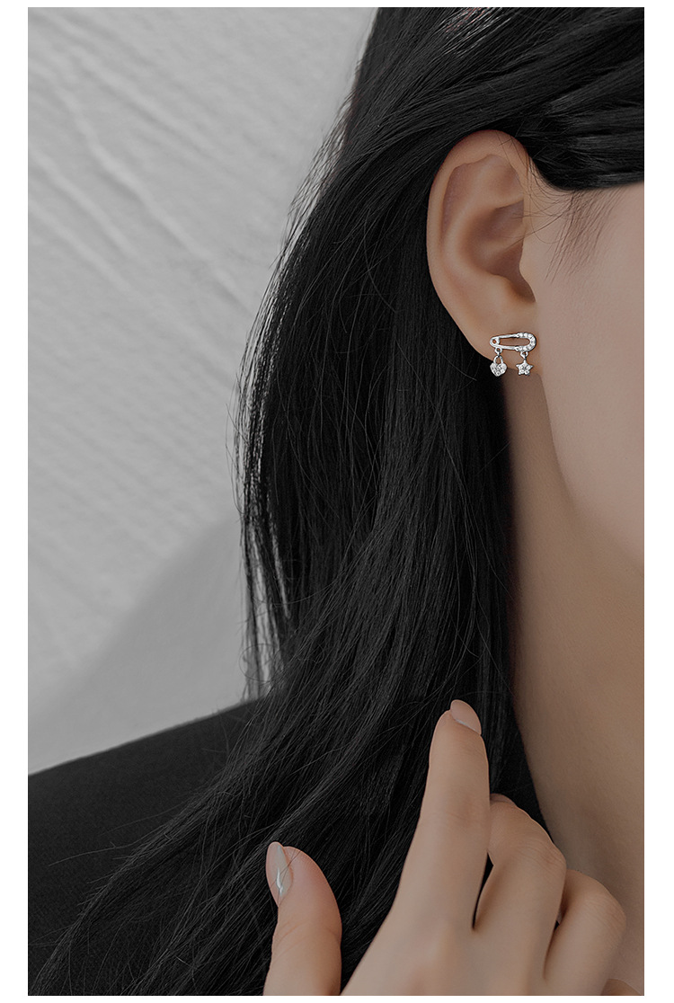 S925 Sterling Silver Star and Heart Ear Pin Stud Earrings