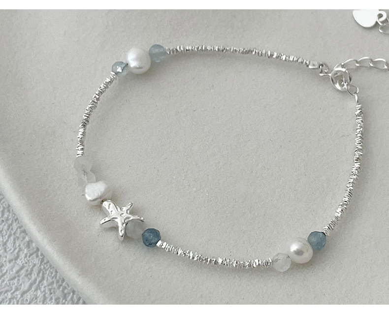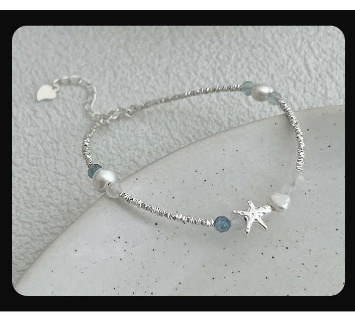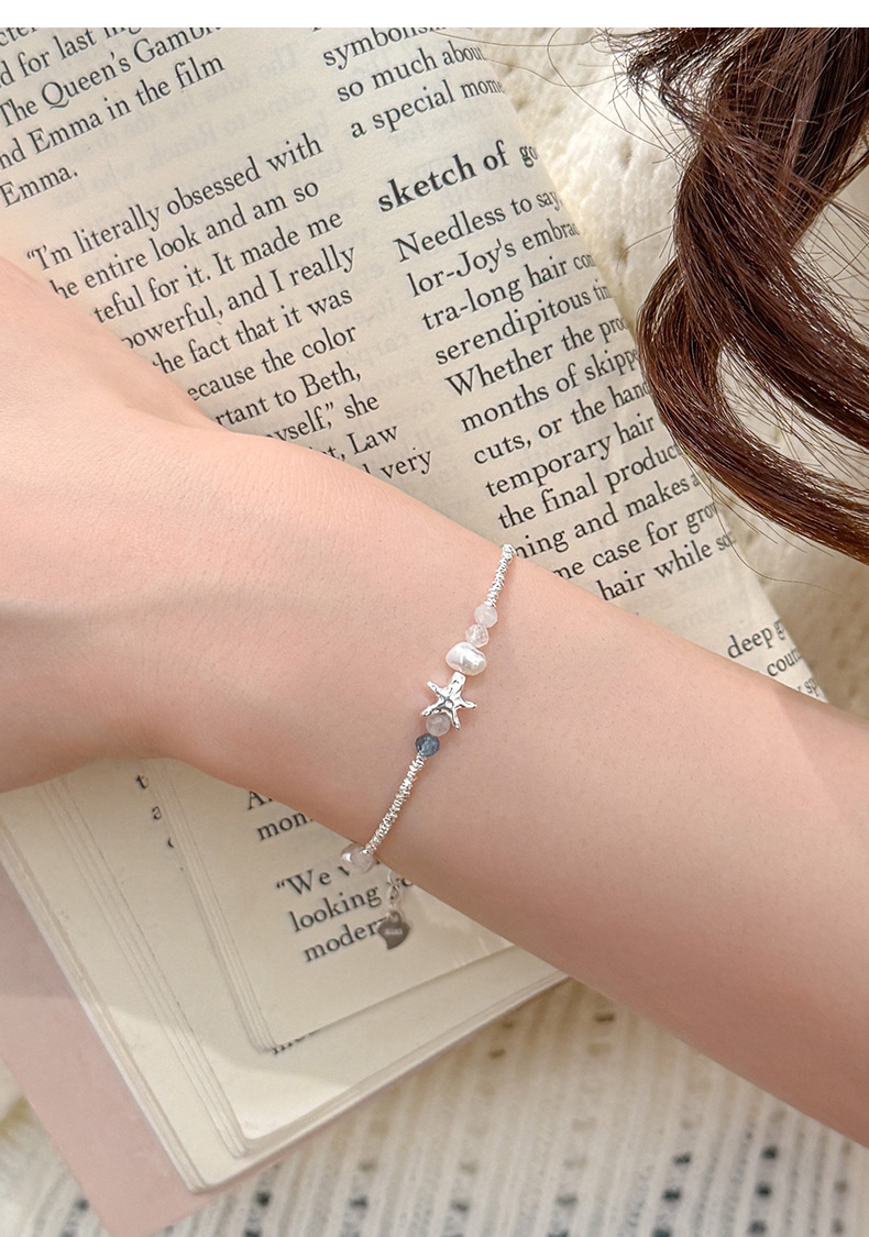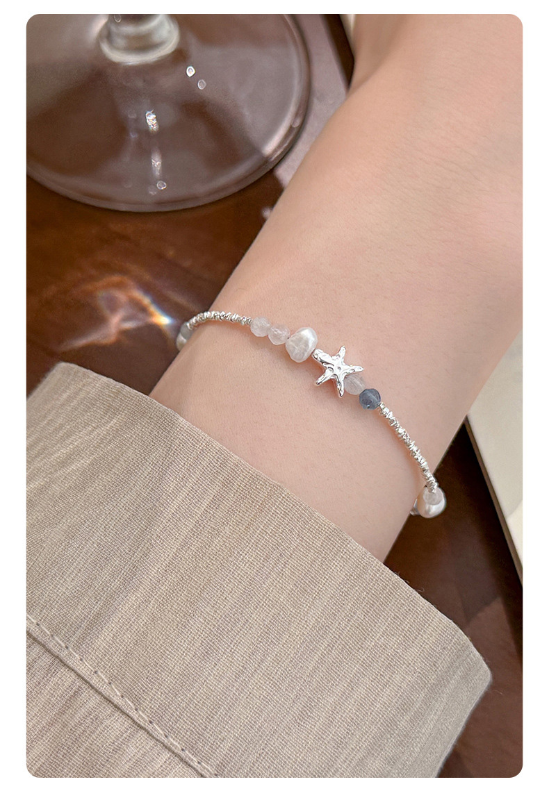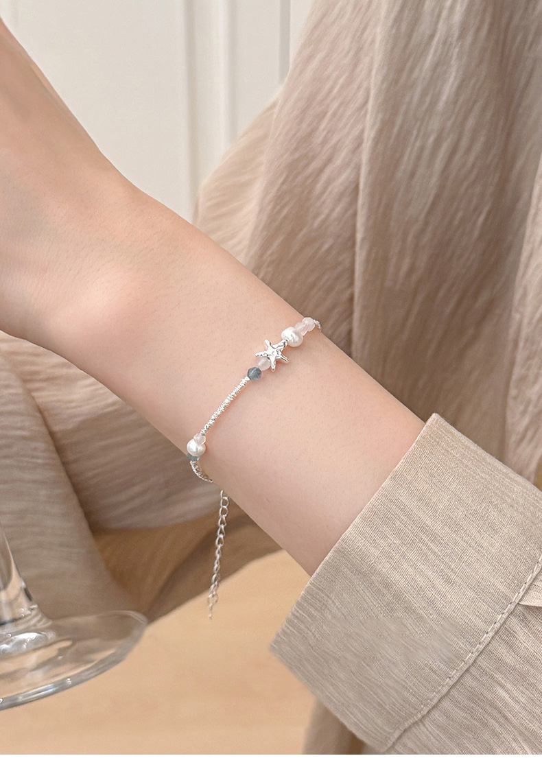 S925 Sterling Silver Summer Starfish Natural Pearl Bracelet