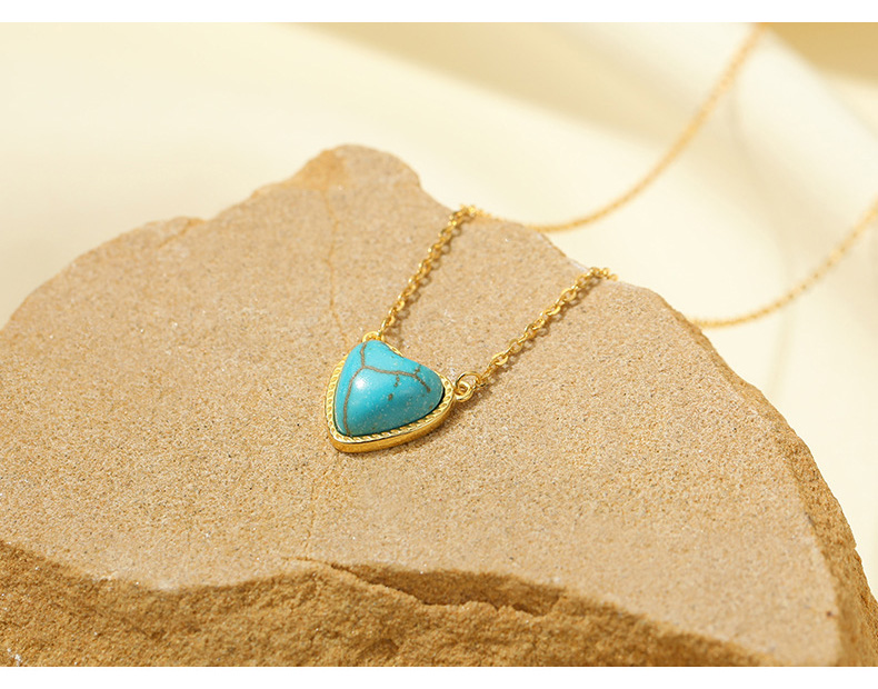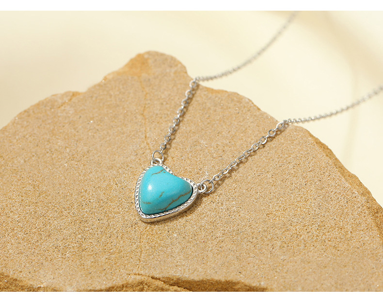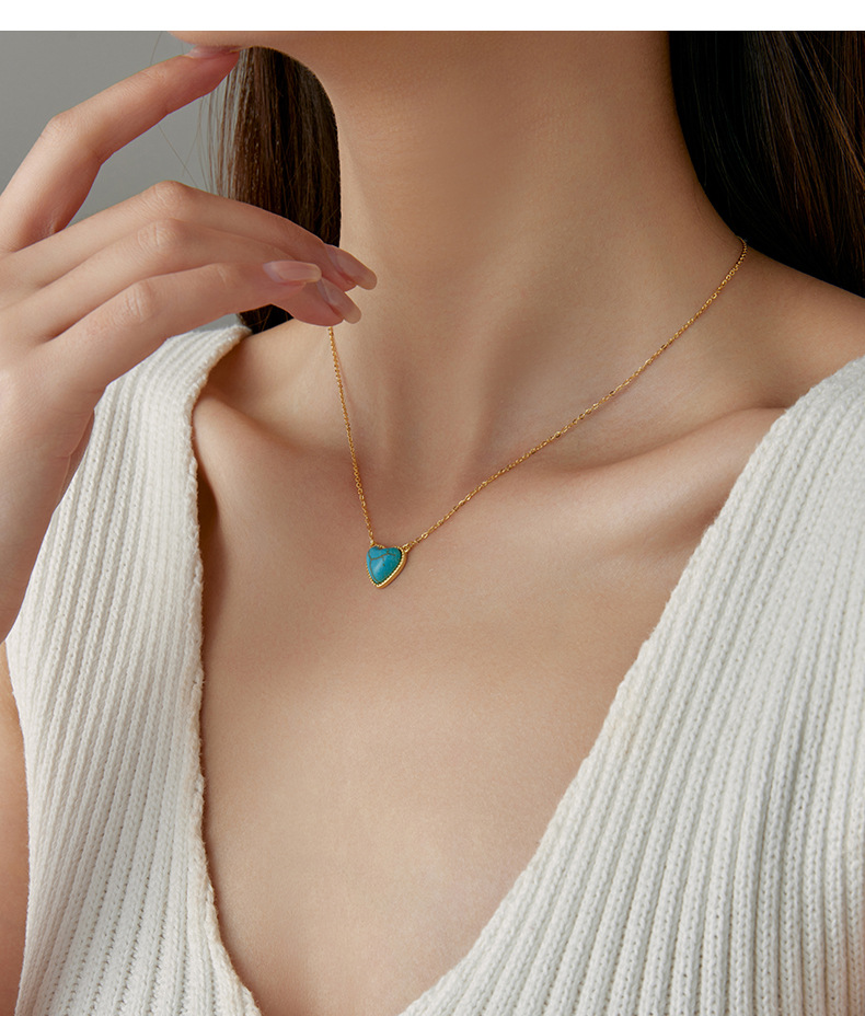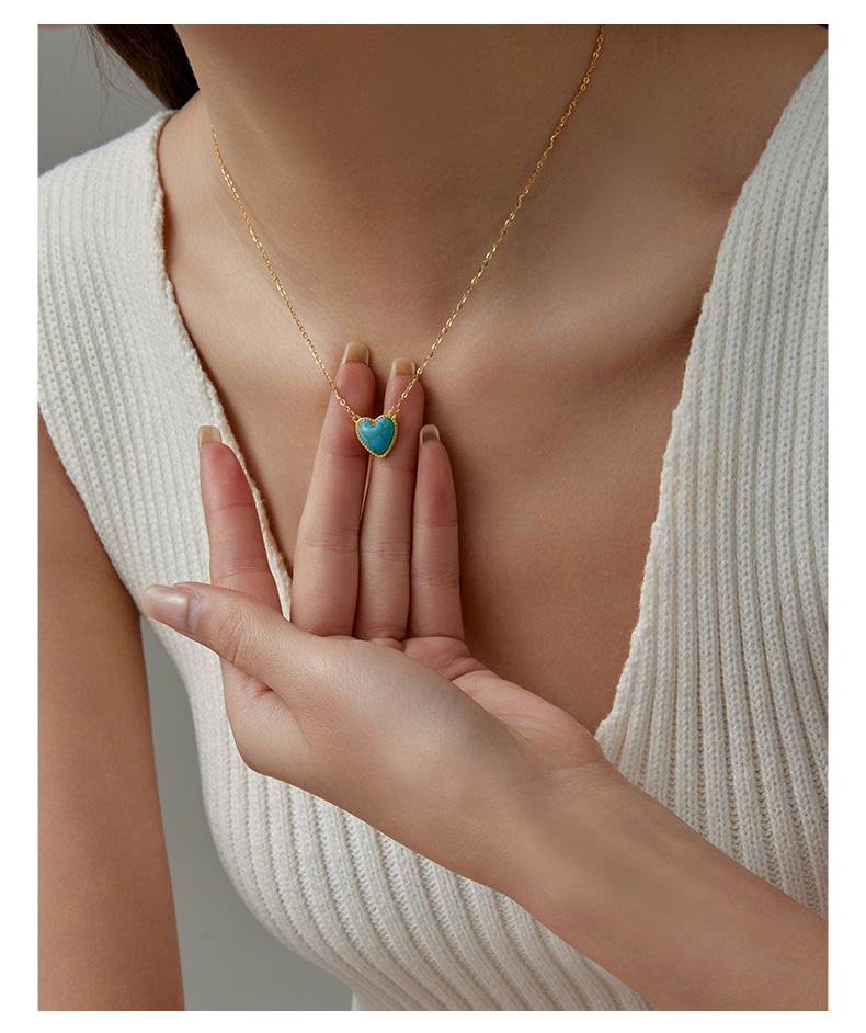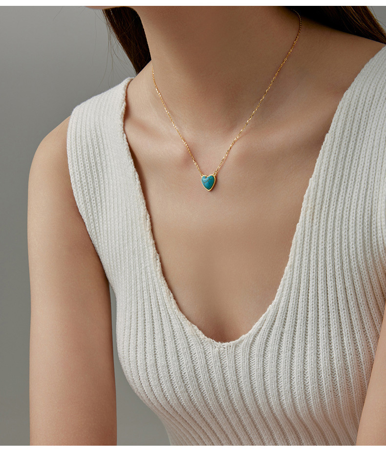 S925 Sterling Silver Turquoise Heart Pendant Necklace