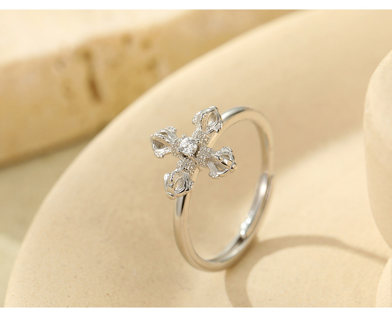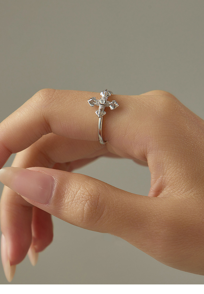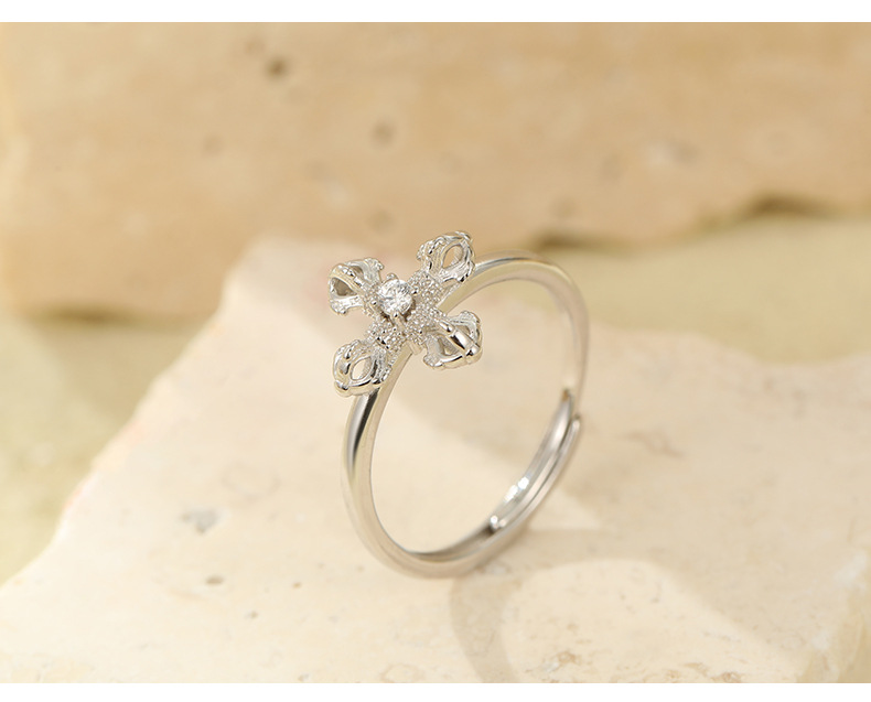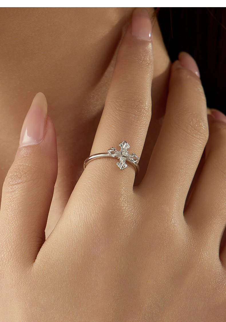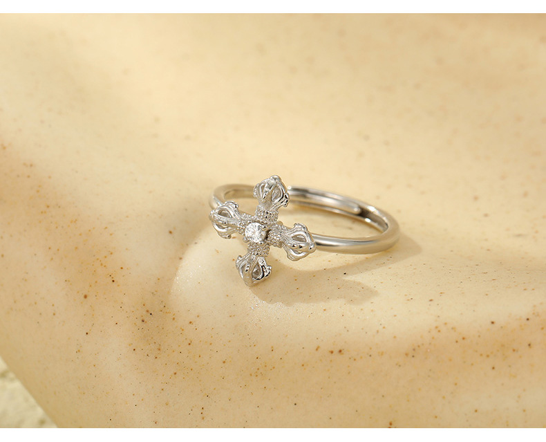S925 Sterling Silver Vajra Cross Ring