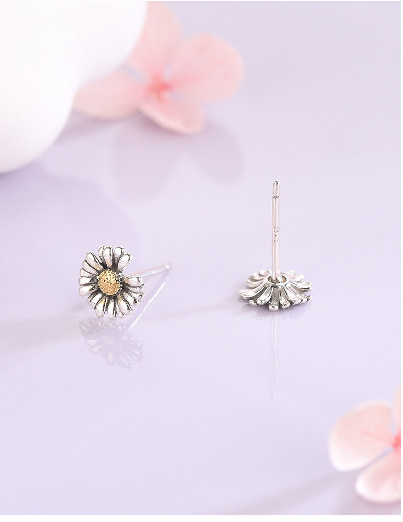 S925 Sterling Silver Vintage Daisy Stud Earrings