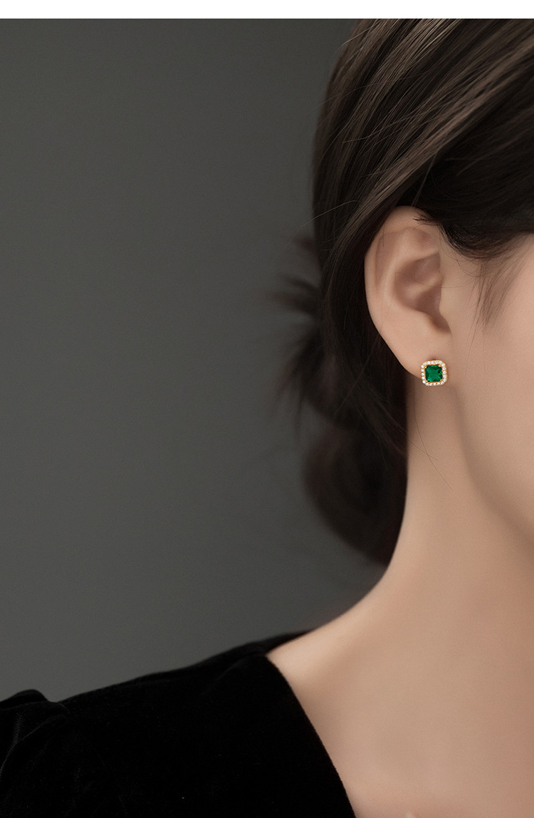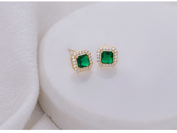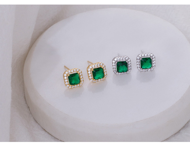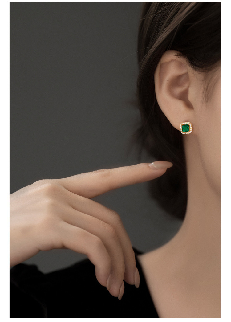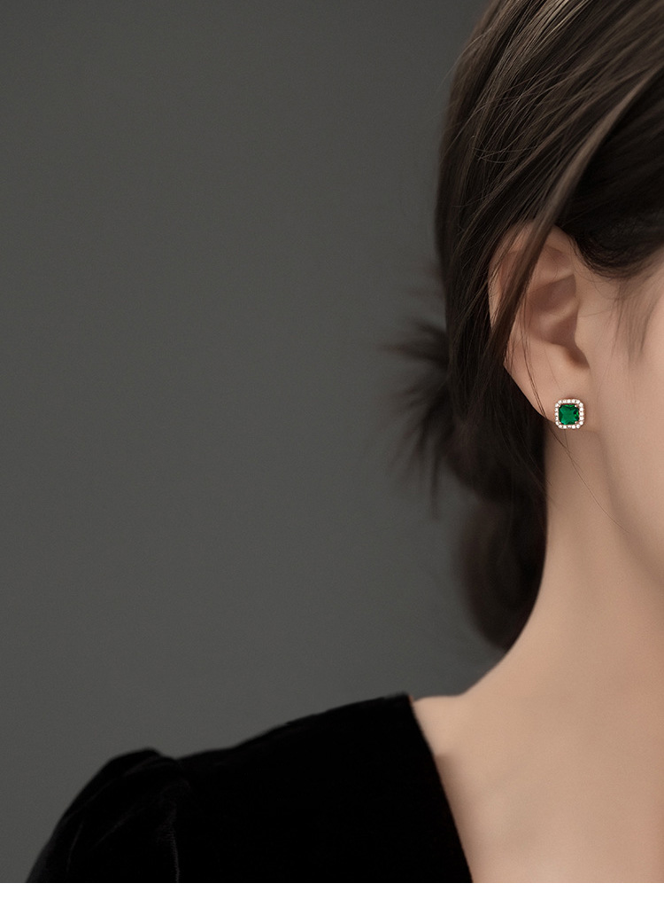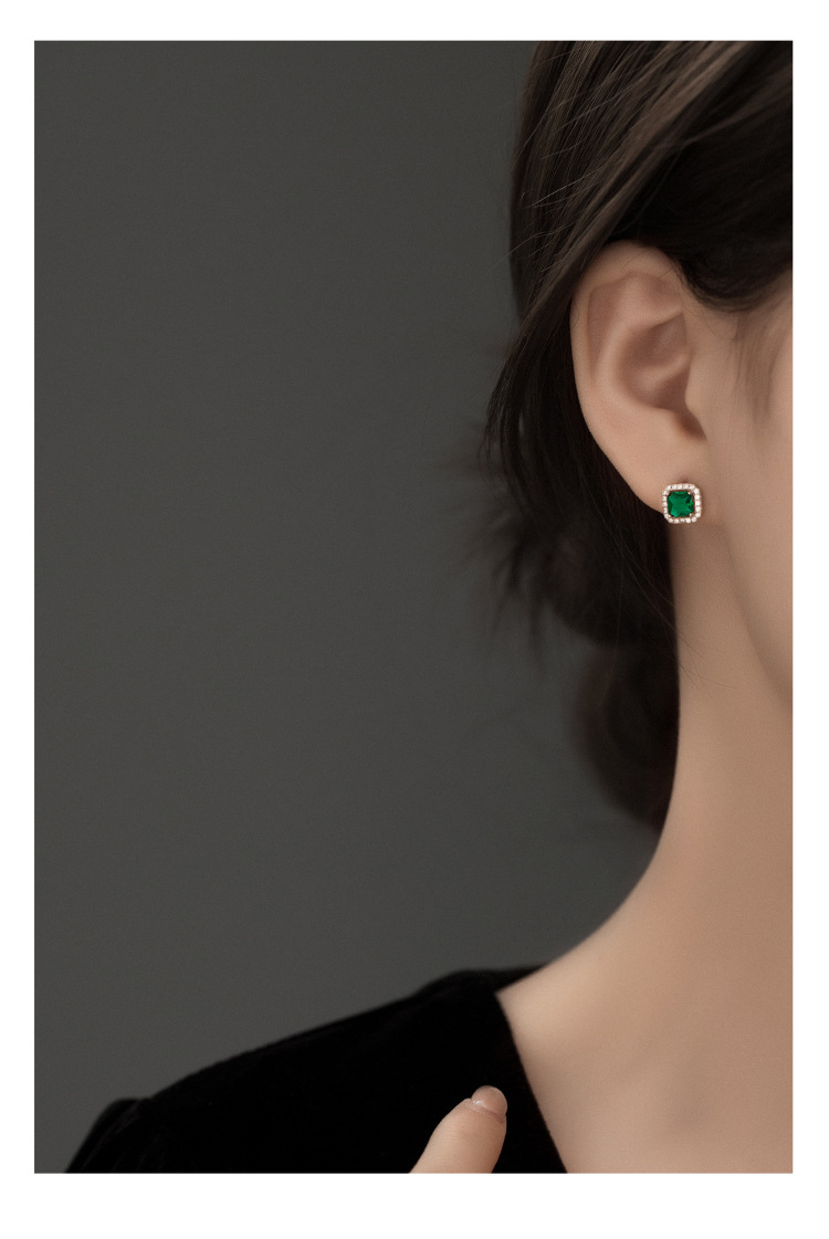 S925 Sterling Silver Vintage Square Emerald Cut Diamond Earrings