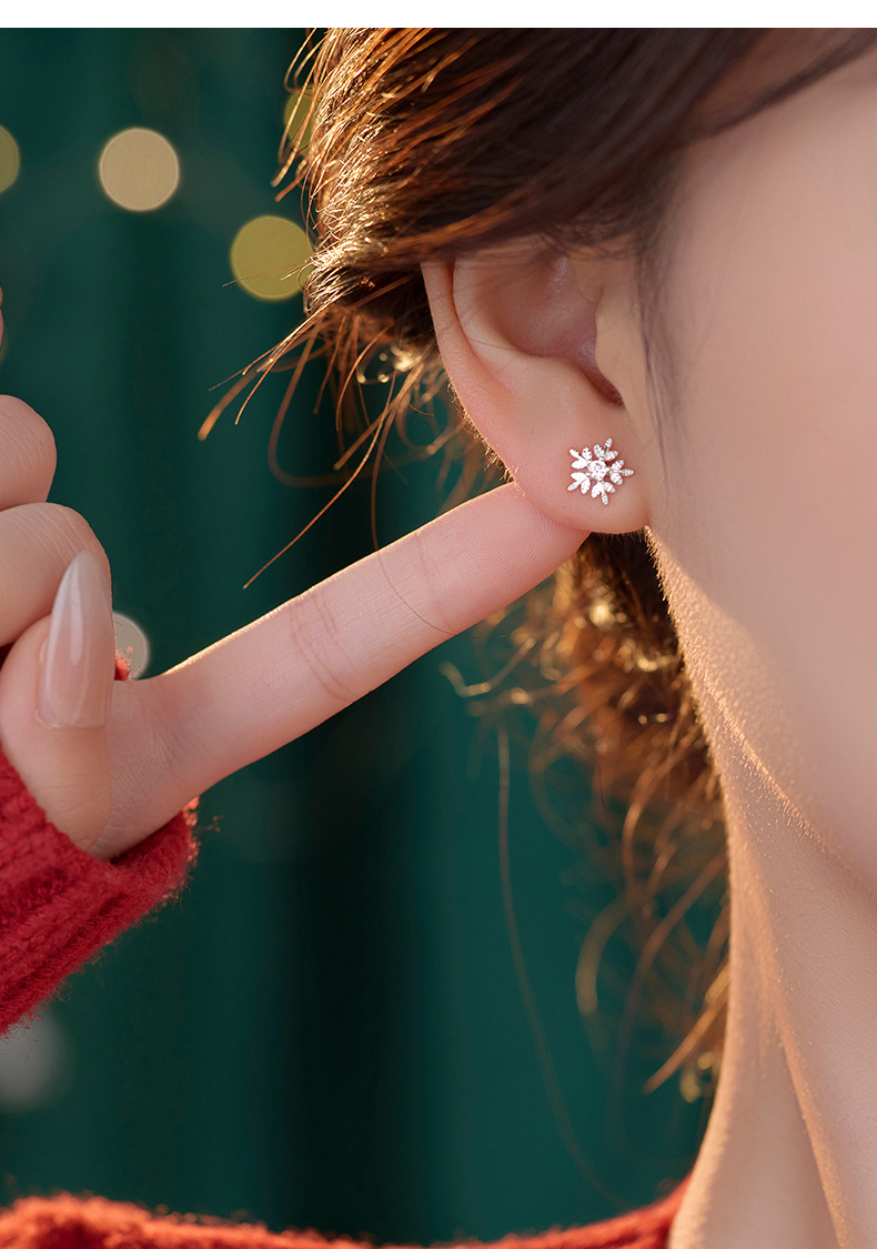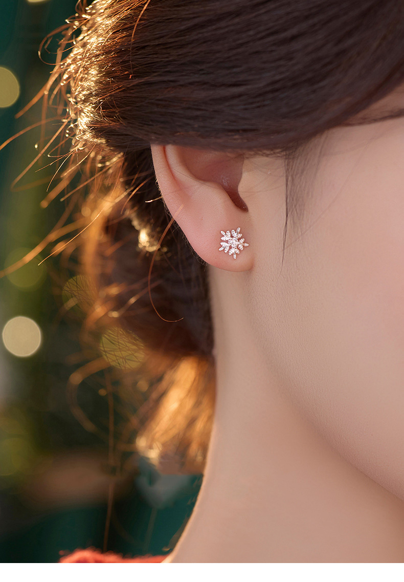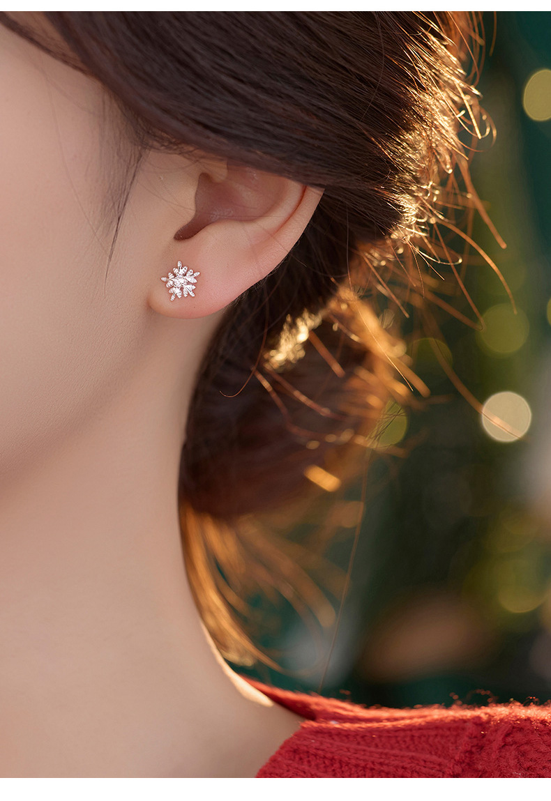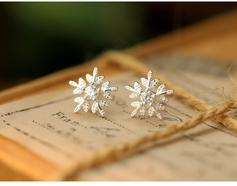 S925 Sterling Silver Snowflake Stud Earrings with Zirconia