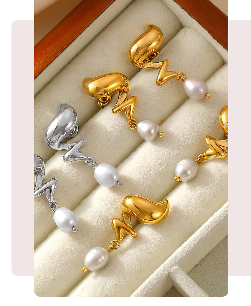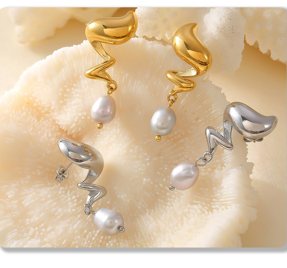 Stainless Steel Spiral Freshwater Pearl Earrings