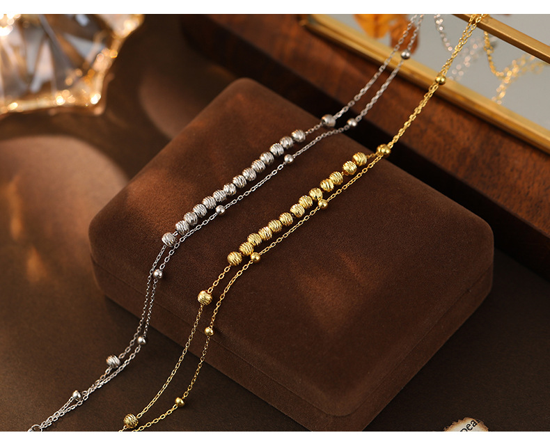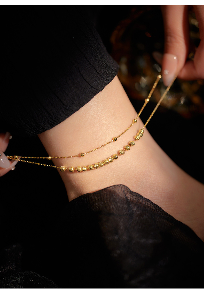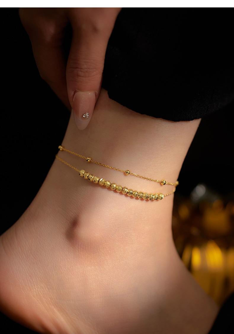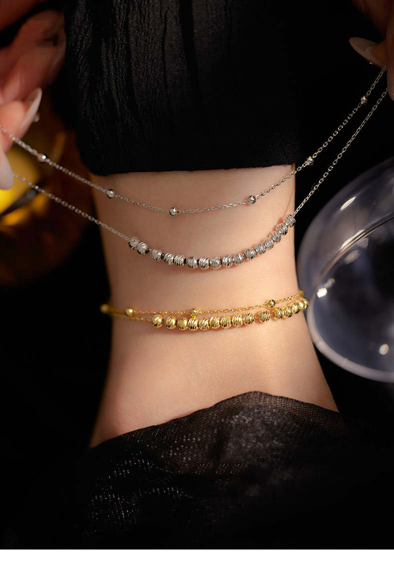 S925 Sterling Silver Stackable Double Layer Beaded Anklet