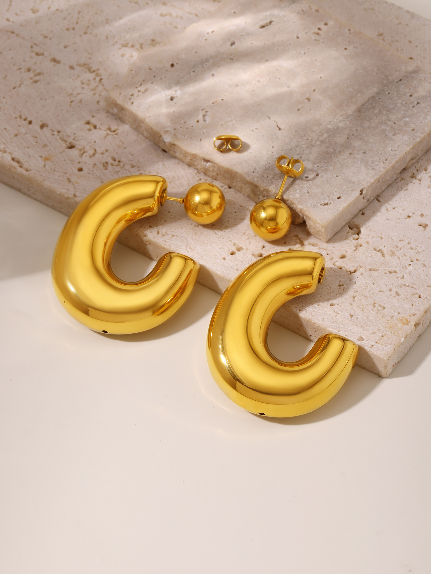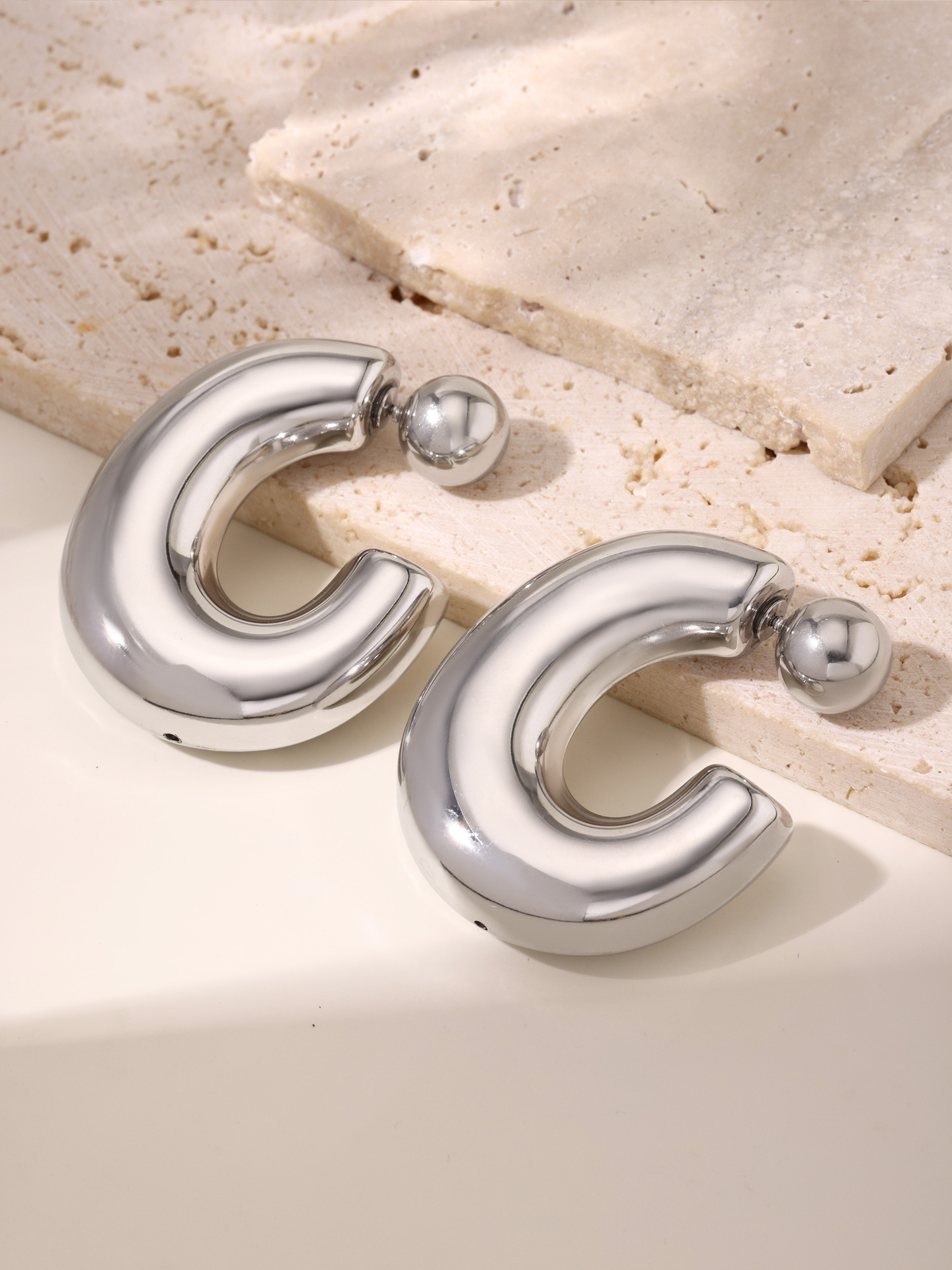 Stainless Steel C-Shaped Hollow Bead Convertible Earrings