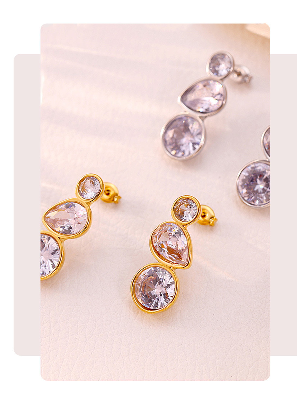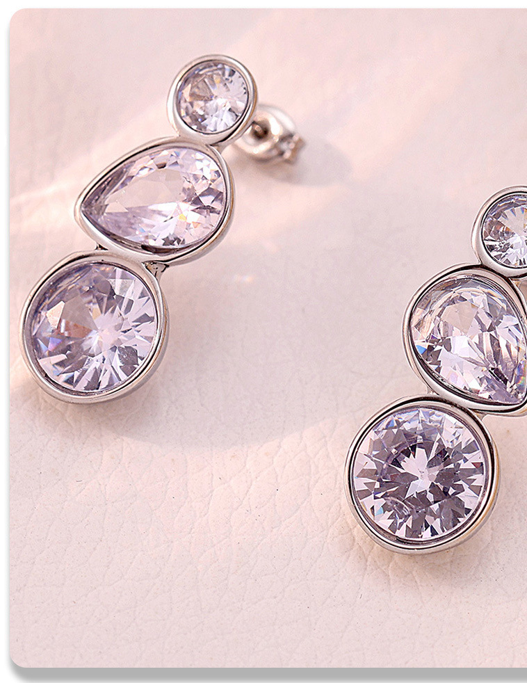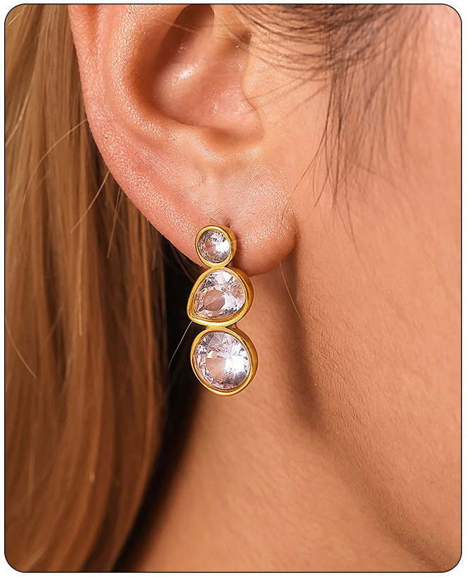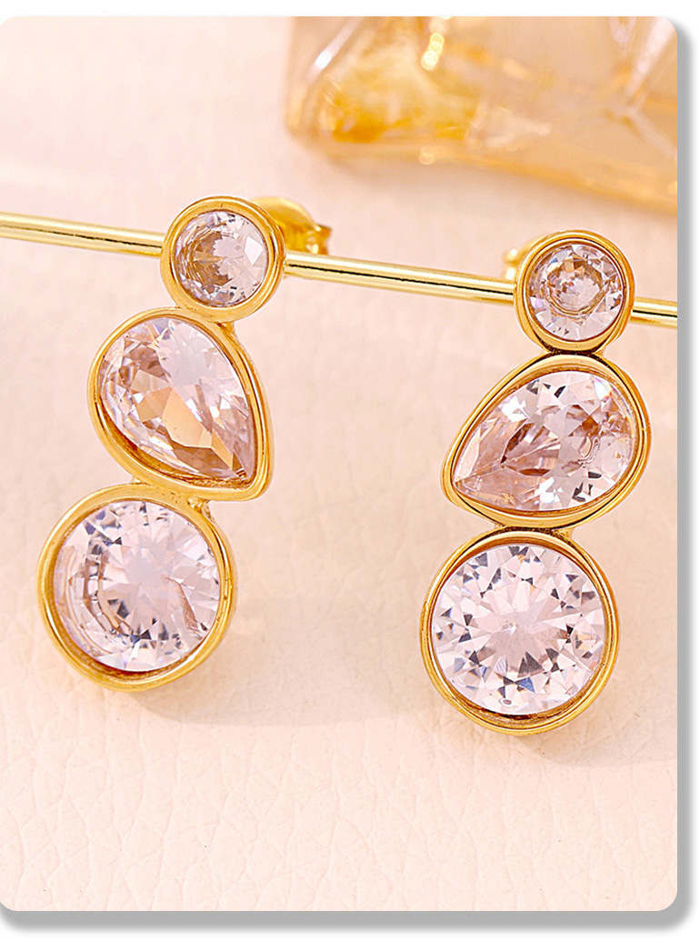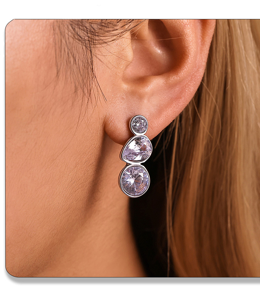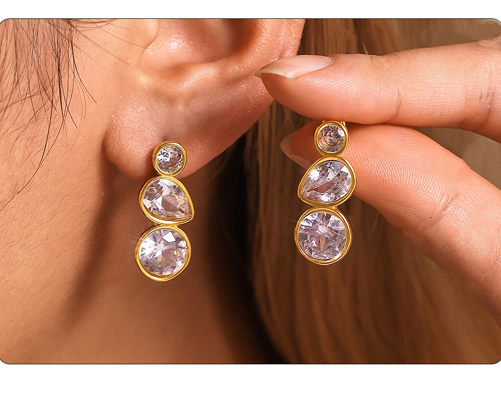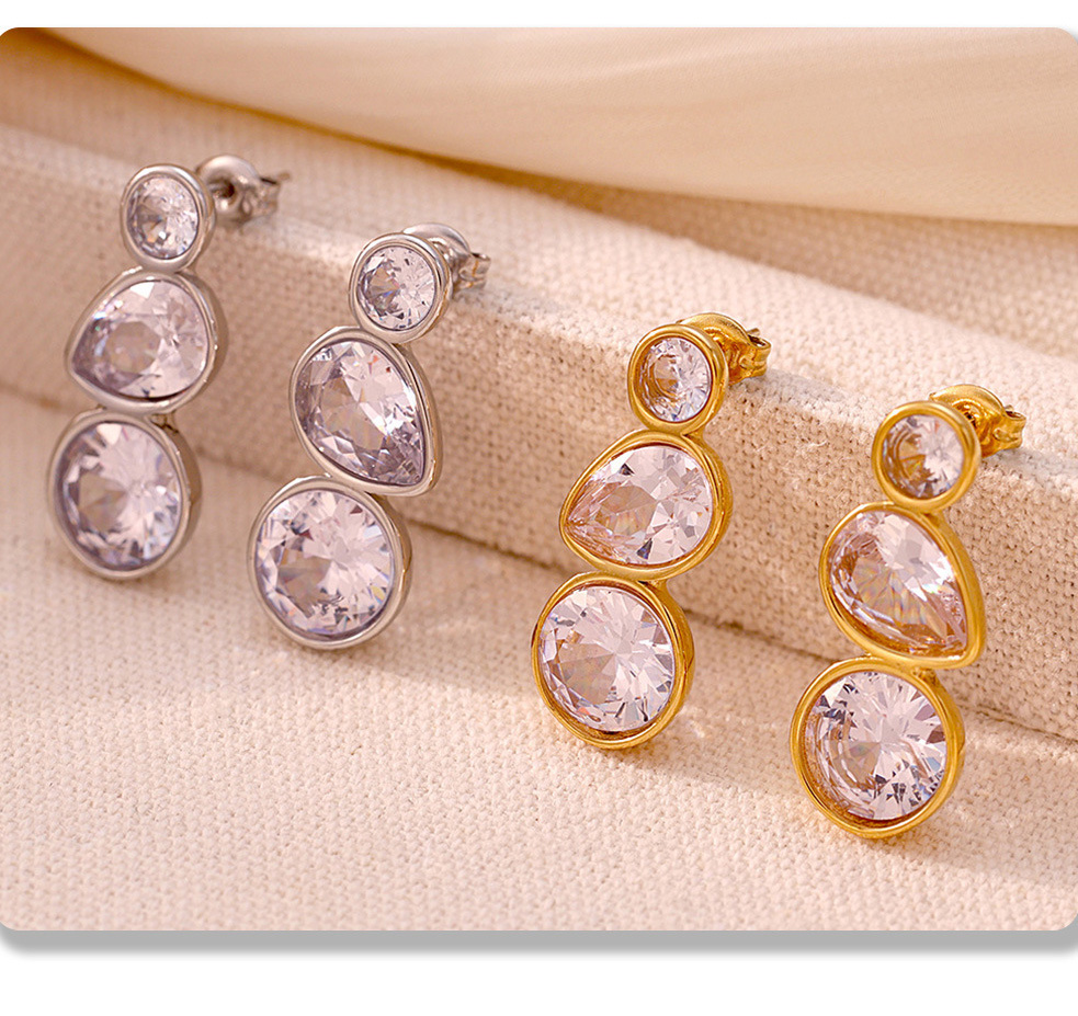 Stainless Steel Geometric Teardrop Zirconia Stud Earrings